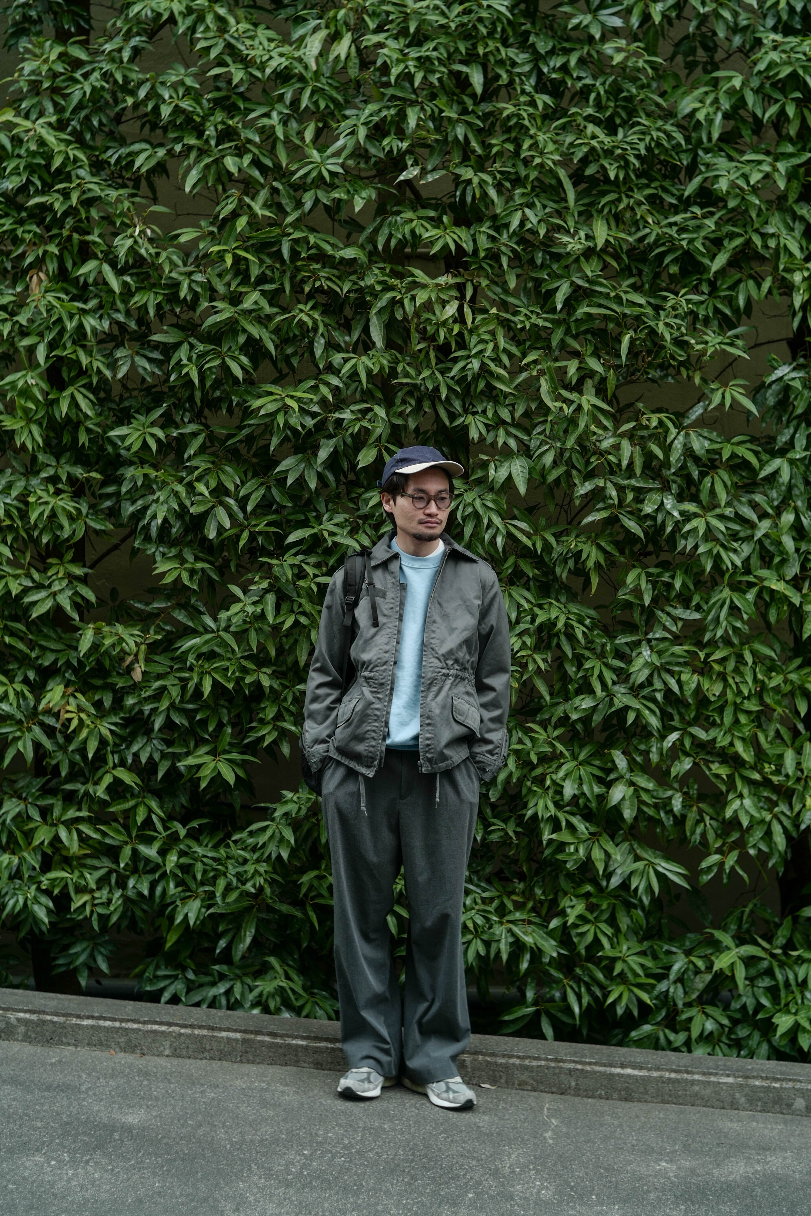 無骨な印象のあるフィールドジャケットですが、深みのあるグレーカラーのおかげかどこか洗練された印象。
