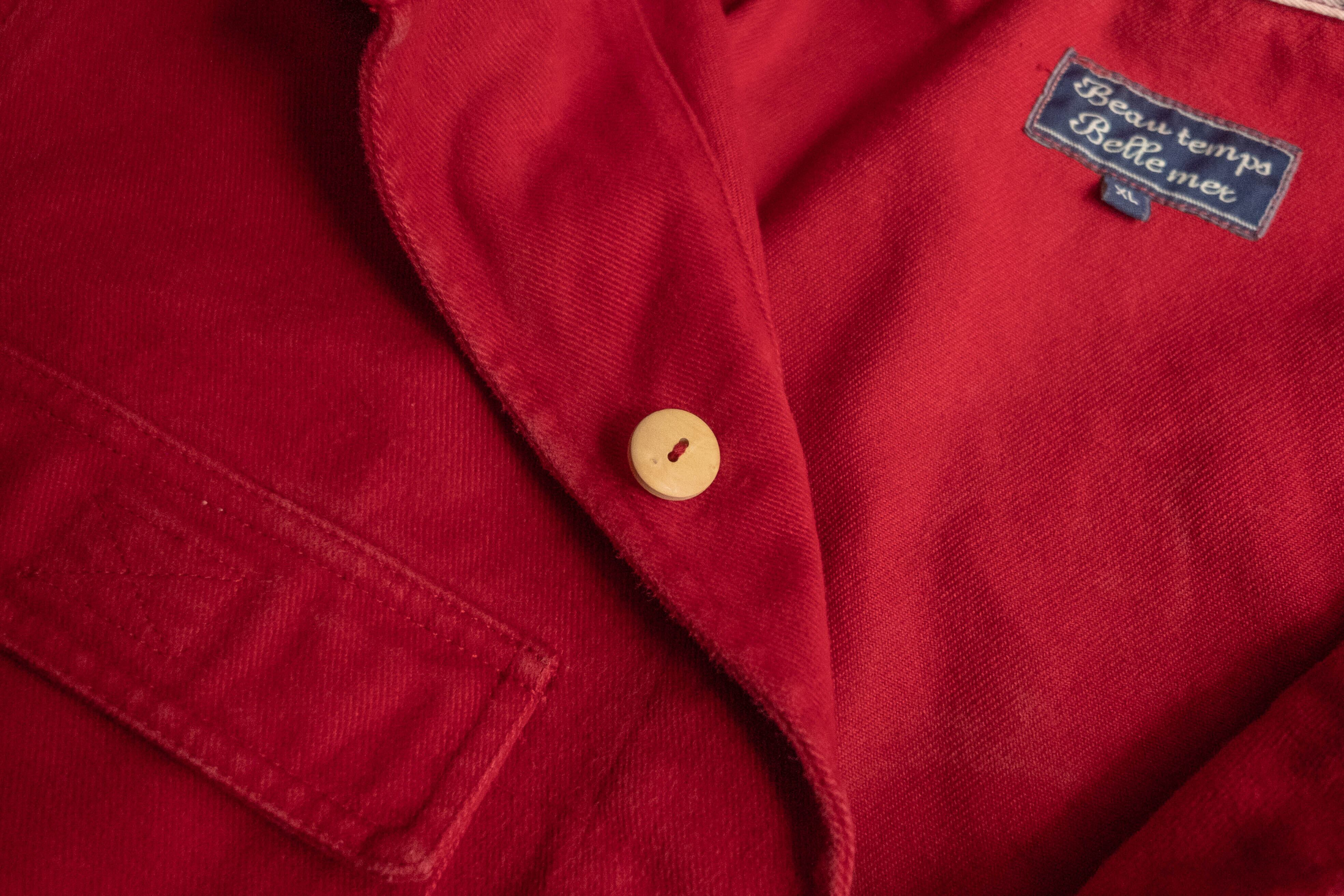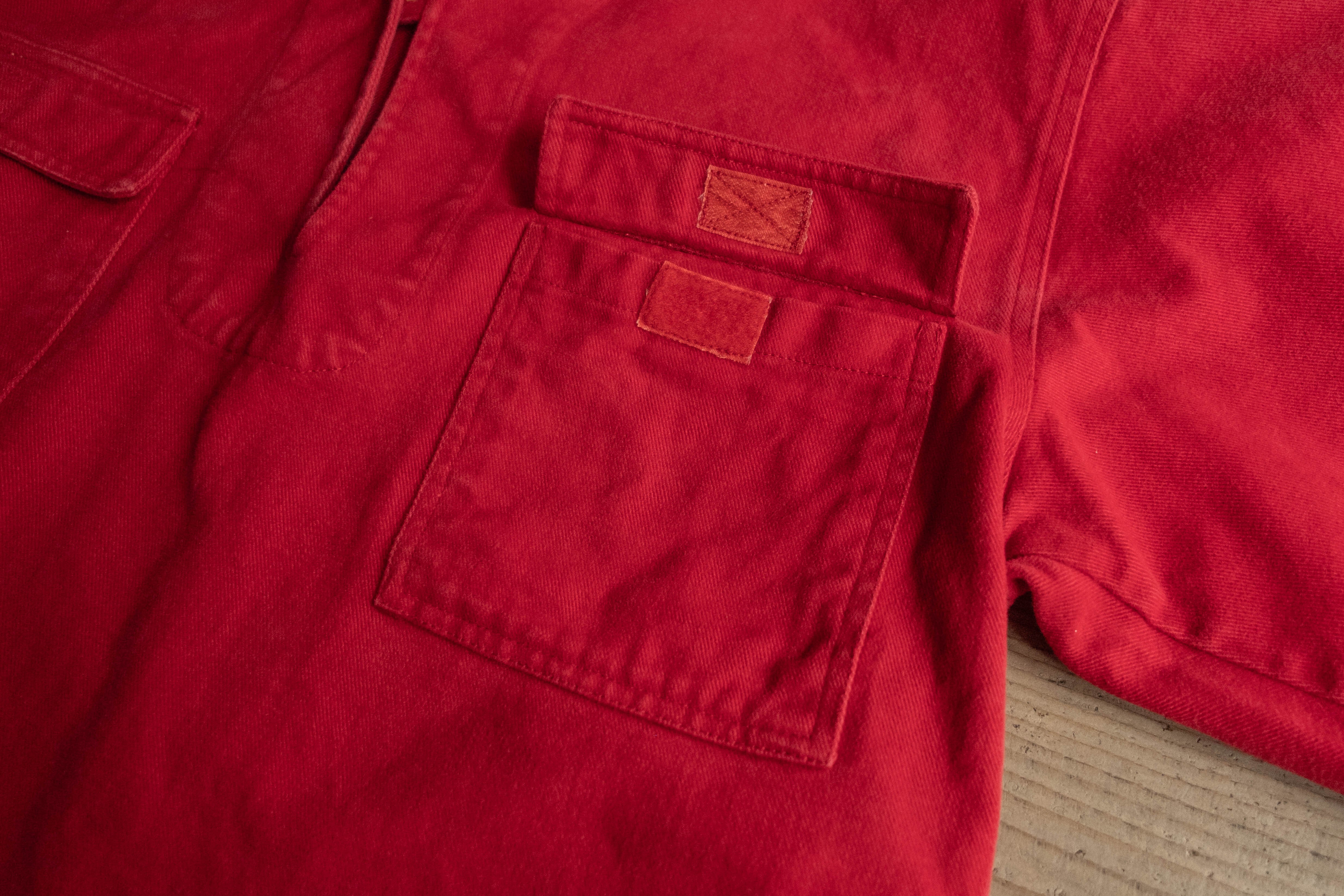 生地は珍しい起毛感のあるレッドのシャモアクロス。