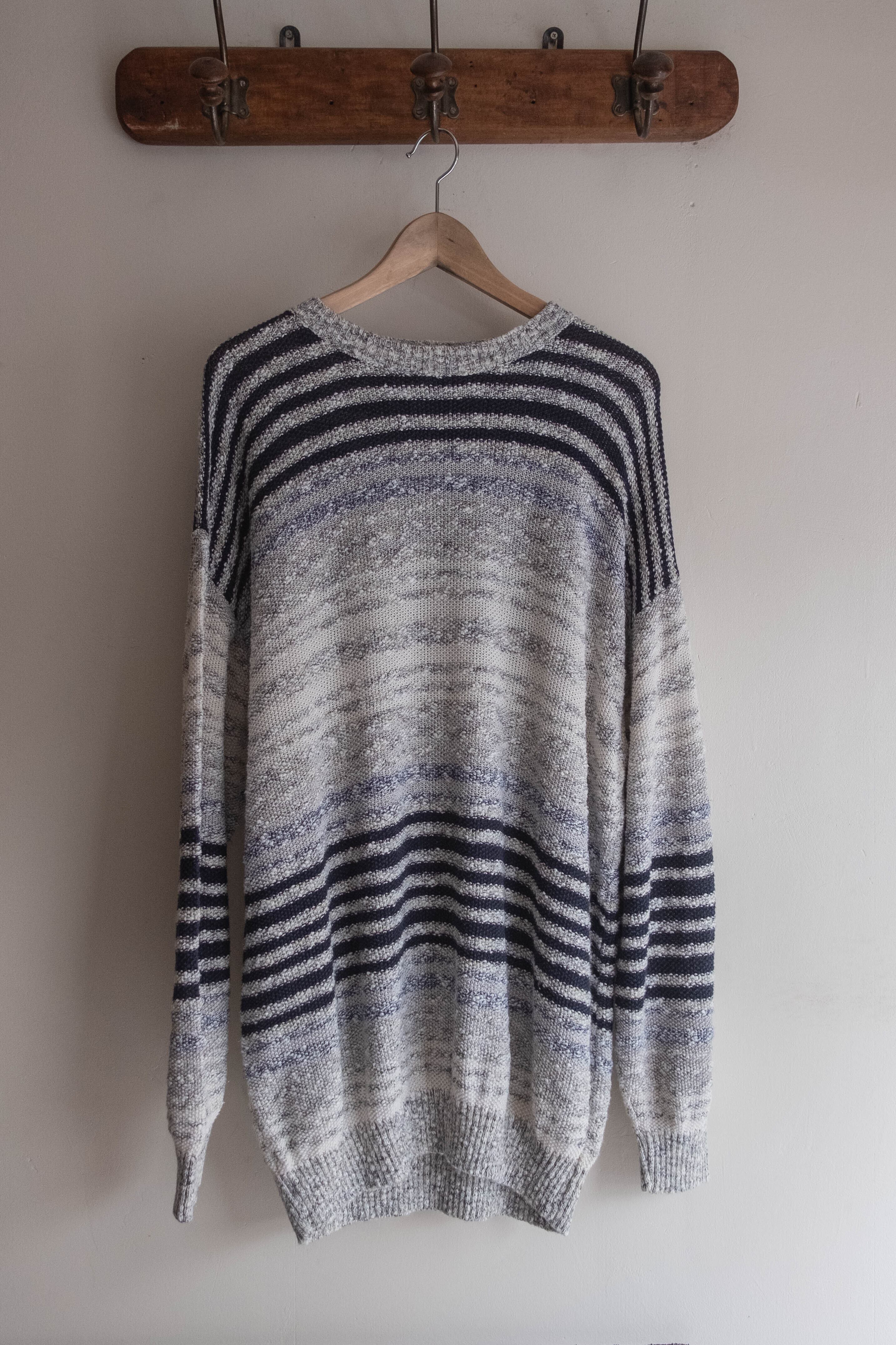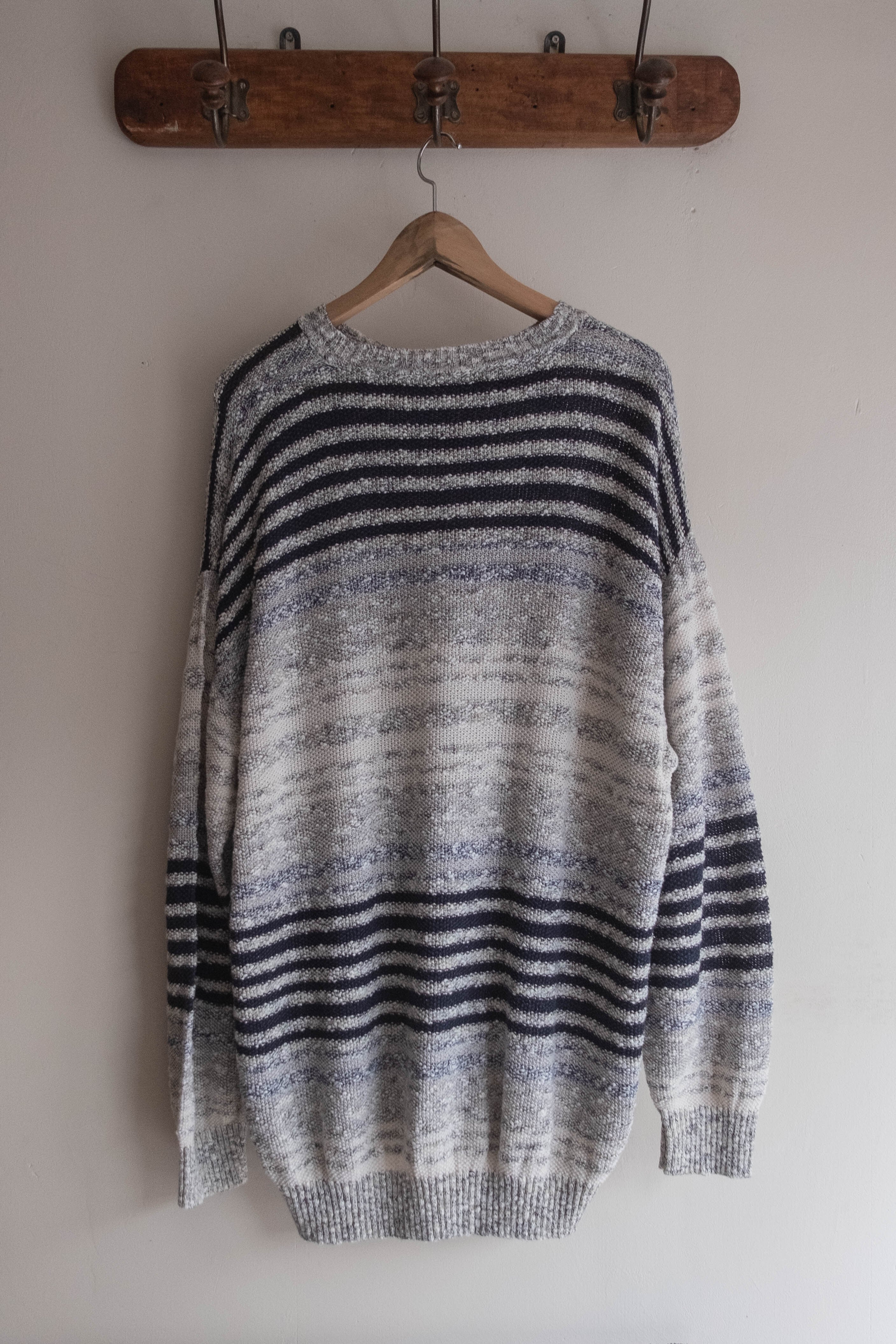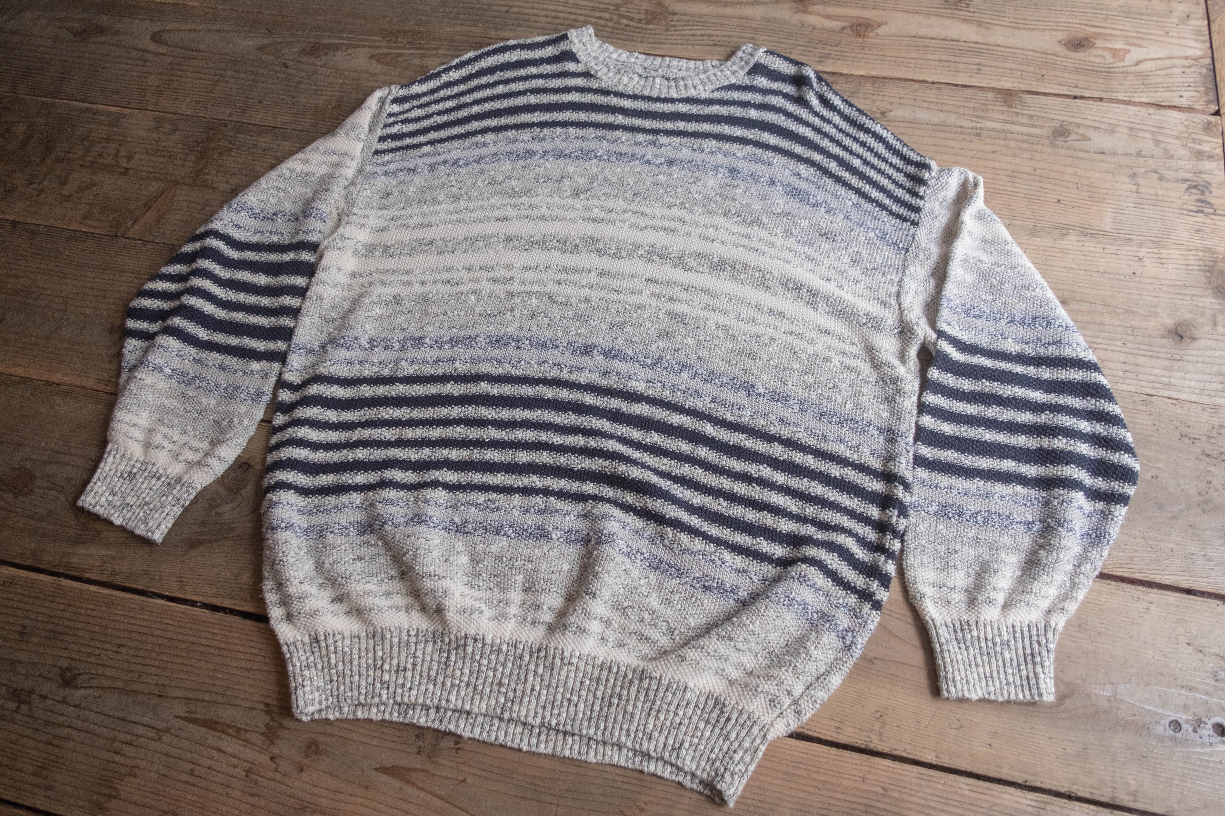 日本だと秋冬以外の季節ではあまり馴染みのないニットですが、ロンT一枚だとどこか格好が付かないなと思った時にコットンニットに変えるだけで一気にコーデに深みが増しますよ。