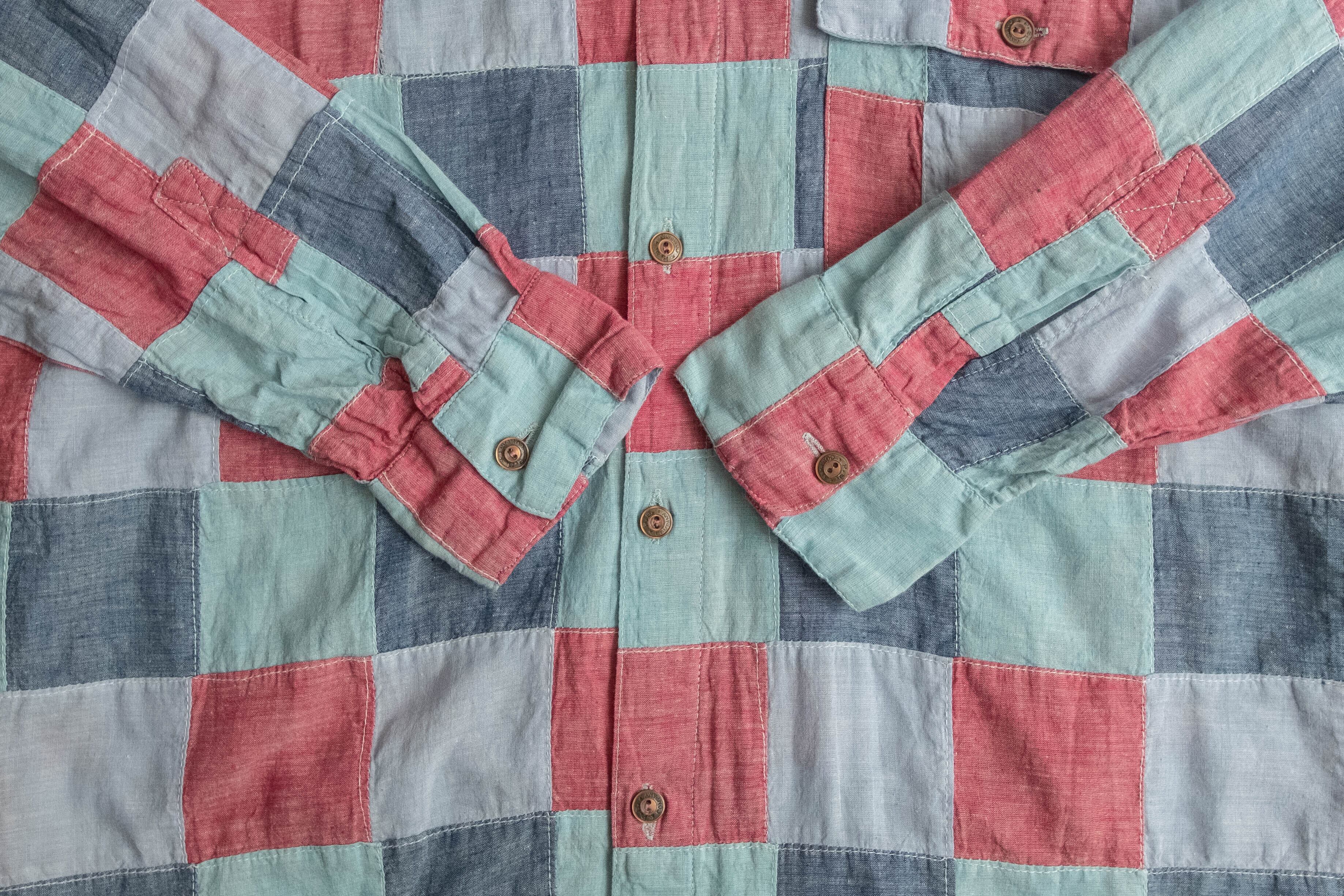 濃さが違うブルー3色にレッドが入ったクレイジーパターン。色の数がそこまで多くないので合わせやすい個体だと思います。
