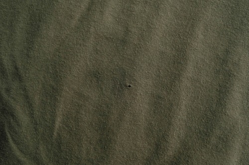 フロント下部、右袖、右袖脇下に小穴がございます。