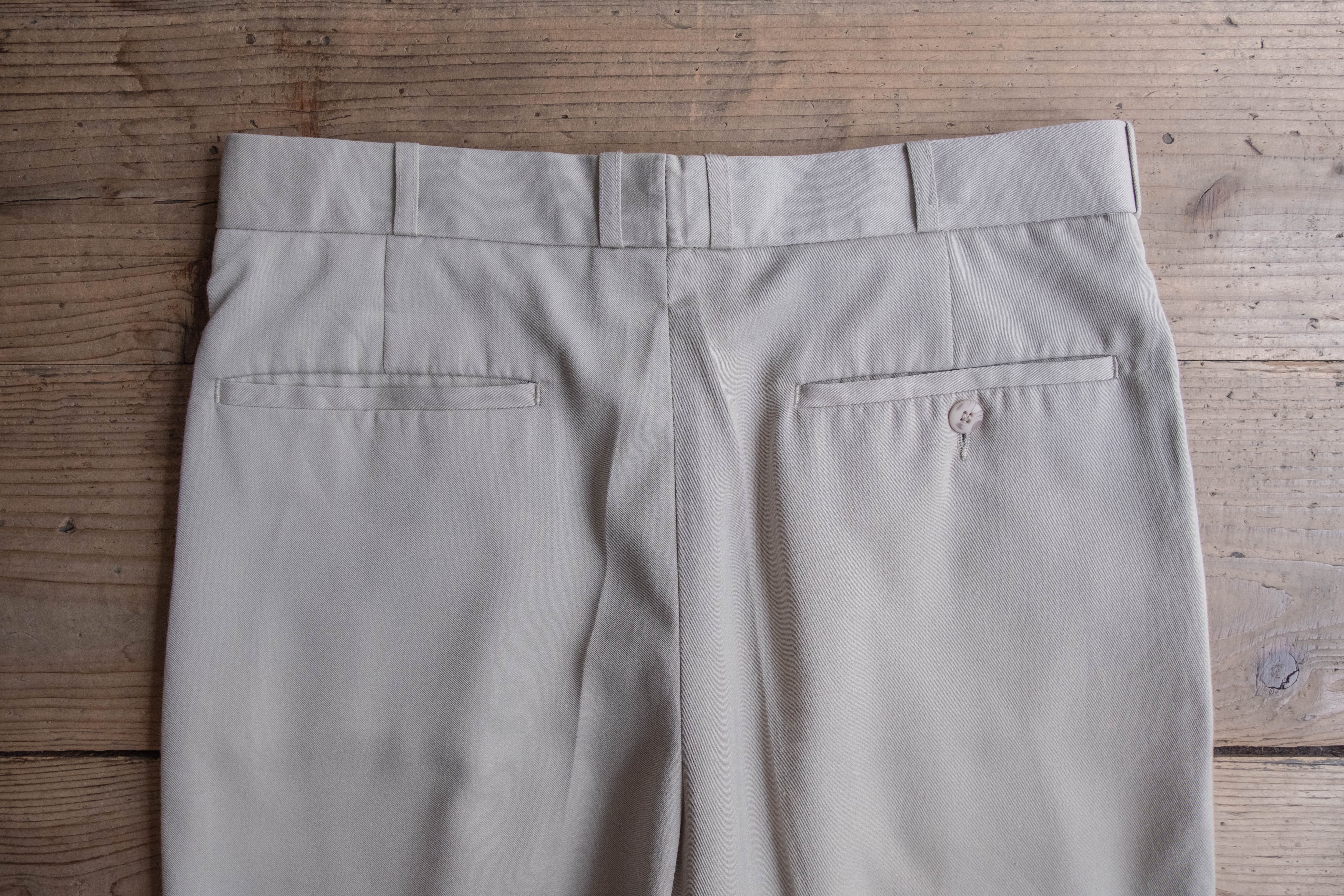 テーパードが効きすぎているわけでもなく、ワタリがボワっと膨らみすぎているわけでもなく、ウエストも大きすぎず、ディテール、カラーがシンプルかつ抑えるところは抑えられている一番使いやすいタイプのスラックスですね。