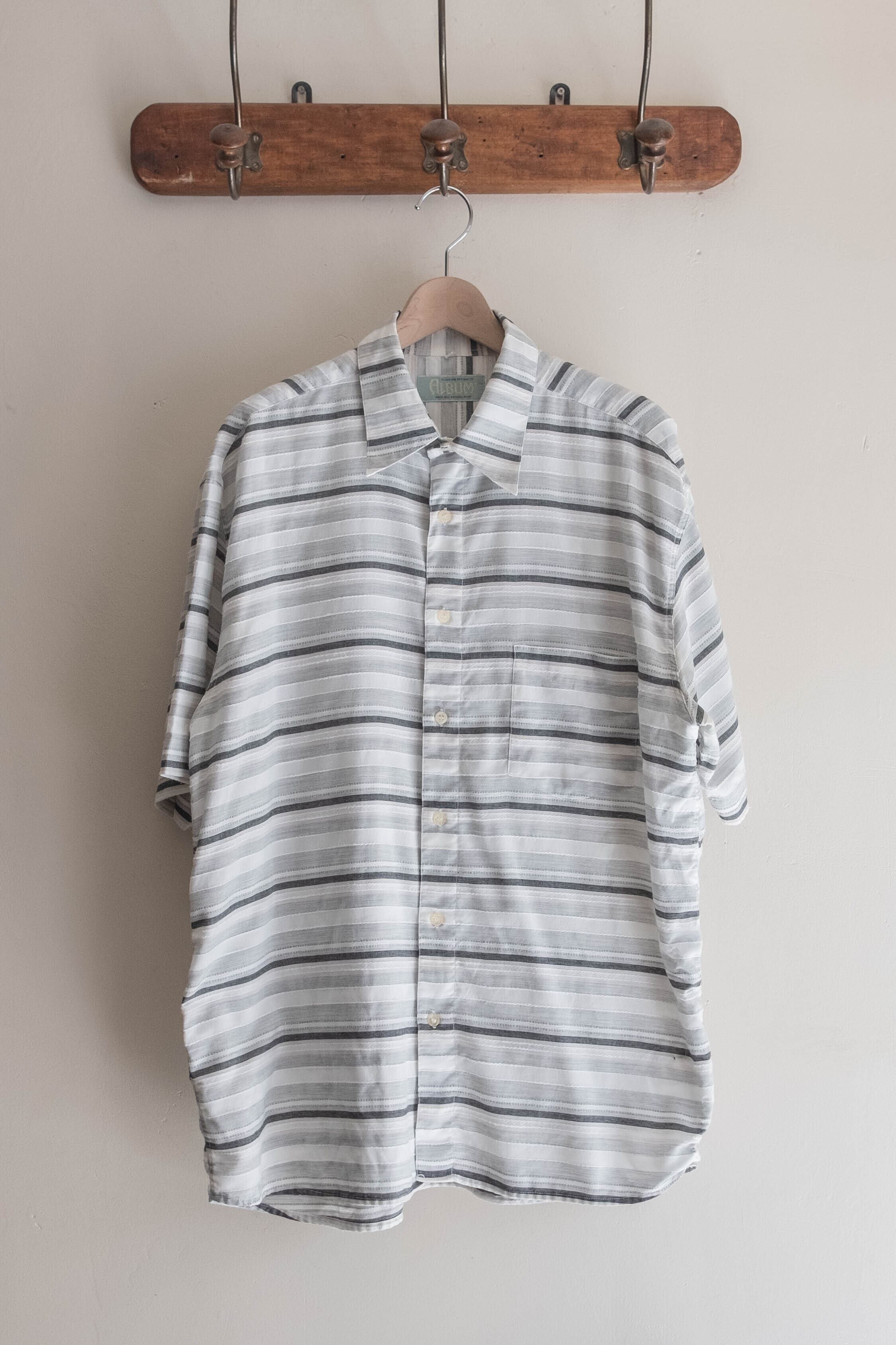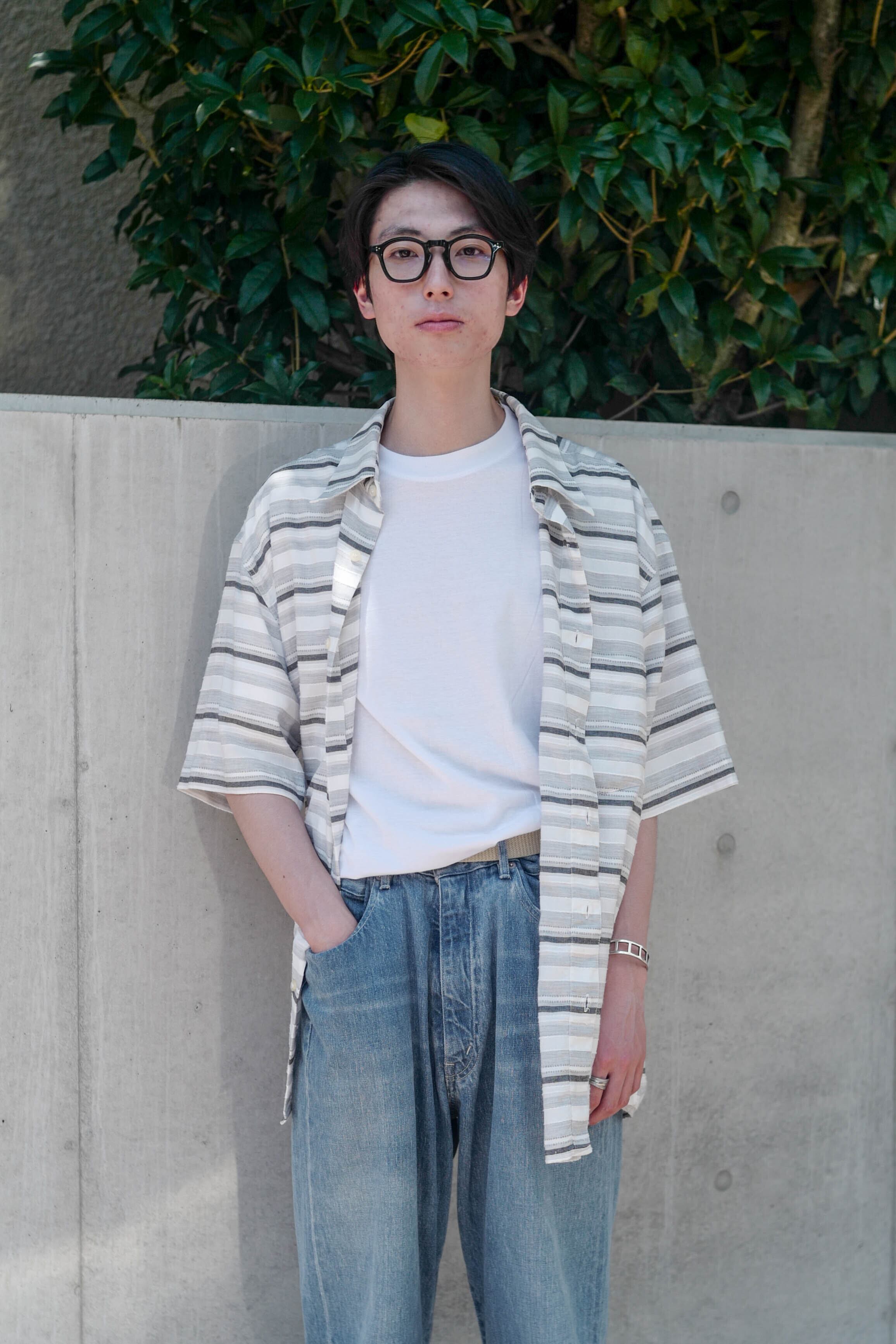 シンプルな柄とカラーで着やすいシャツです。