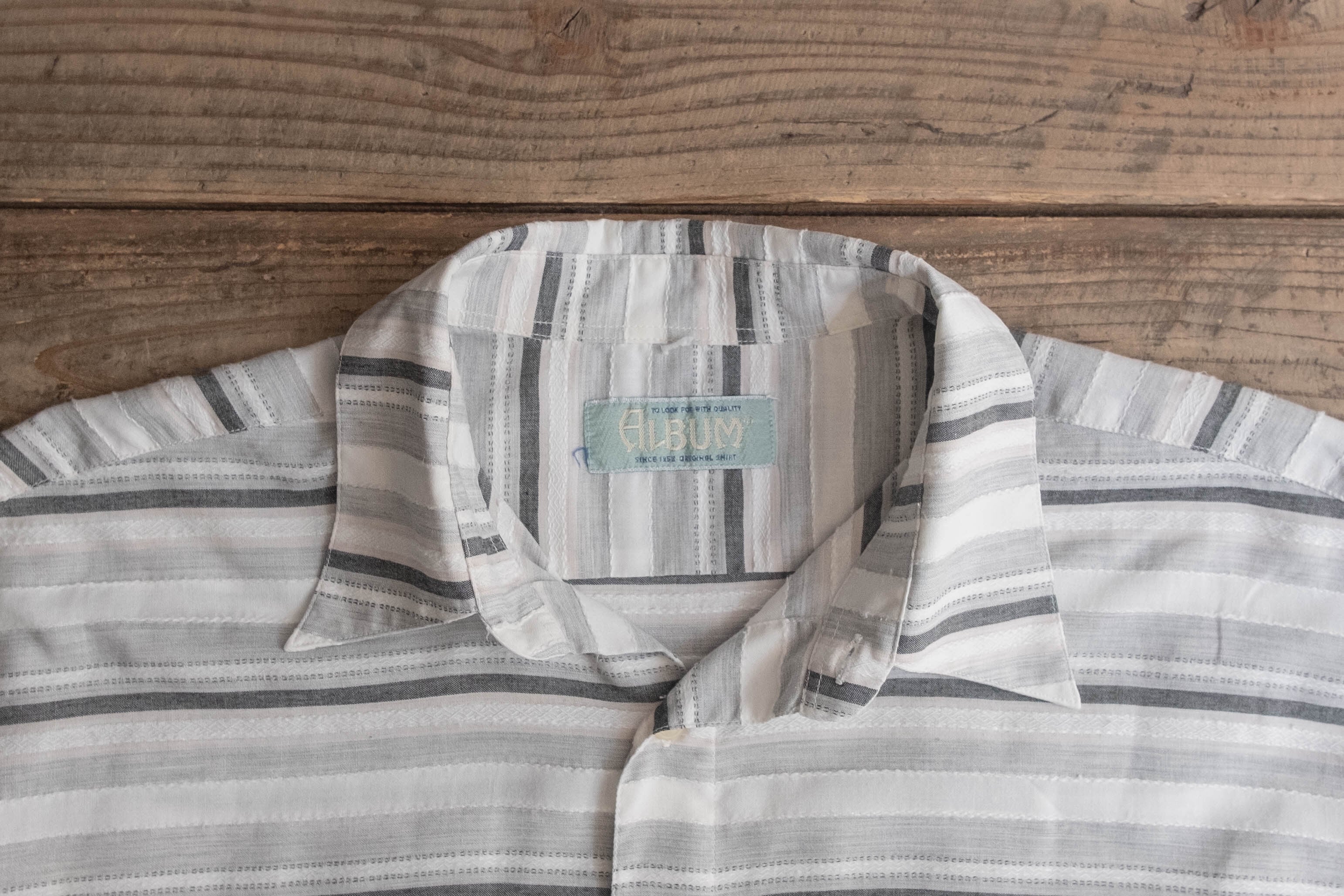 ホワイトベースにグレーと薄いブラックのボーダー柄が入ります。