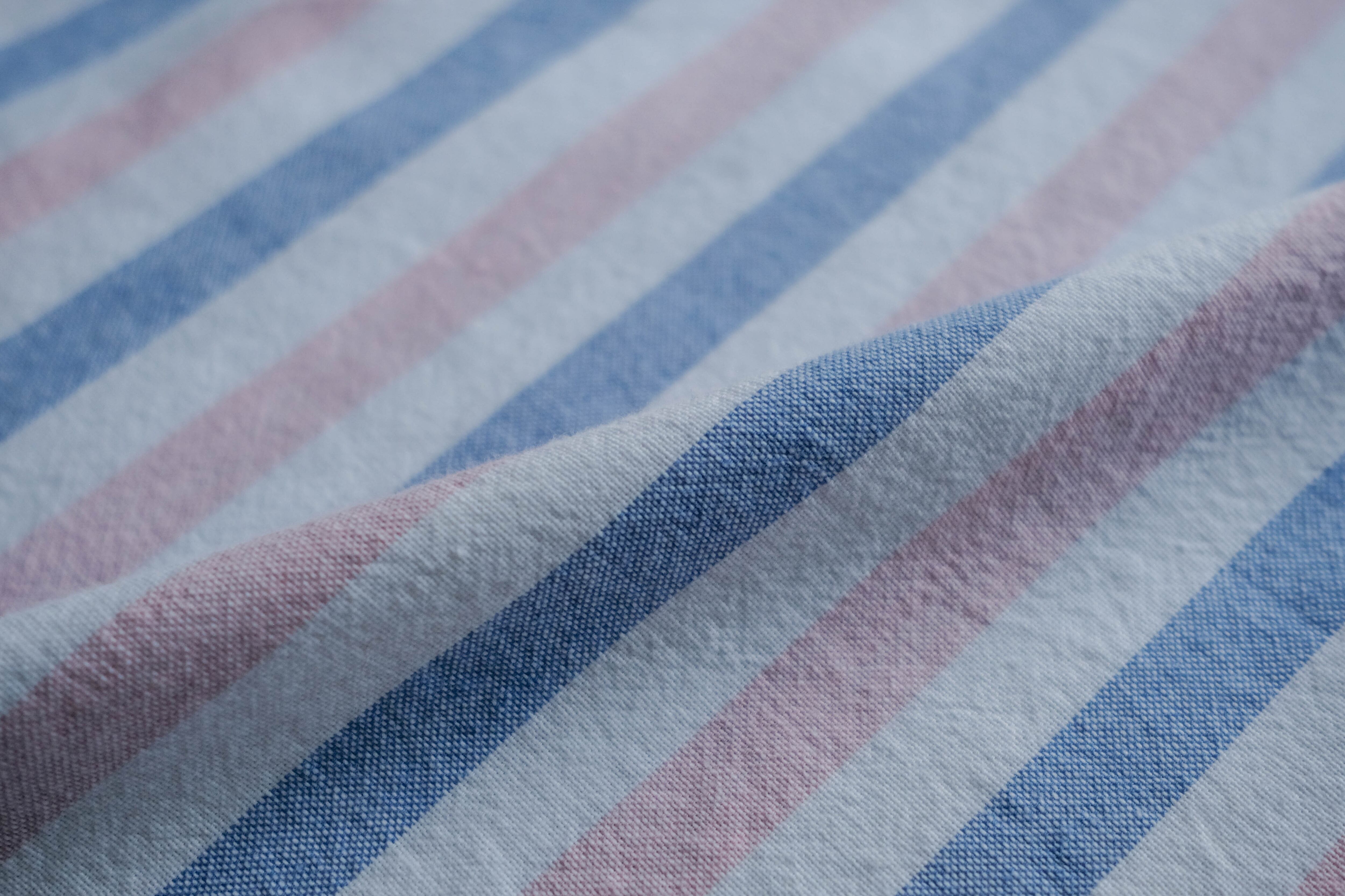 淡いピンクとホワイト、ブルーのストライプ柄が目を惹きます。