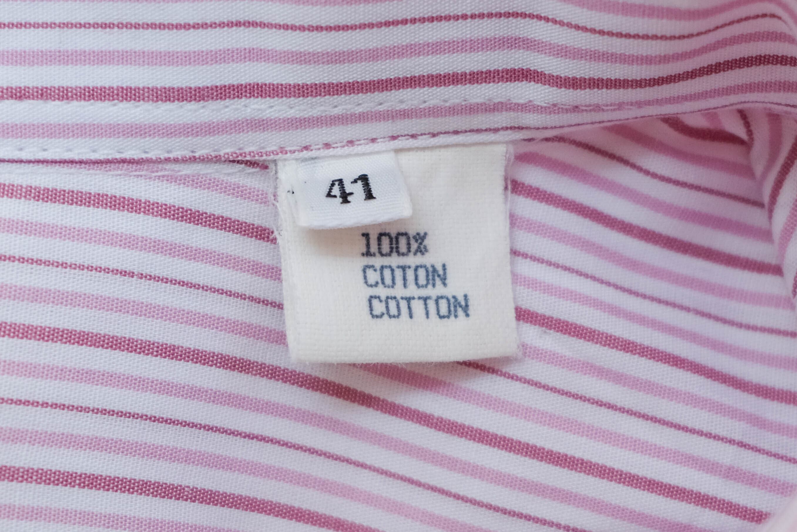 こちらはコットン100%の生地で、赤とピンクのストライプが入る個体です。