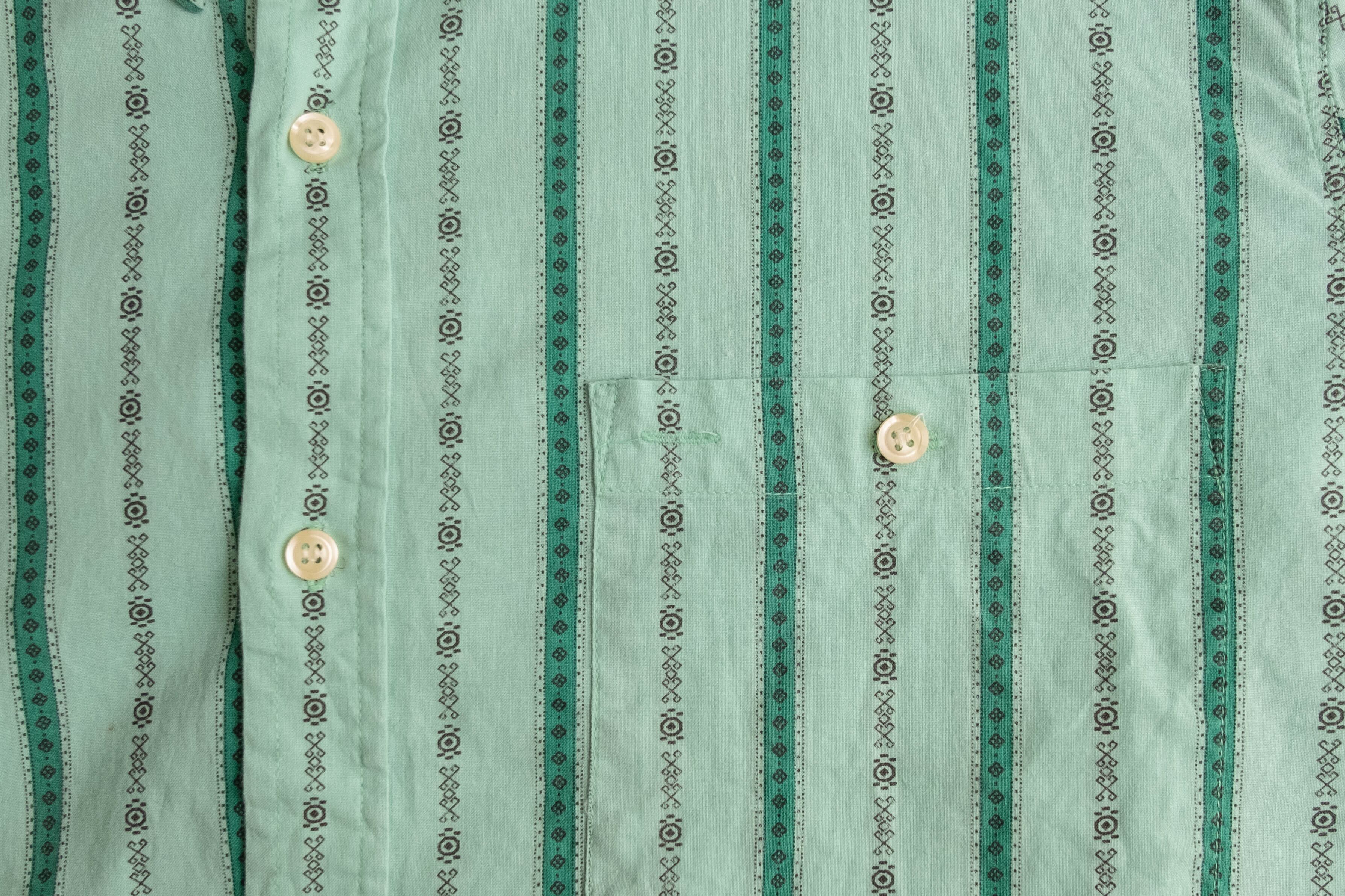 ペールグリーンにグリーンとブラックで模様のストライプ柄が入ります。