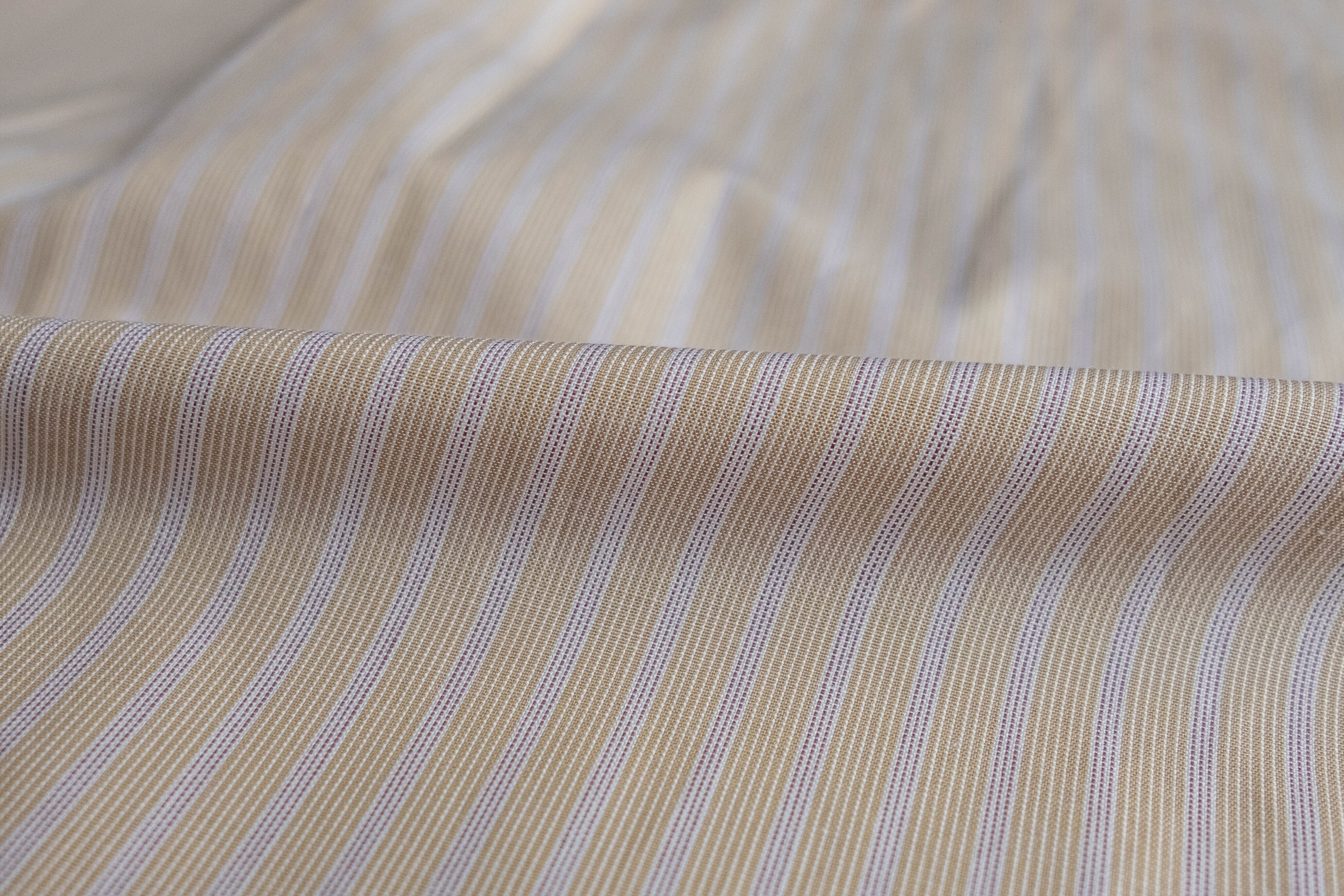 ベージュベースに薄いピンクのストライプが入ります。