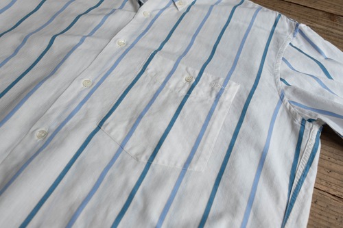 濃いめのブルーと薄めのブルーのストライプが入り、よく見ると織柄でストライプも入っています。
