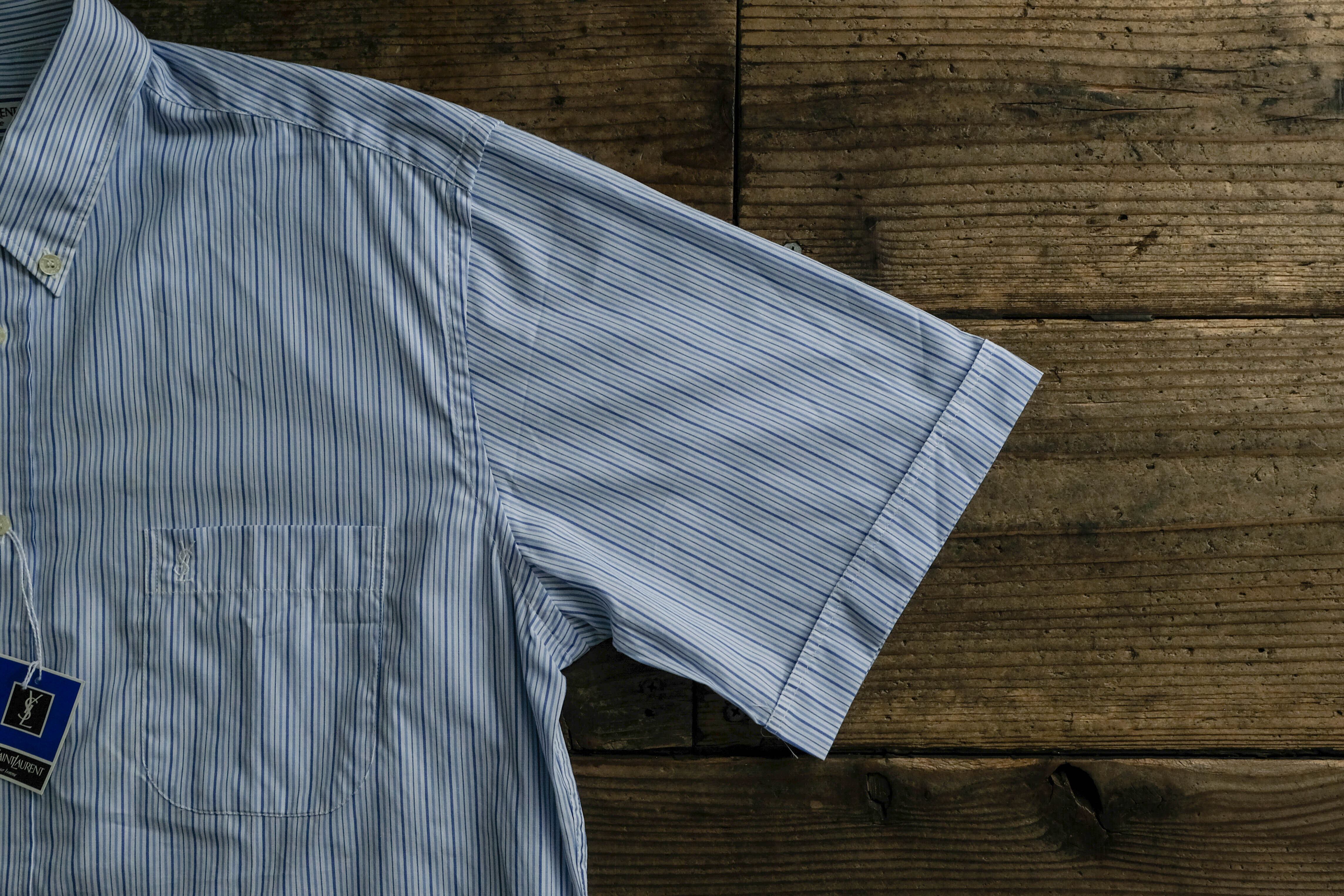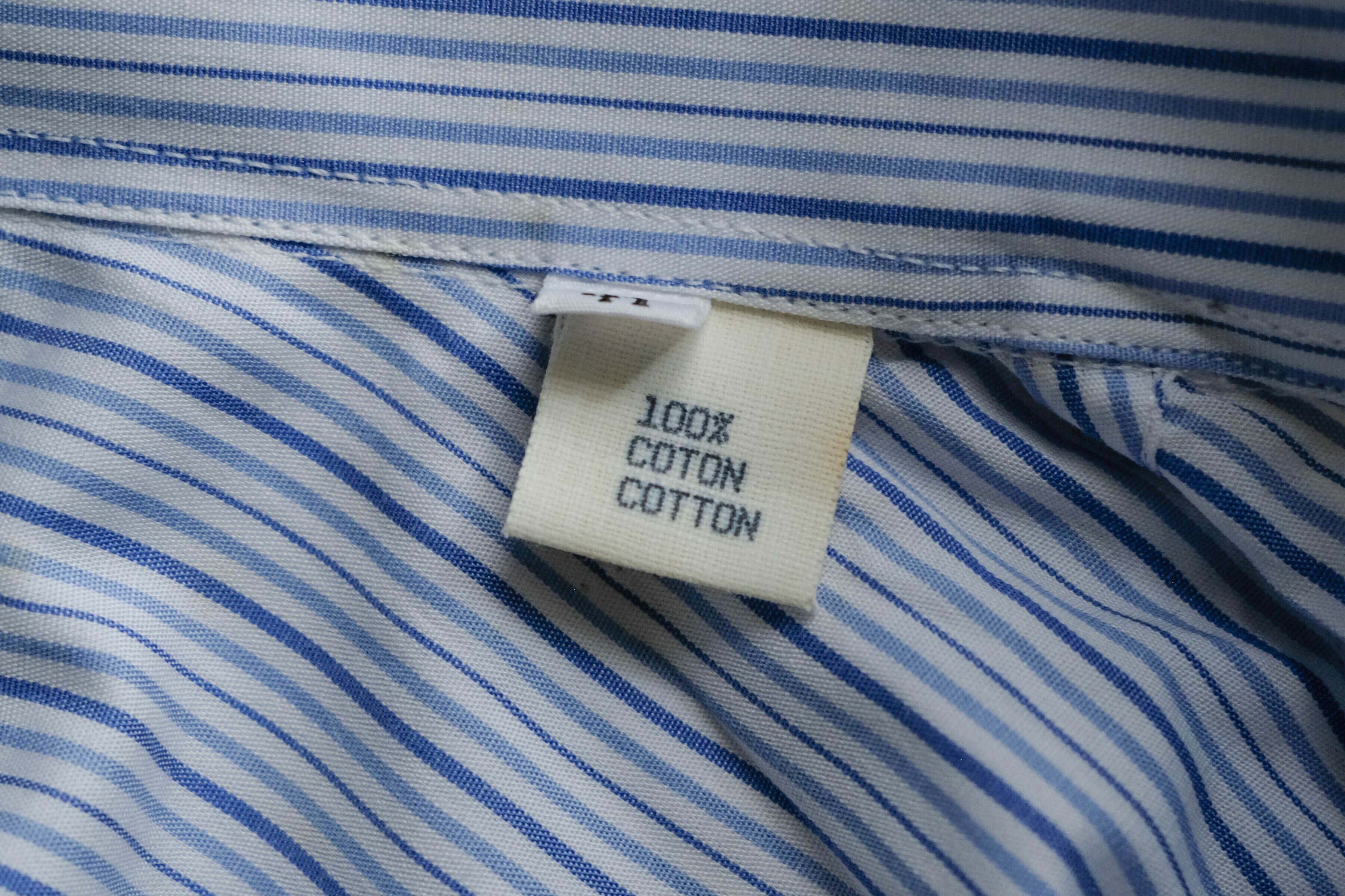 こちらはコットン100%の生地で、ブルーのストライプが爽やかな個体です。