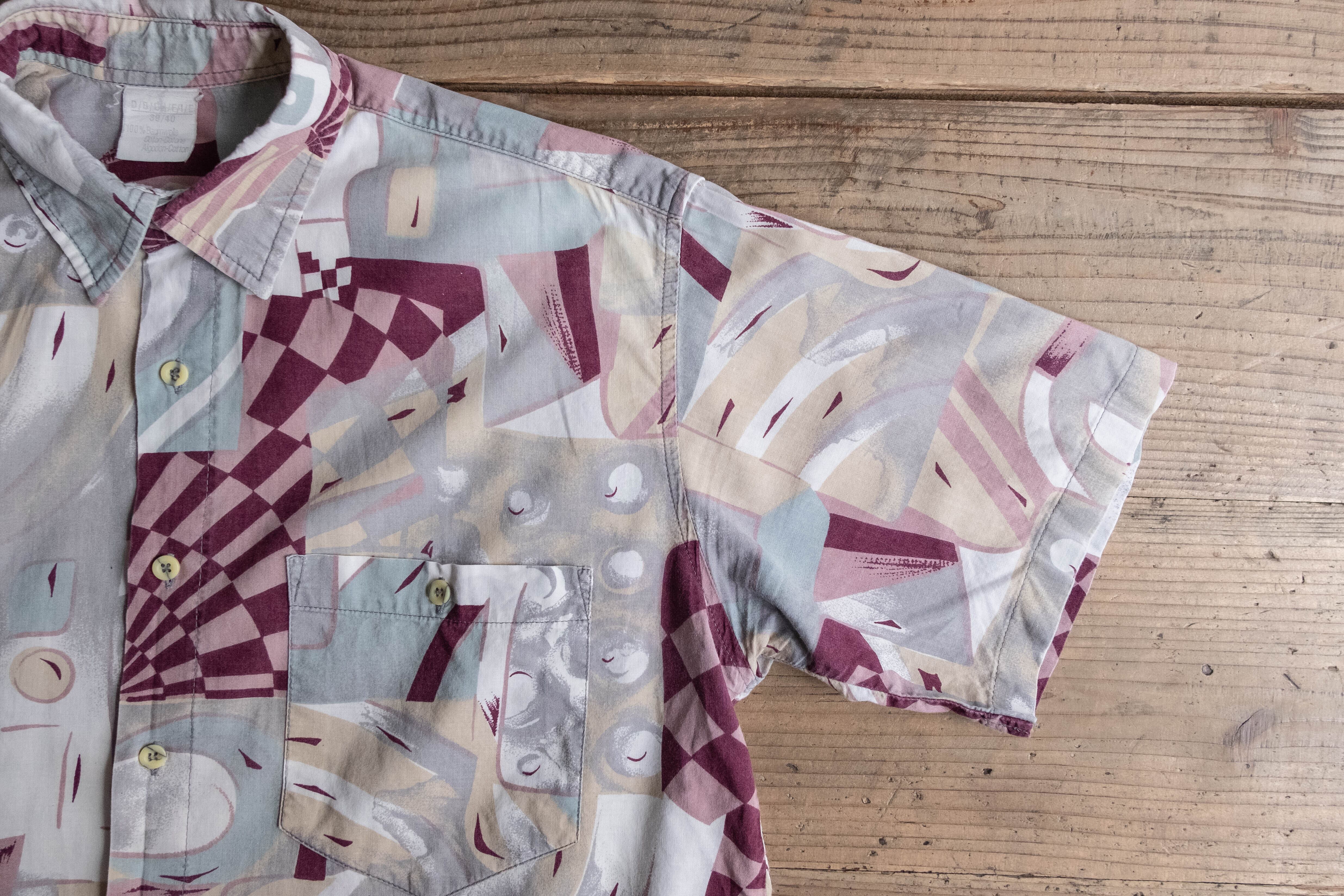 パープル、グレー、ホワイトなどの抽象的な柄が入ります。