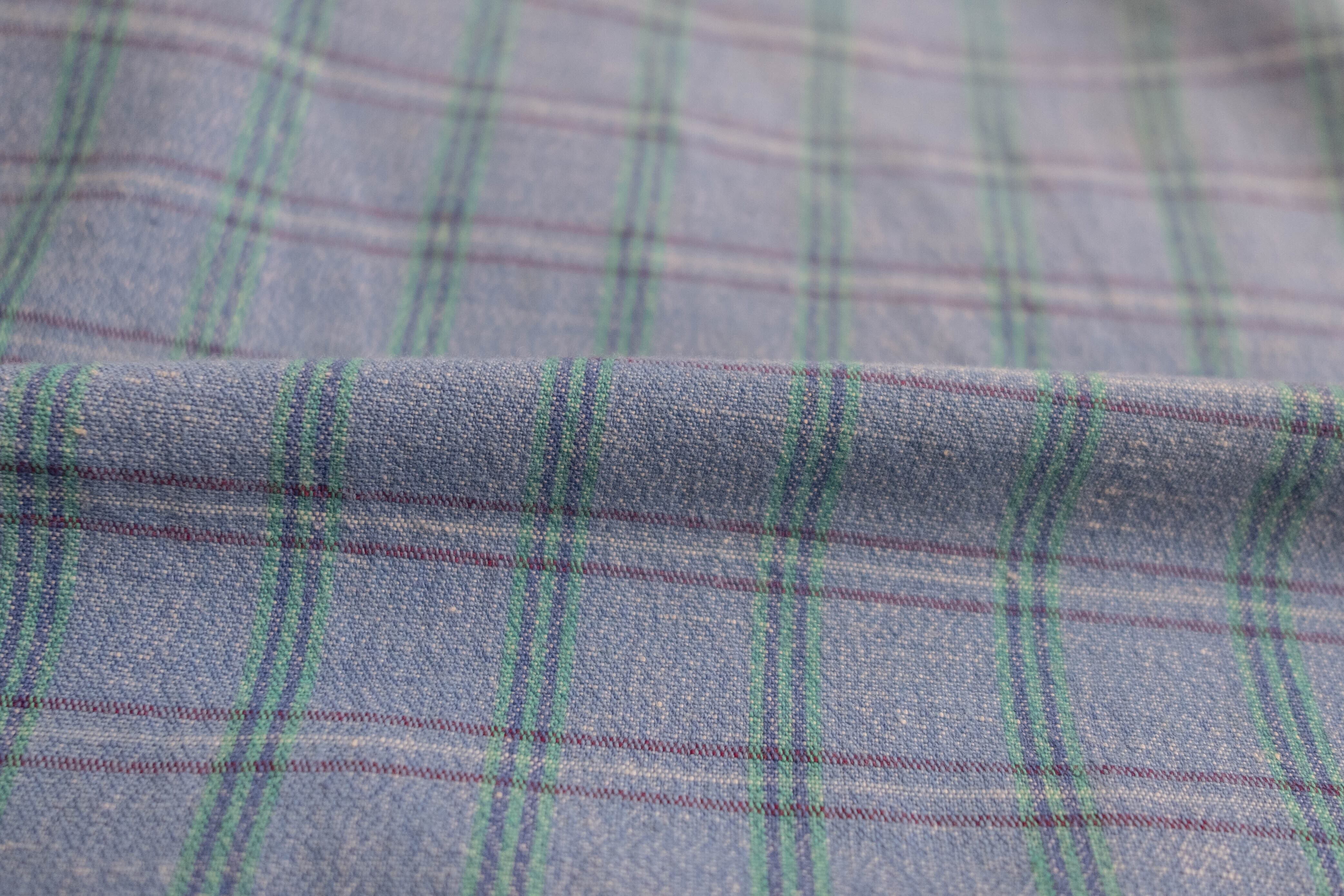 ブルーカラーにグリーンのラインで格子状に柄が入っています。