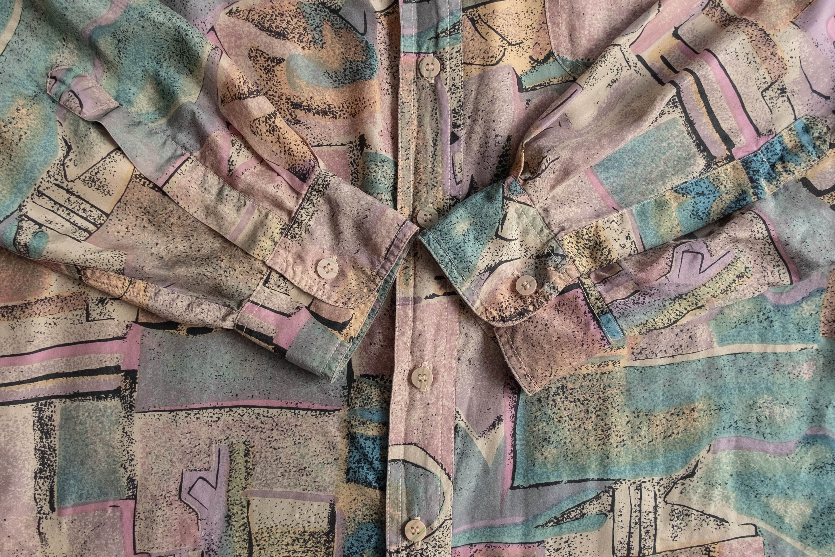 パステルカラーのトーンで構成されており抽象的な柄が入ります。