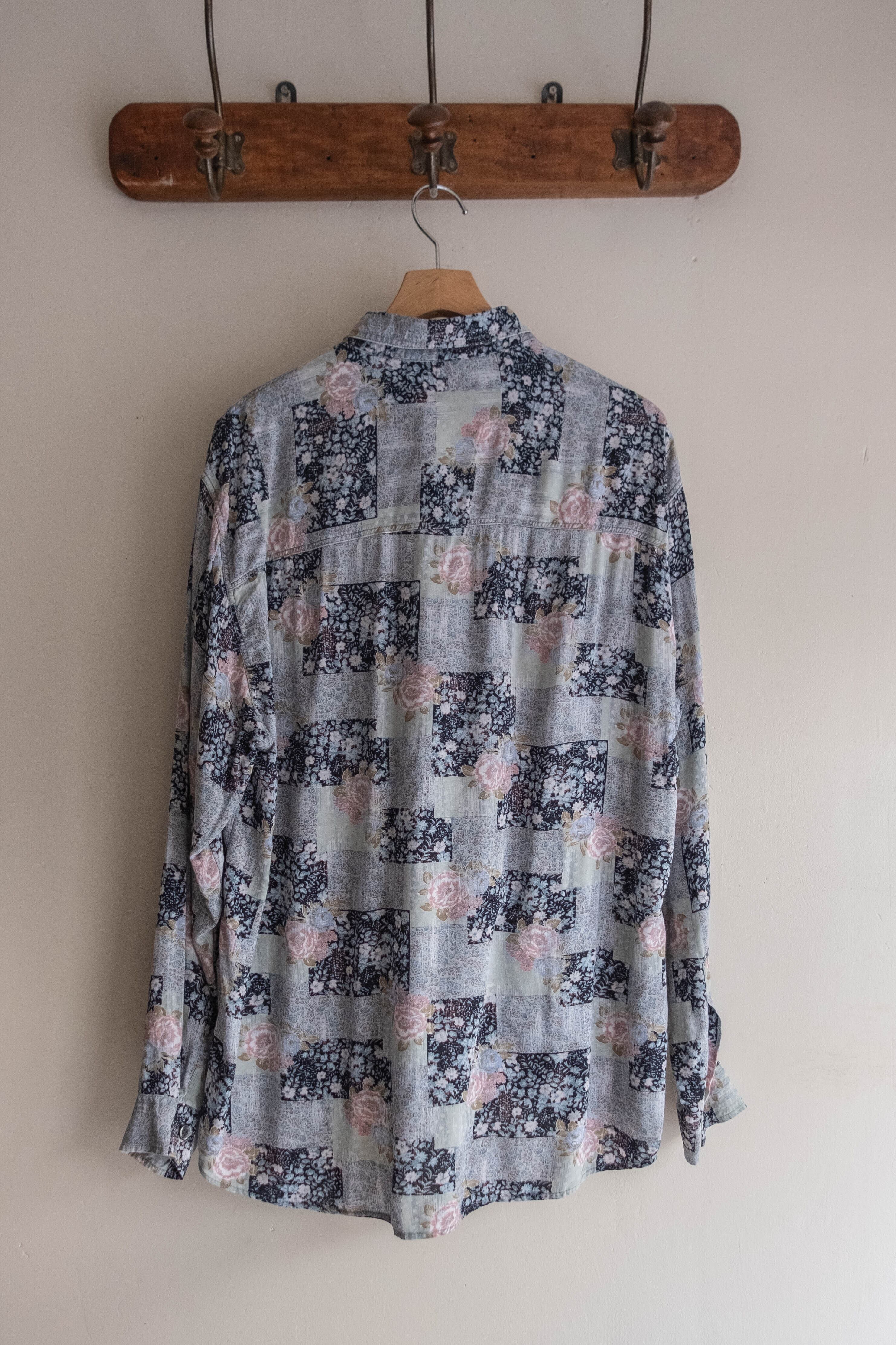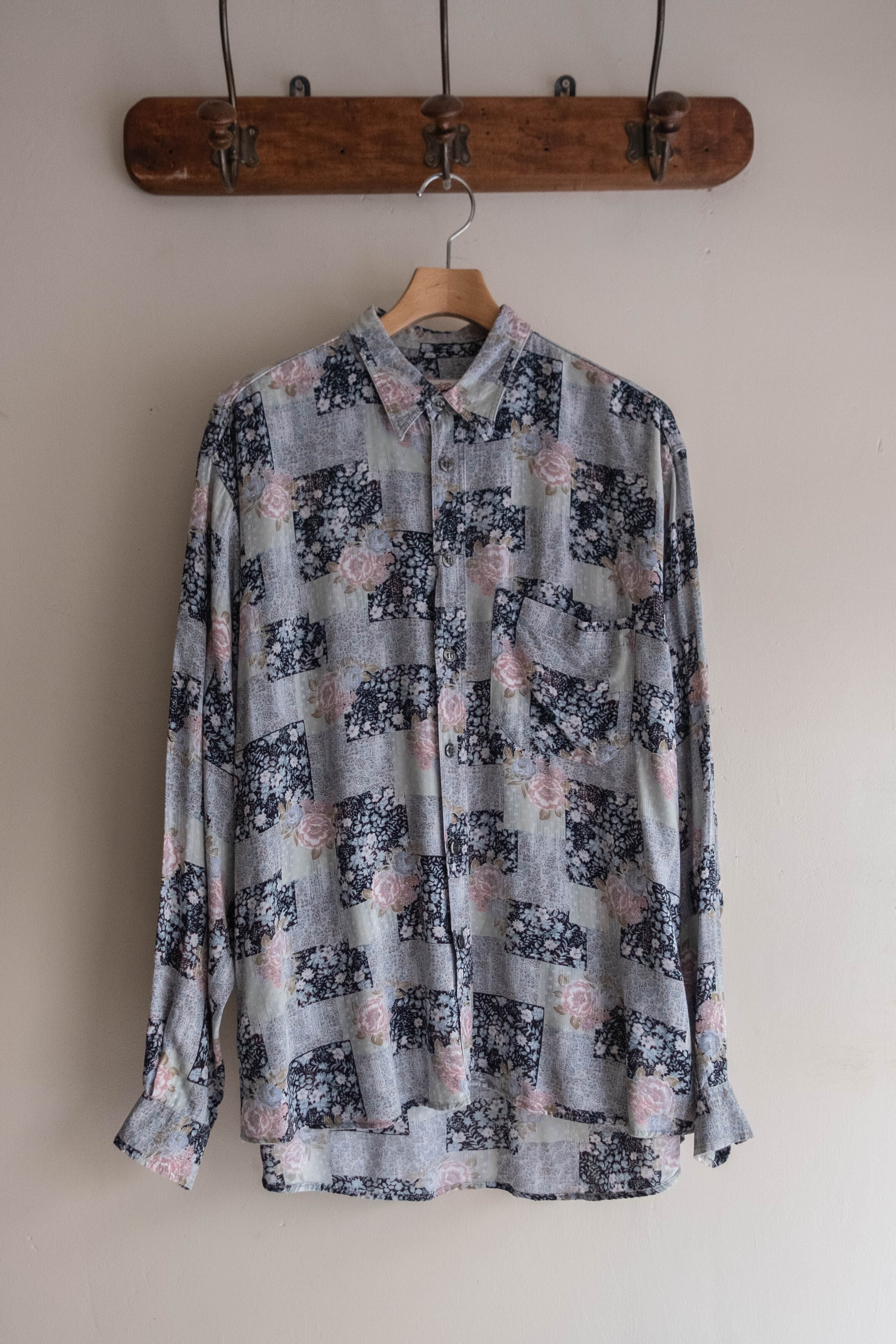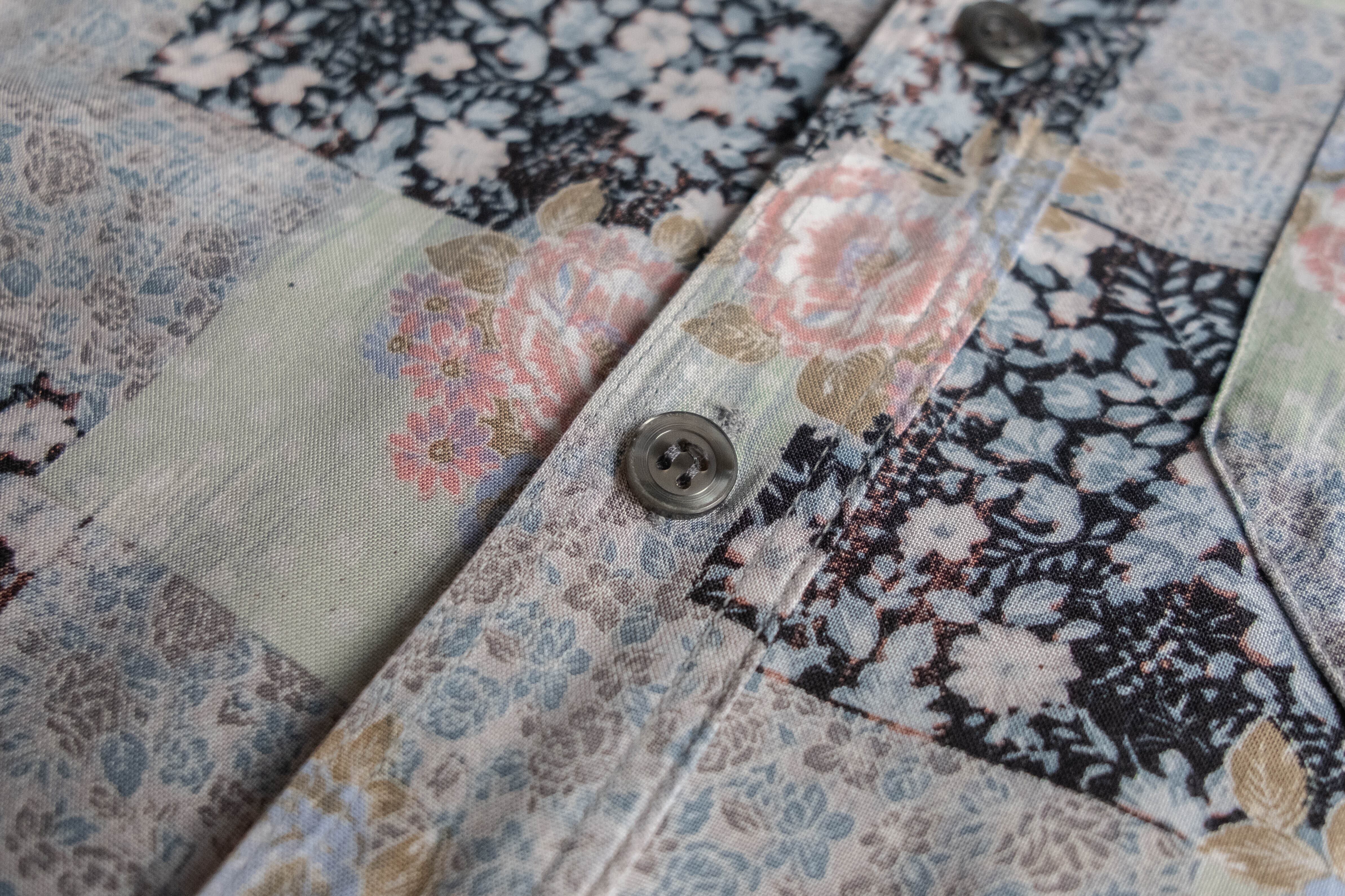 ブラック、ピンク、グリーン、ブルーなどの色の花柄が入ります。