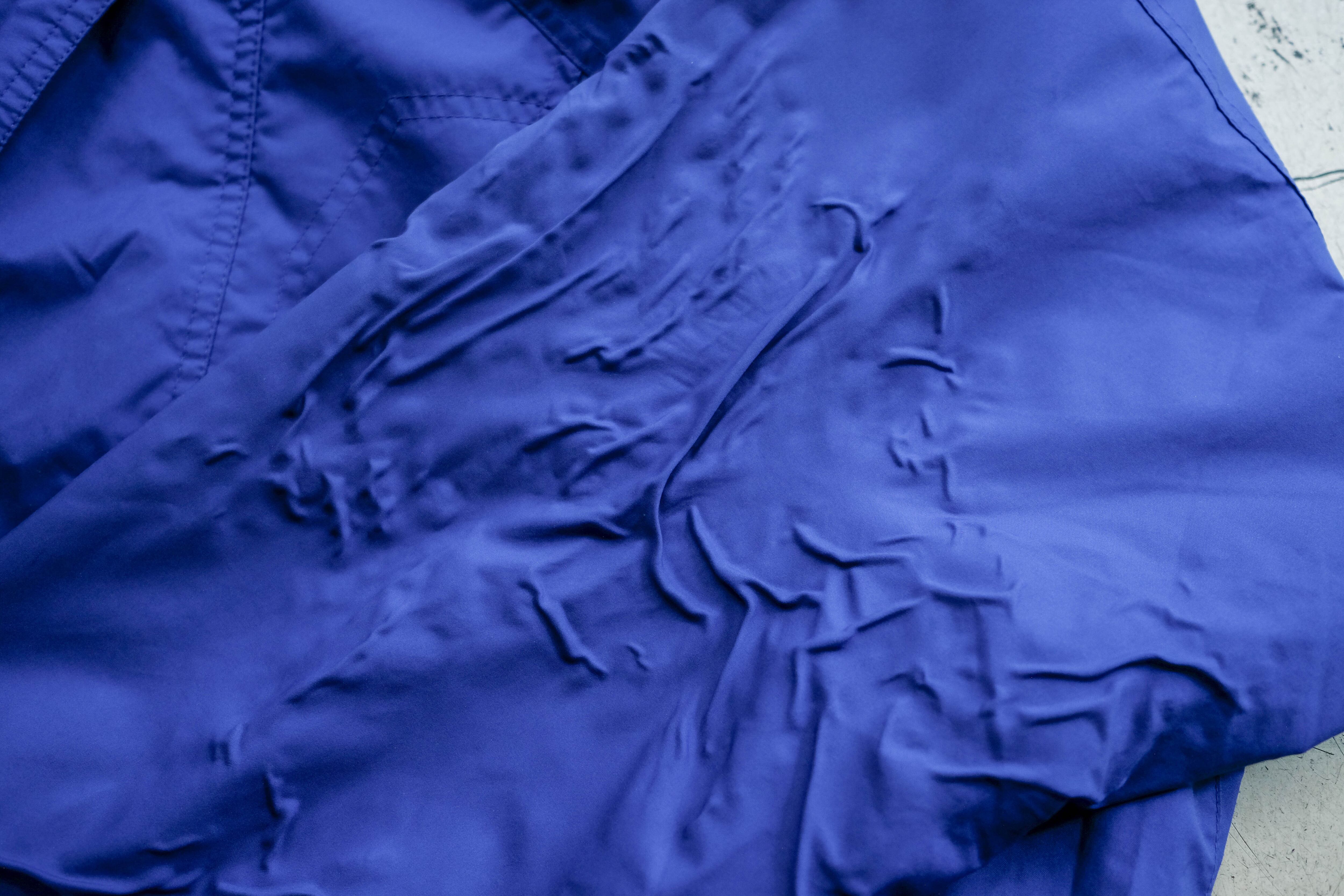 鮮やかなブルーとグレーが良いコントラストの一着。