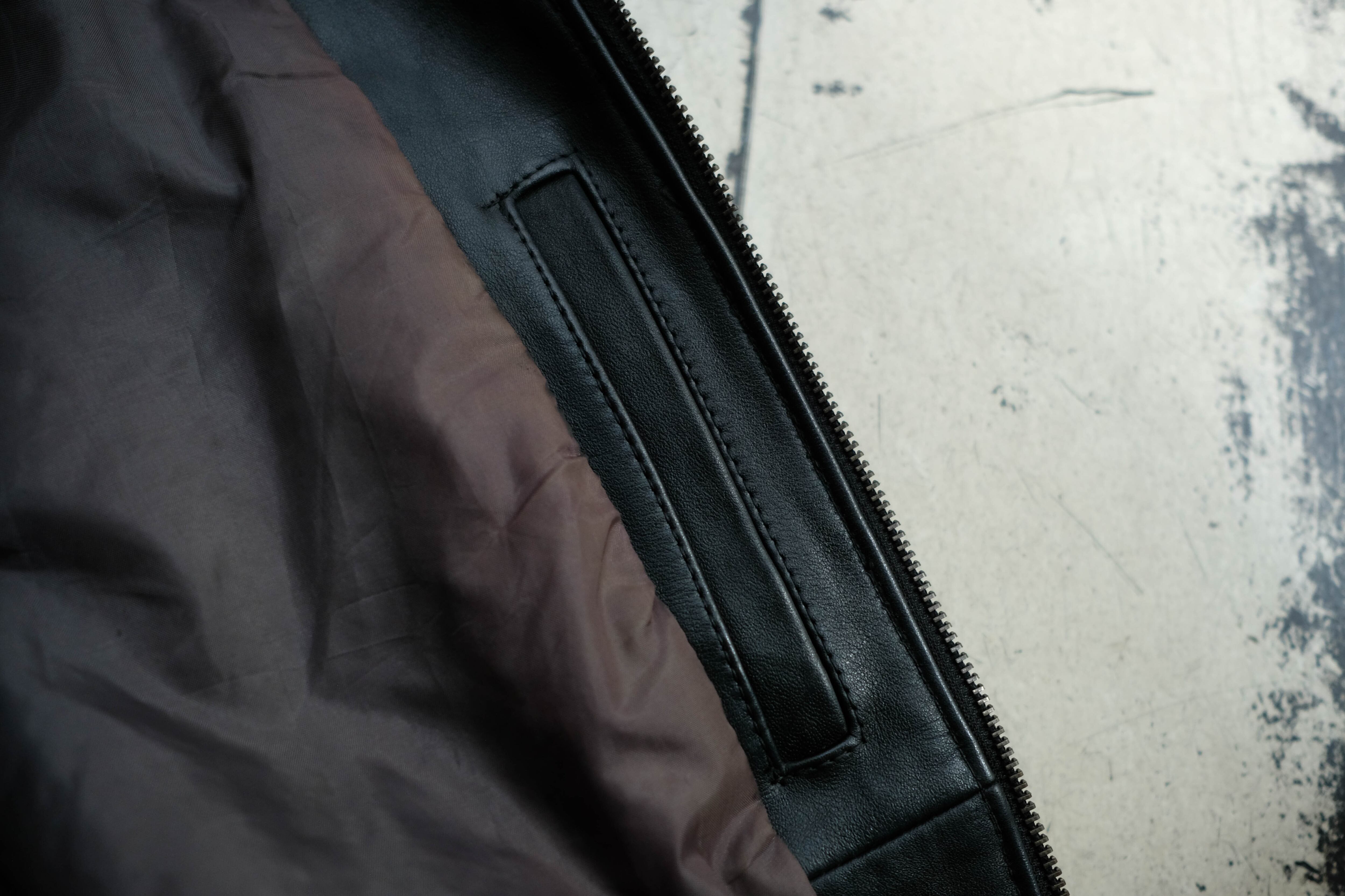 スタンドカラーの襟はジップをひらけばきれいに開襟するので、スタイルに合わせて調節していただけます。
