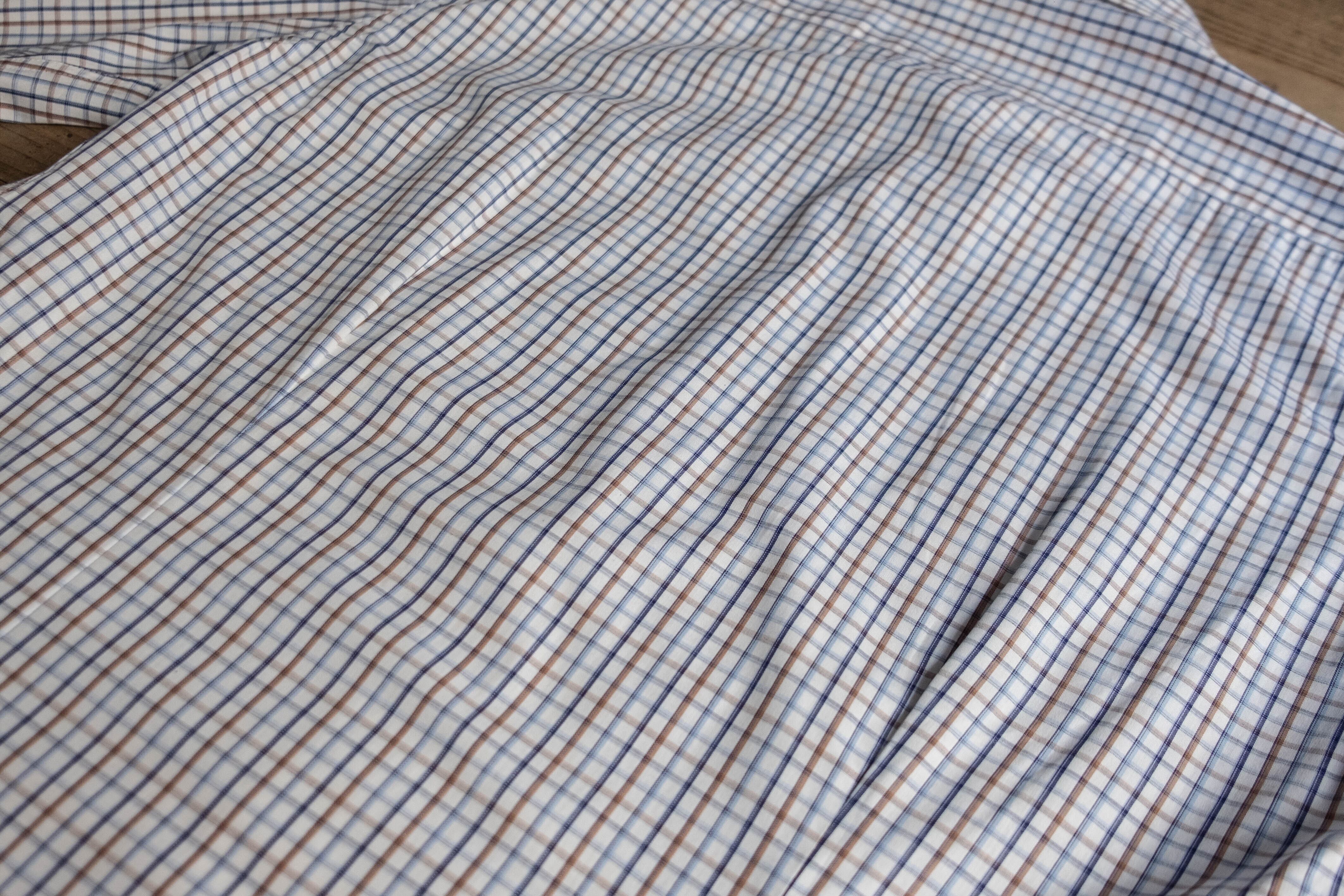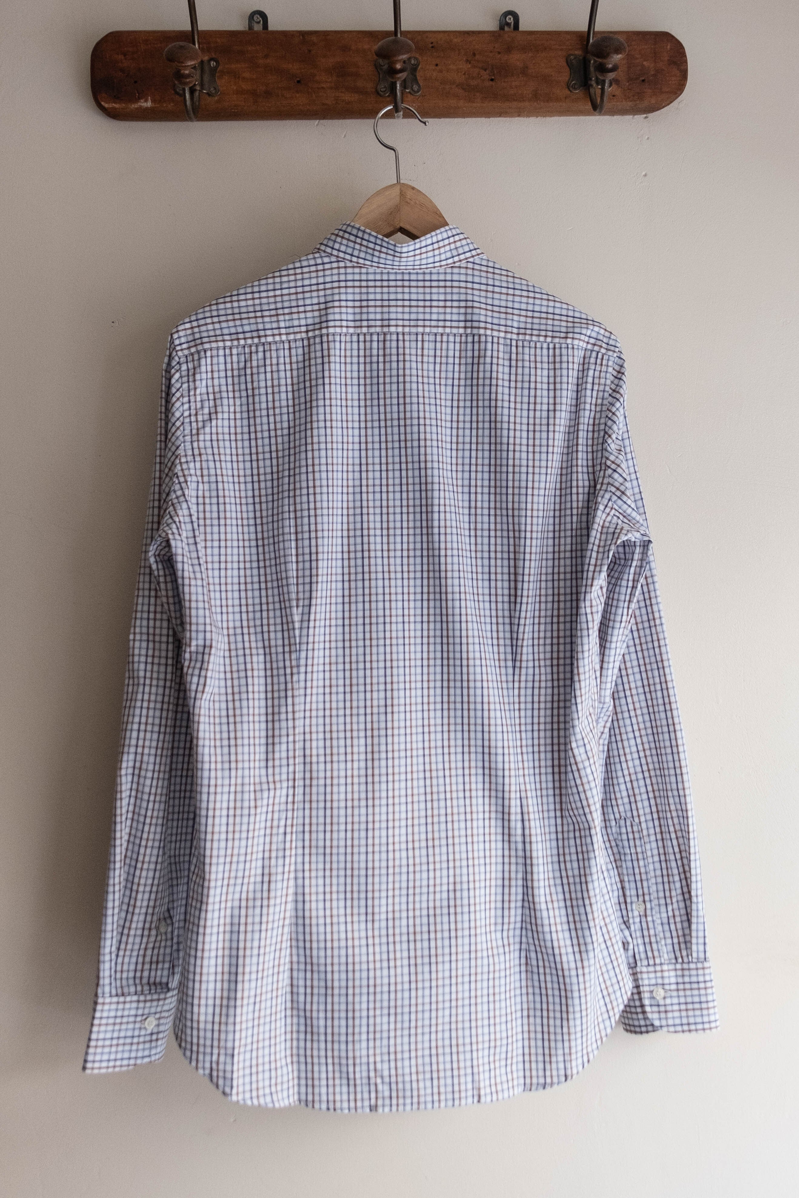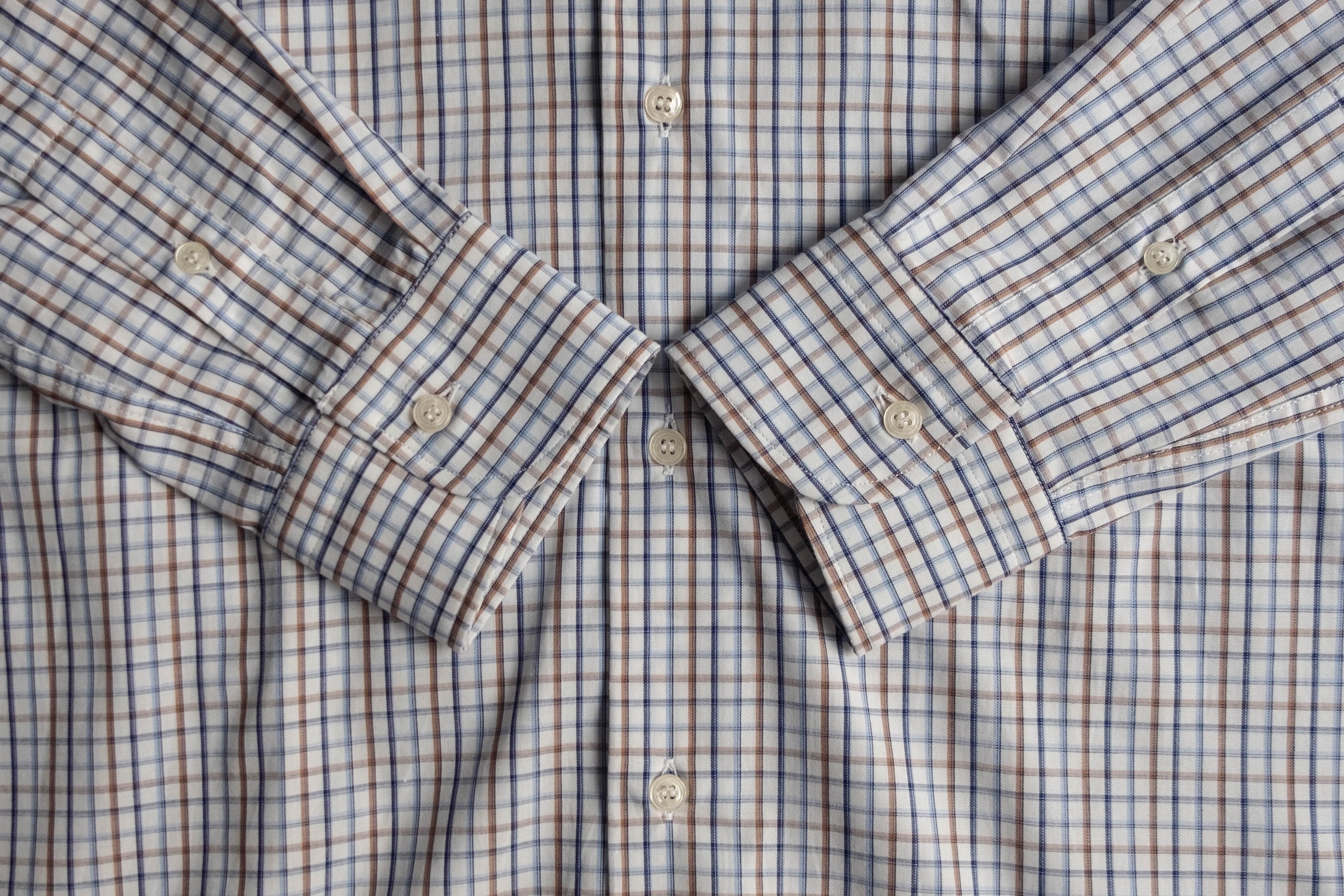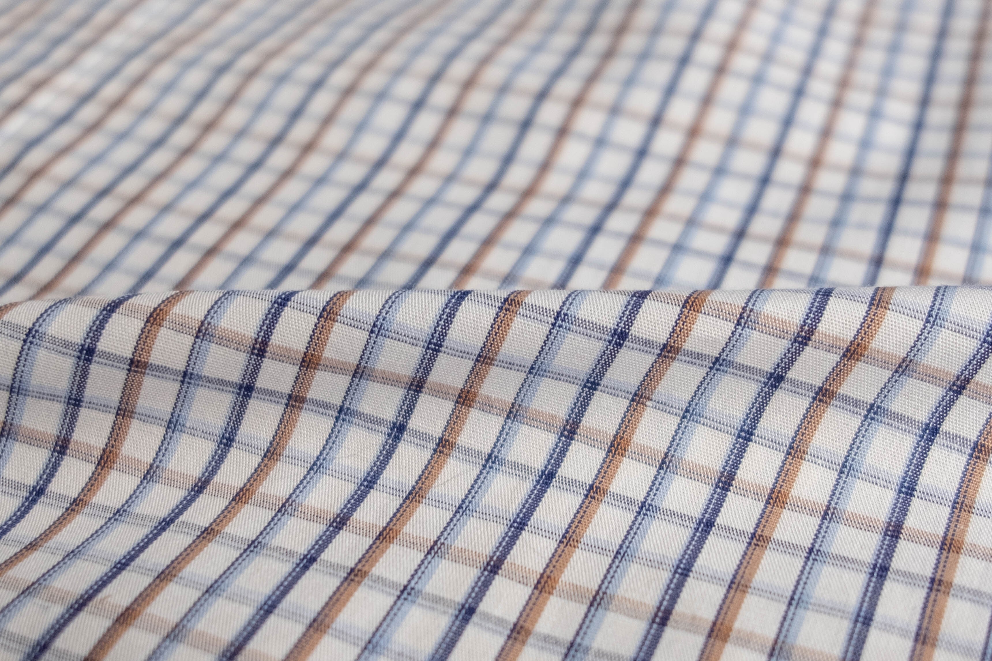 こちらはホワイトベースにブルーとブラウンのチェック柄が入ります。
