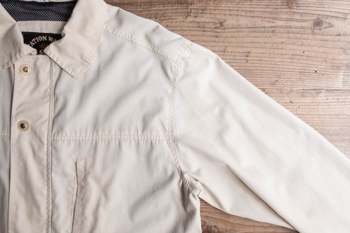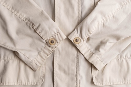 アイボリーで一見非常にシンプルなデザインですが、デザインの効いたボタンやステッチがアクセントになっています。
