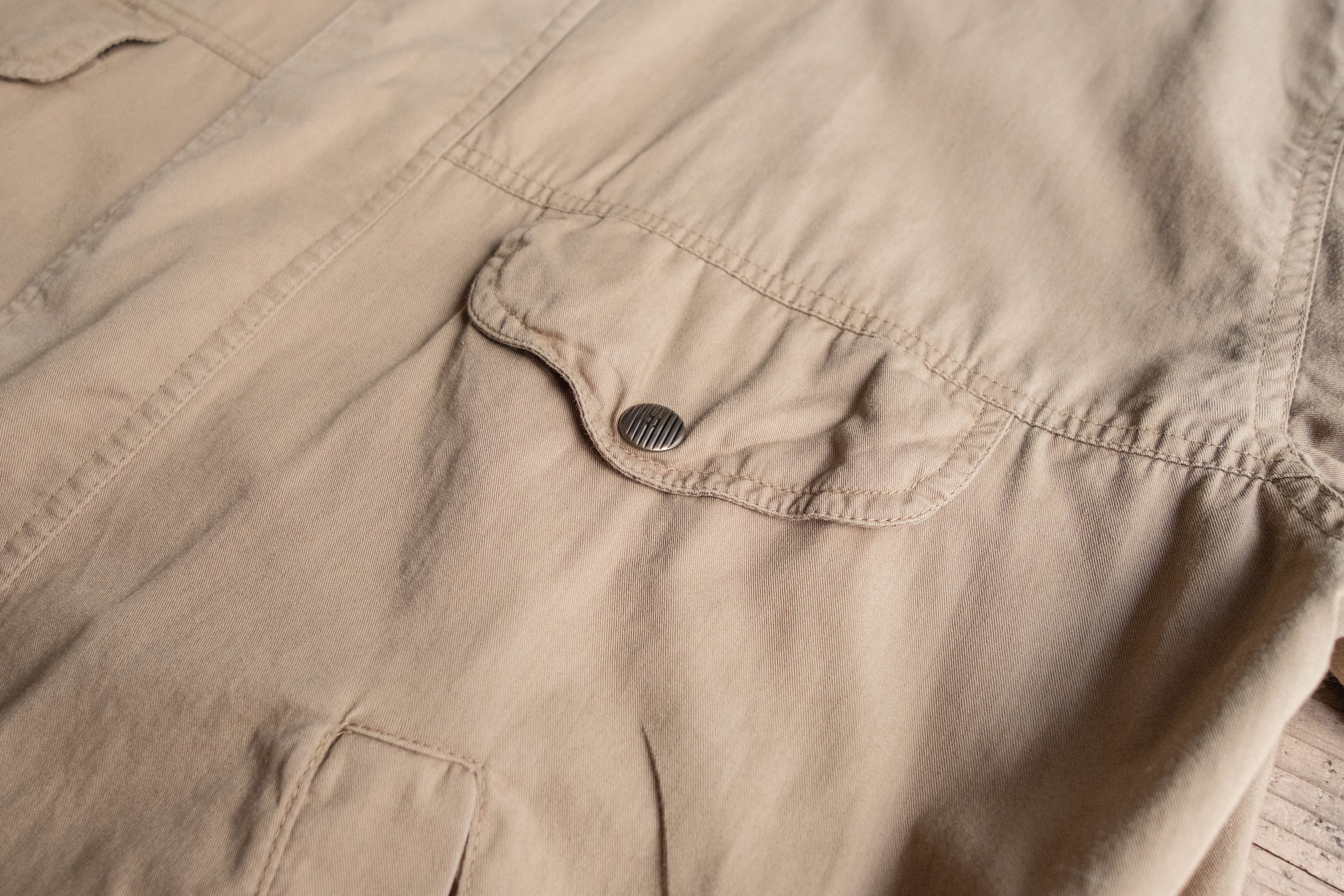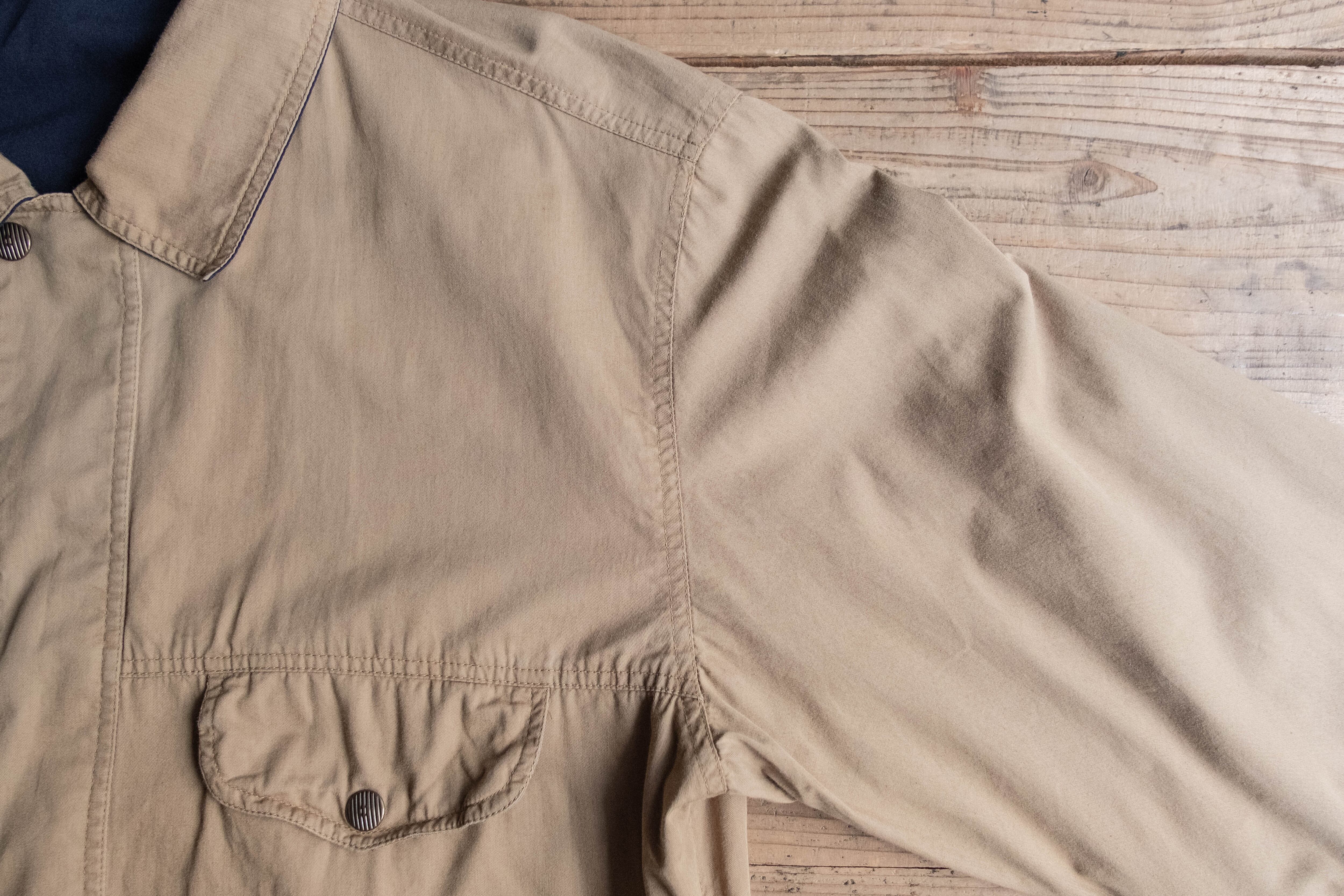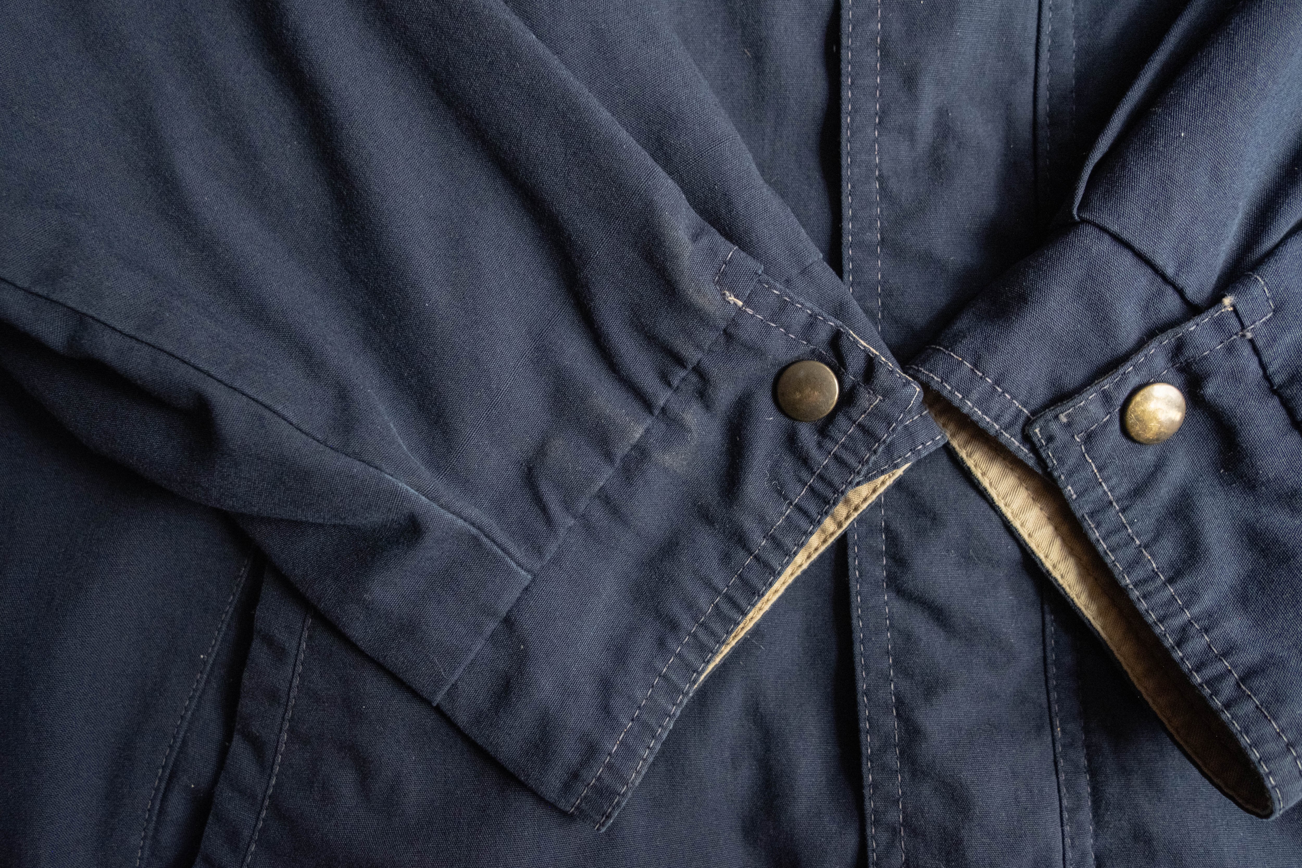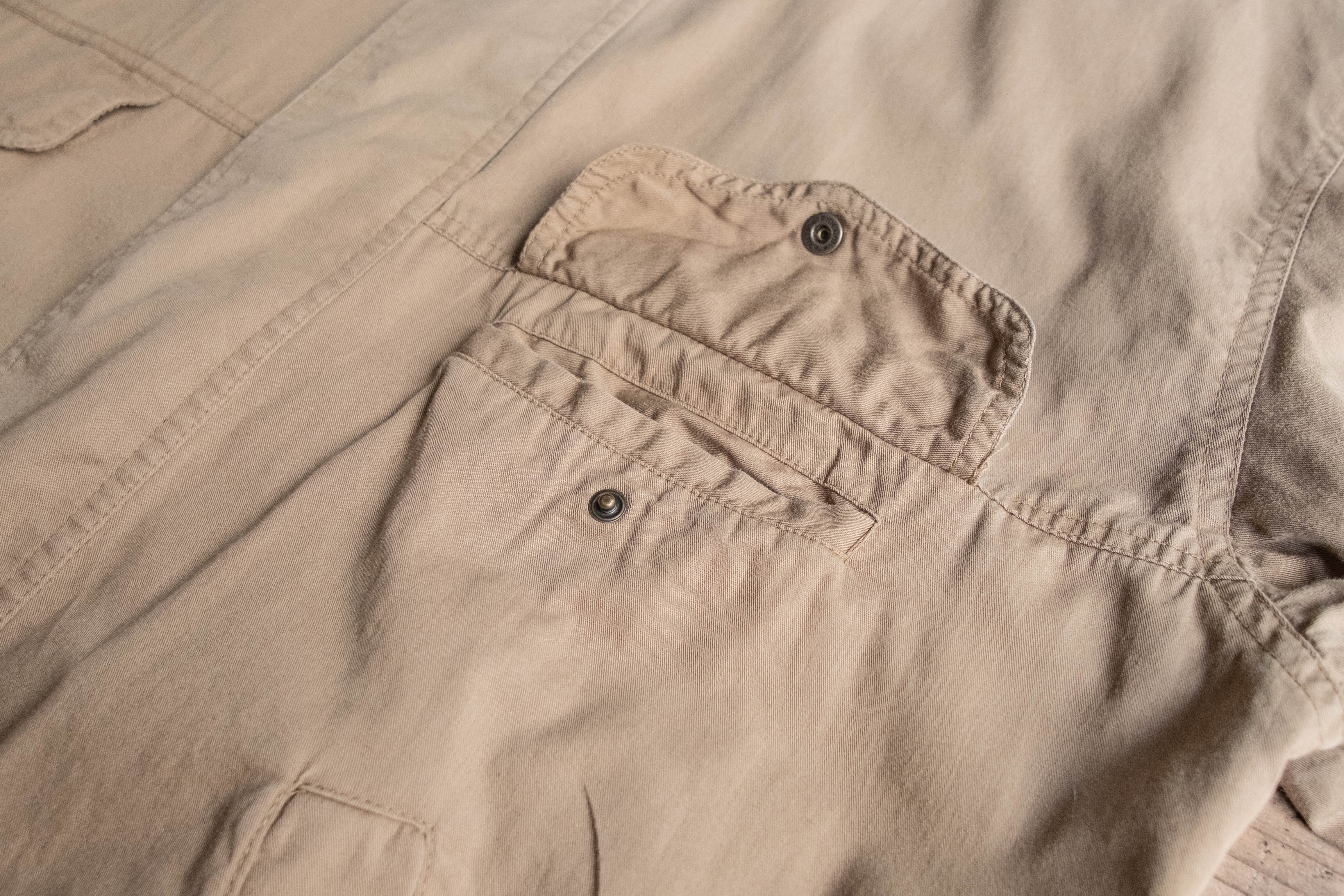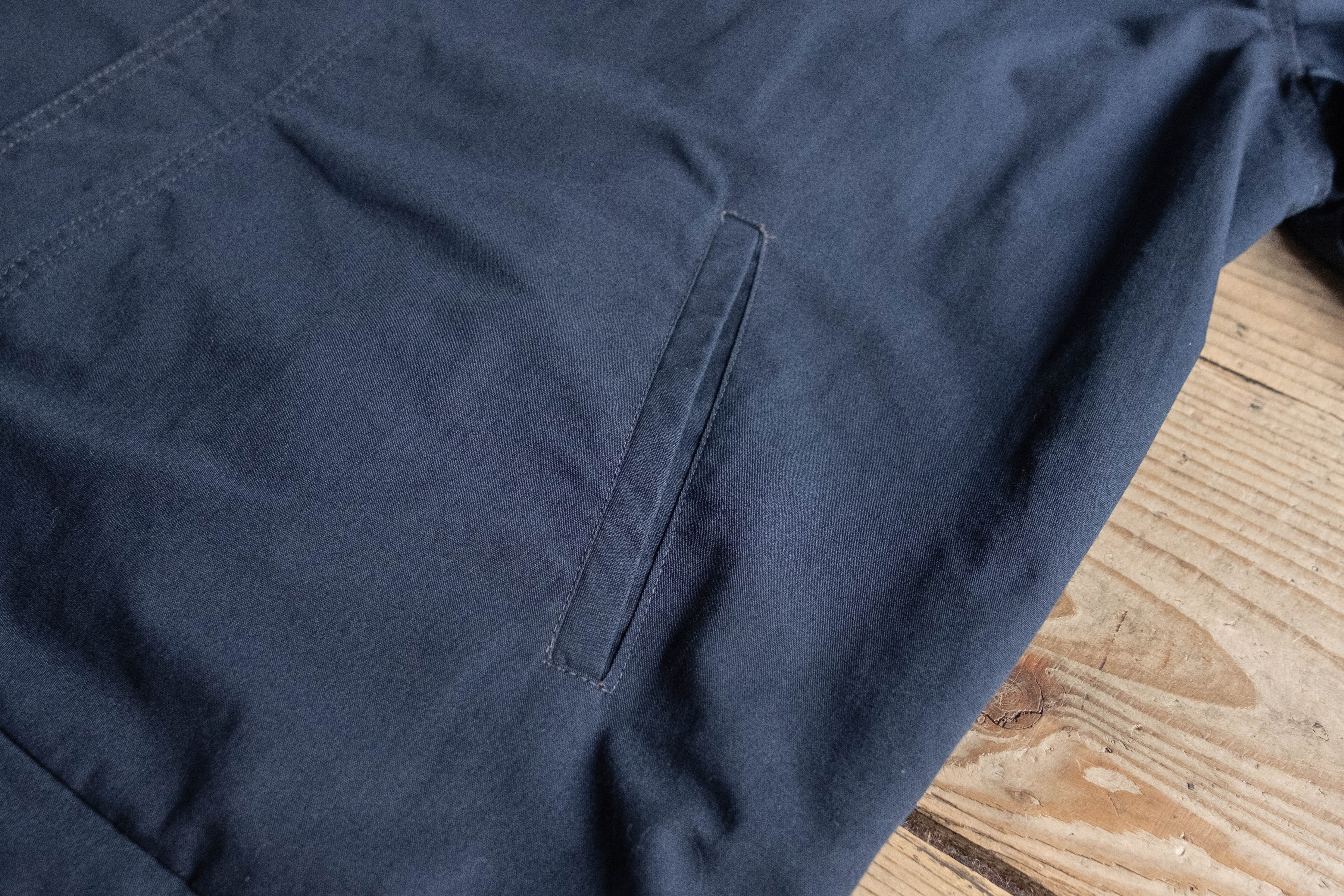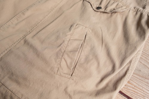 トラッカータイプですが、比翼仕立てになっており表に出るボタンの数が少ないためミニマルな印象です。