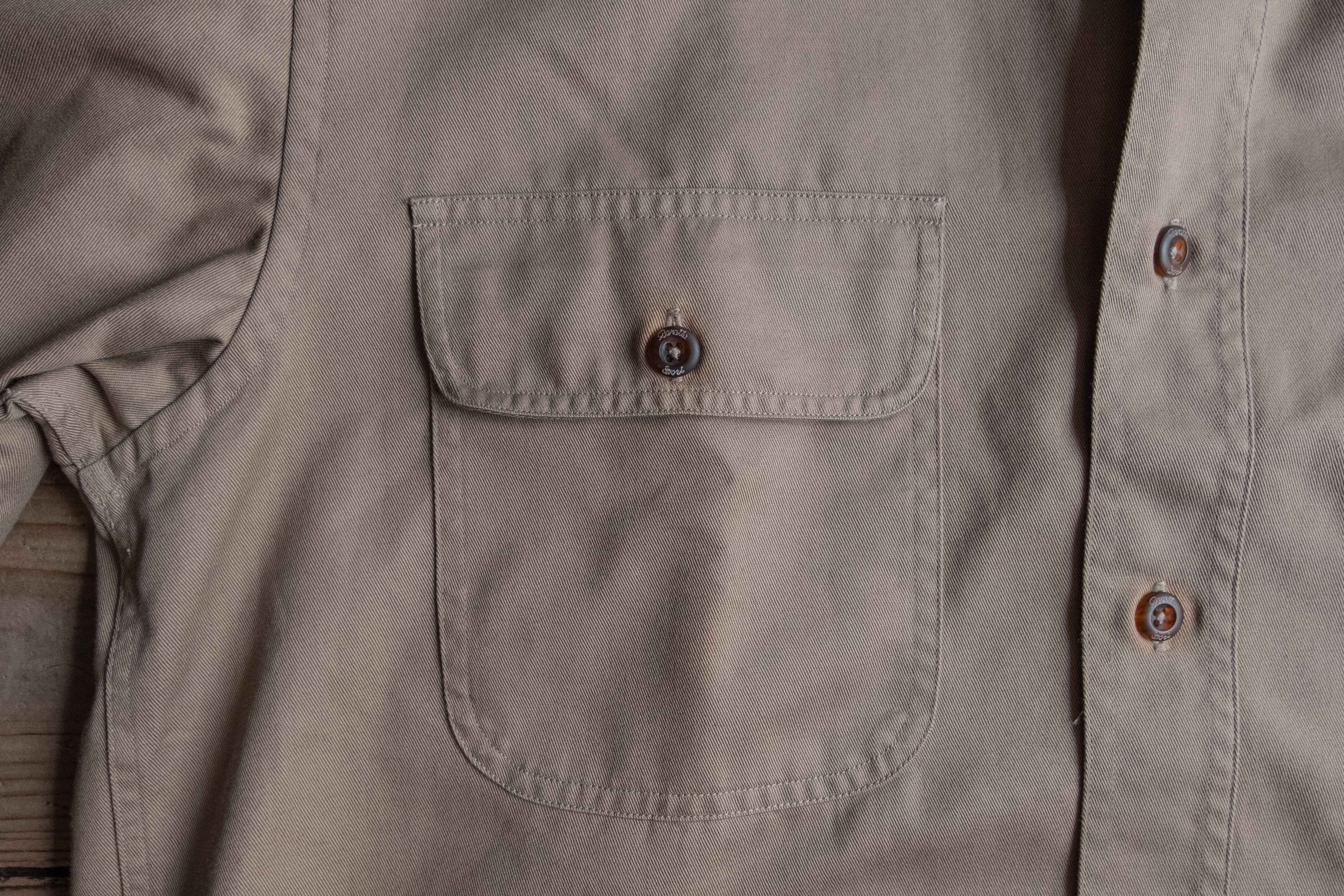 多少光沢感のある薄手ながらもハリ感のあるチノ生地です。