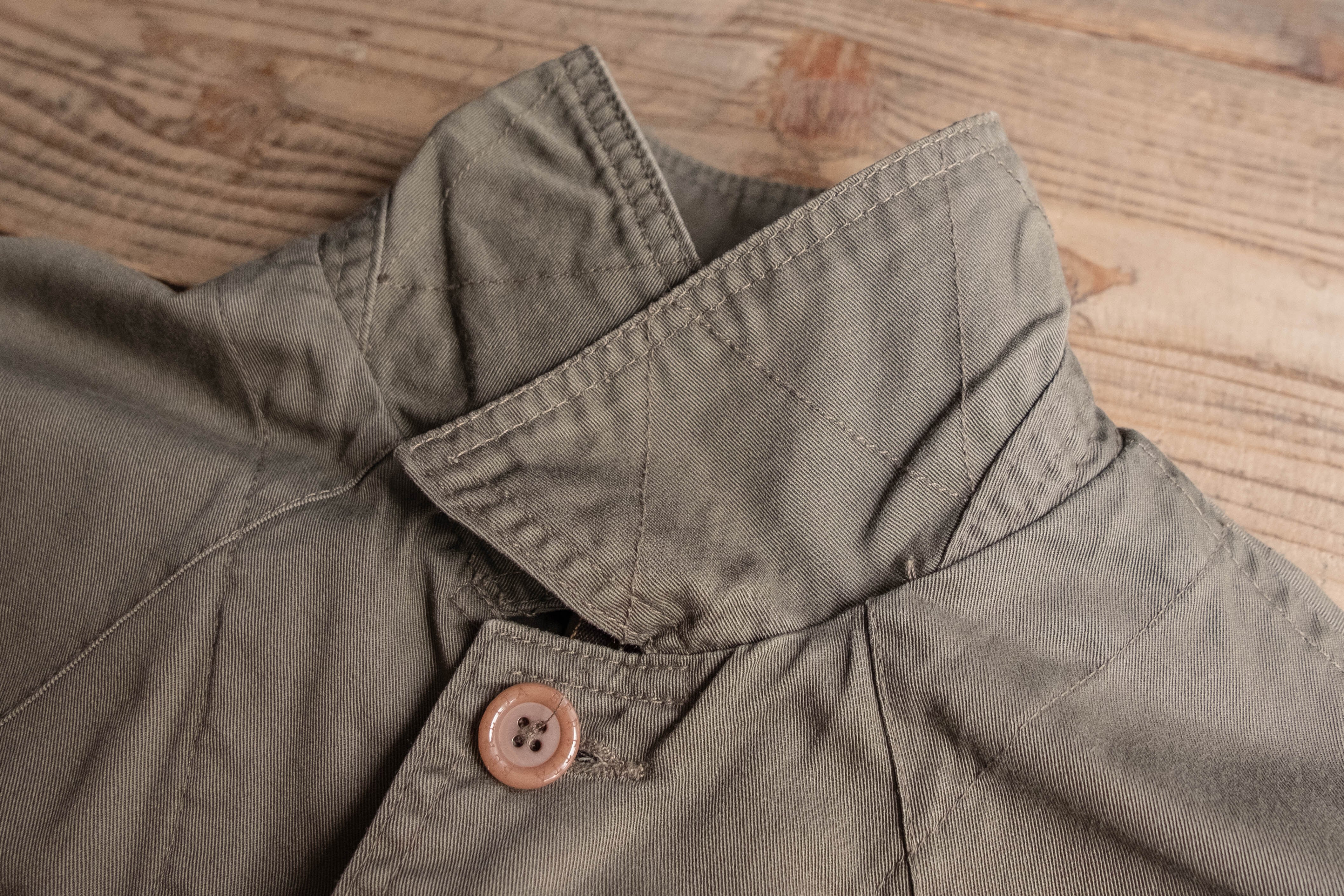 他にもサイドベンツが入っていたり、フラップポケットの横から手を入れられるポケットが付いていたり、襟裏のステッチ、アクションプリーツなどと細かく作り込まれています。