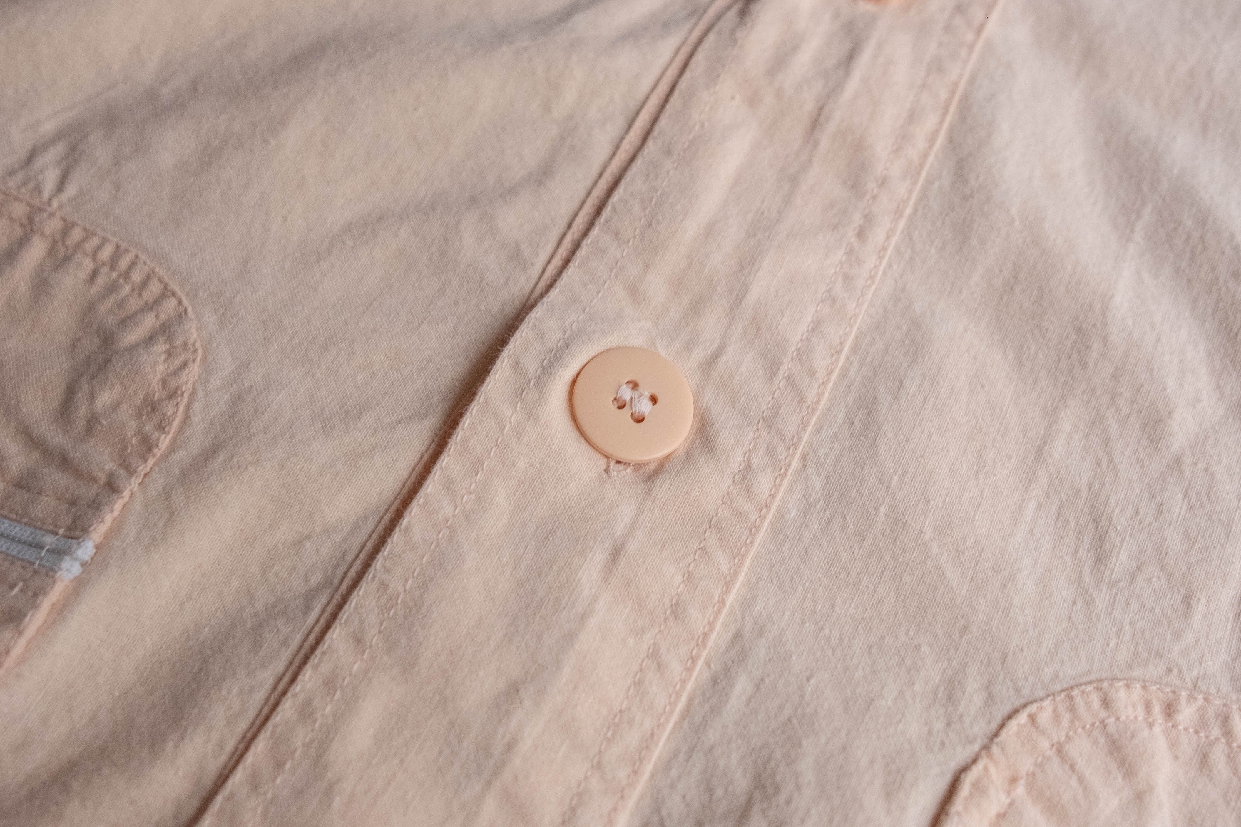 ピンクベージュのようなカラーで全体的に柔らかい雰囲気ですが、右袖につくポケットやエポレットなど少しミリタリーテイストのデザインが施されているのも面白いポイントです。