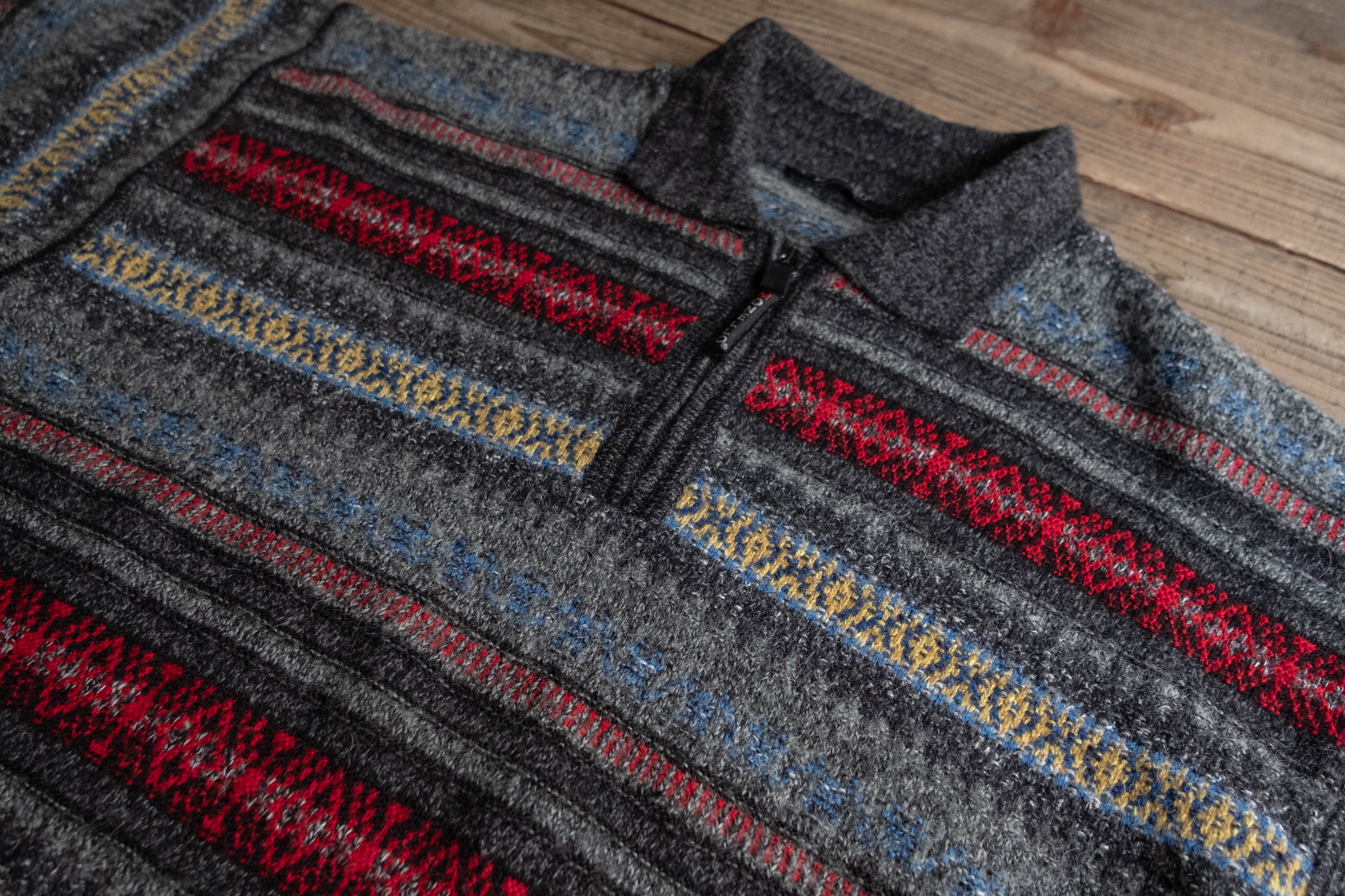 グレーをベースにレッド、ブルー、イエローの柄が入ります。