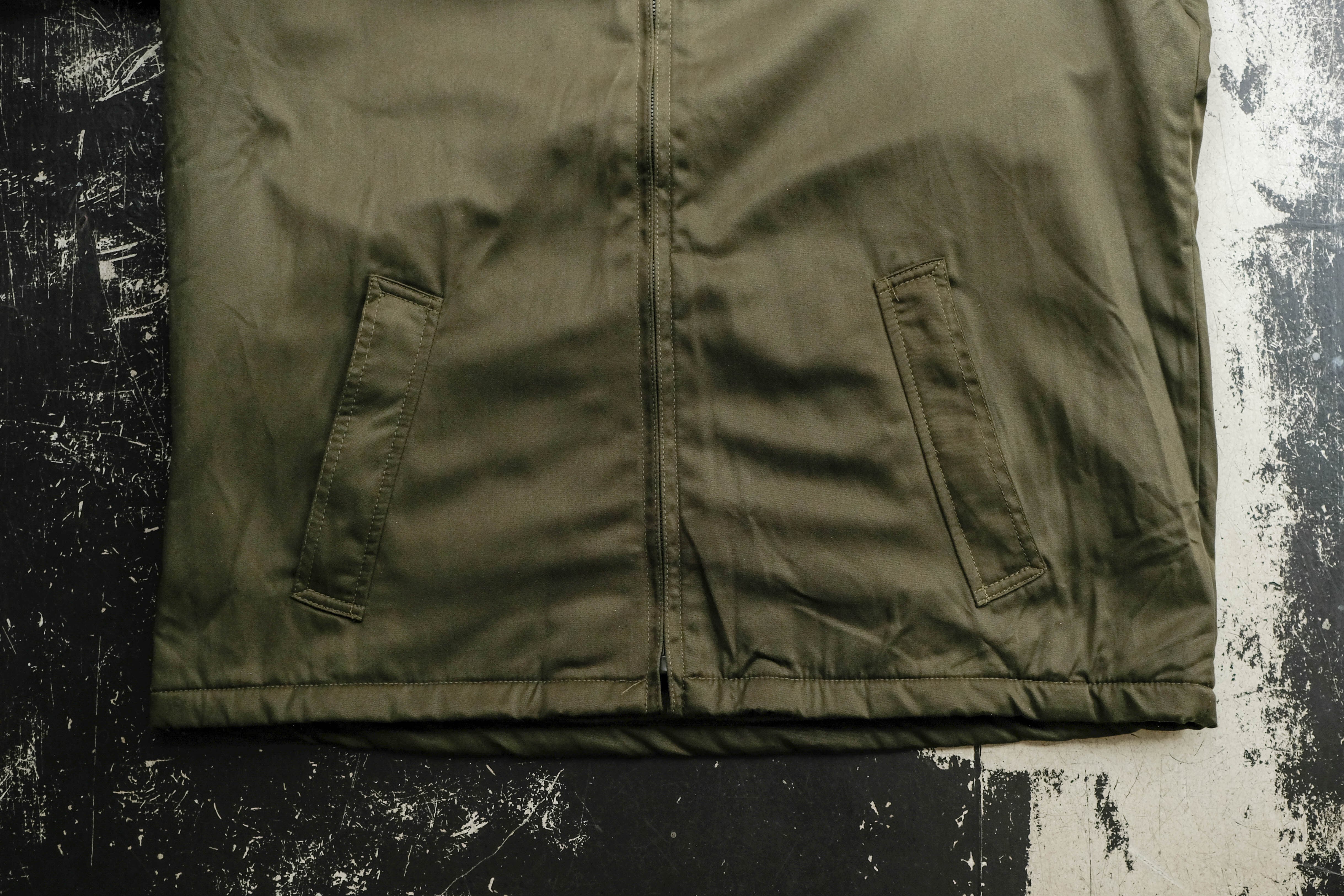 フロント部分もワタが入っているような、やや厚めの構造になっているのでベストのように着用しても防寒性はしっかり感じていただけます。