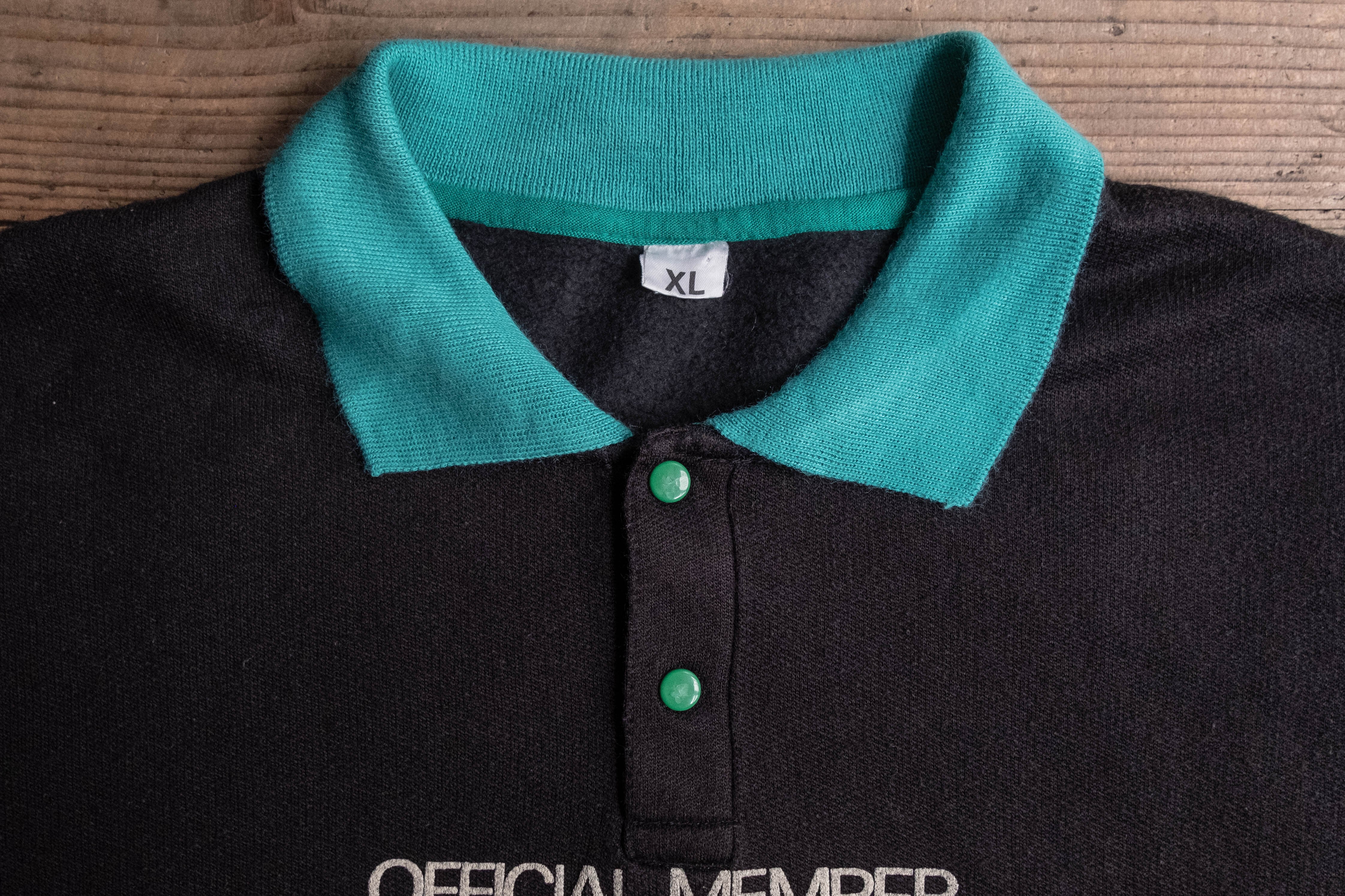 ブラックカラーに襟のリブだけエメラルドグリーンの切り替えになっています。