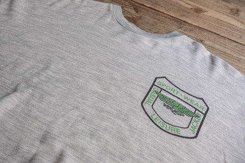 胸にはSPORTS-WEAR CASUAL LEISURE JACKETとプリントが入っています。