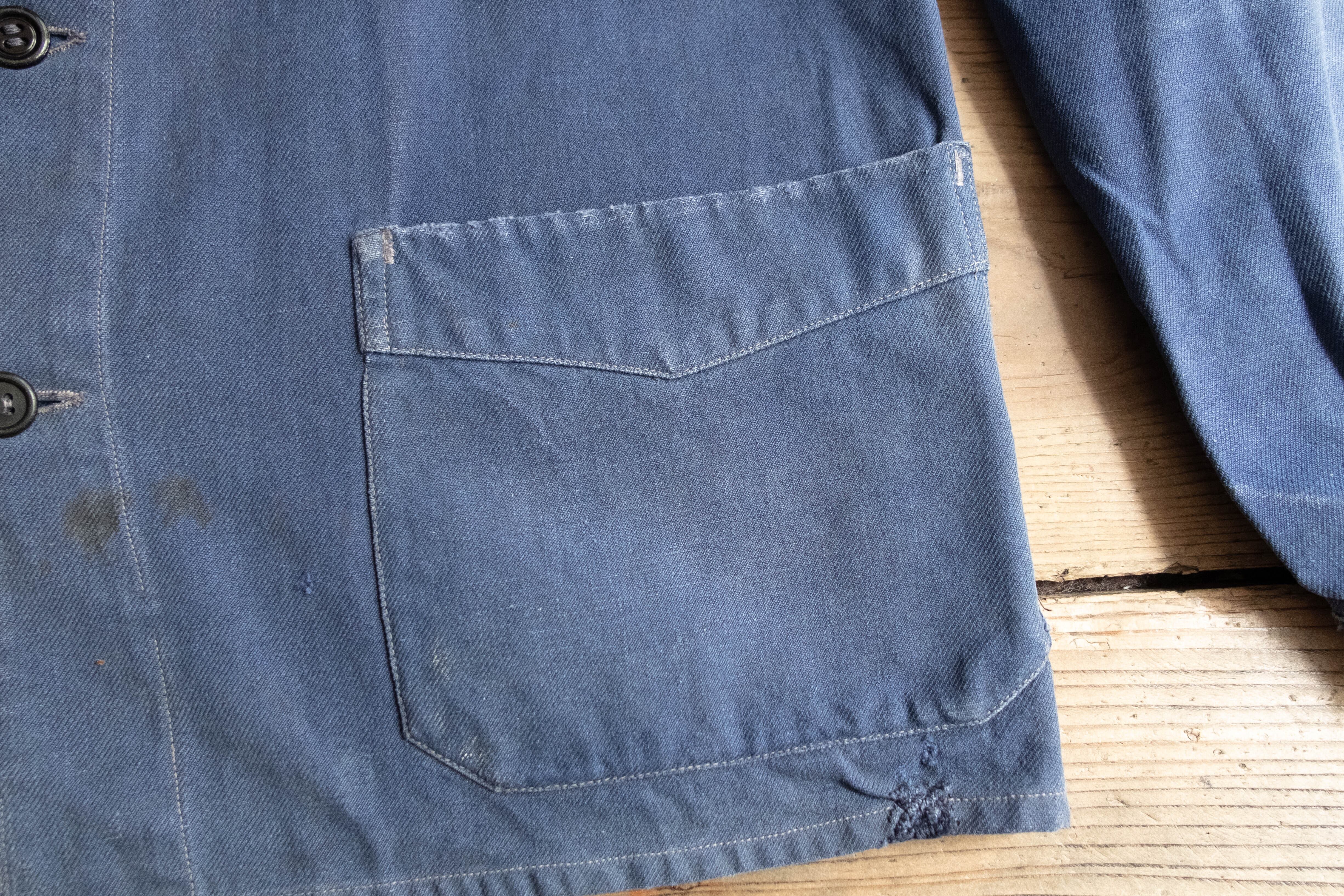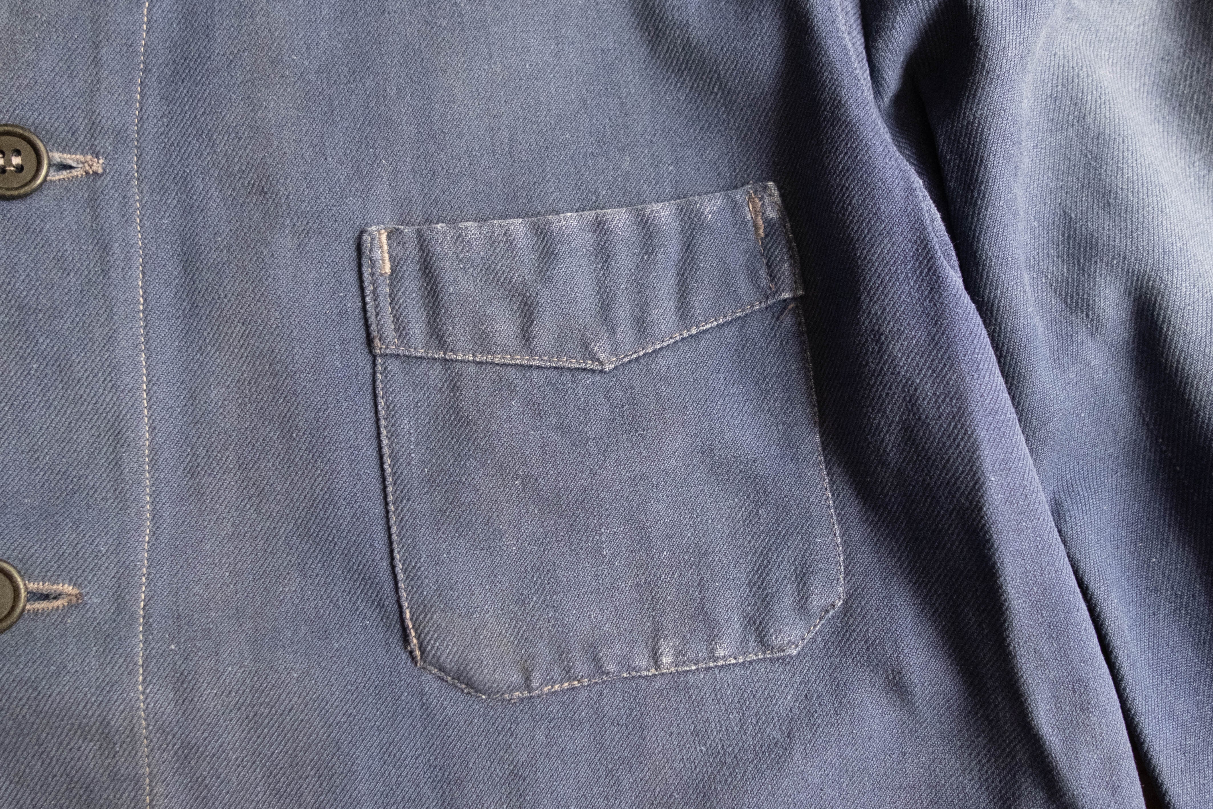 1940年代から1950年代のフランスのブルーコットンツイルワークジャケットです。