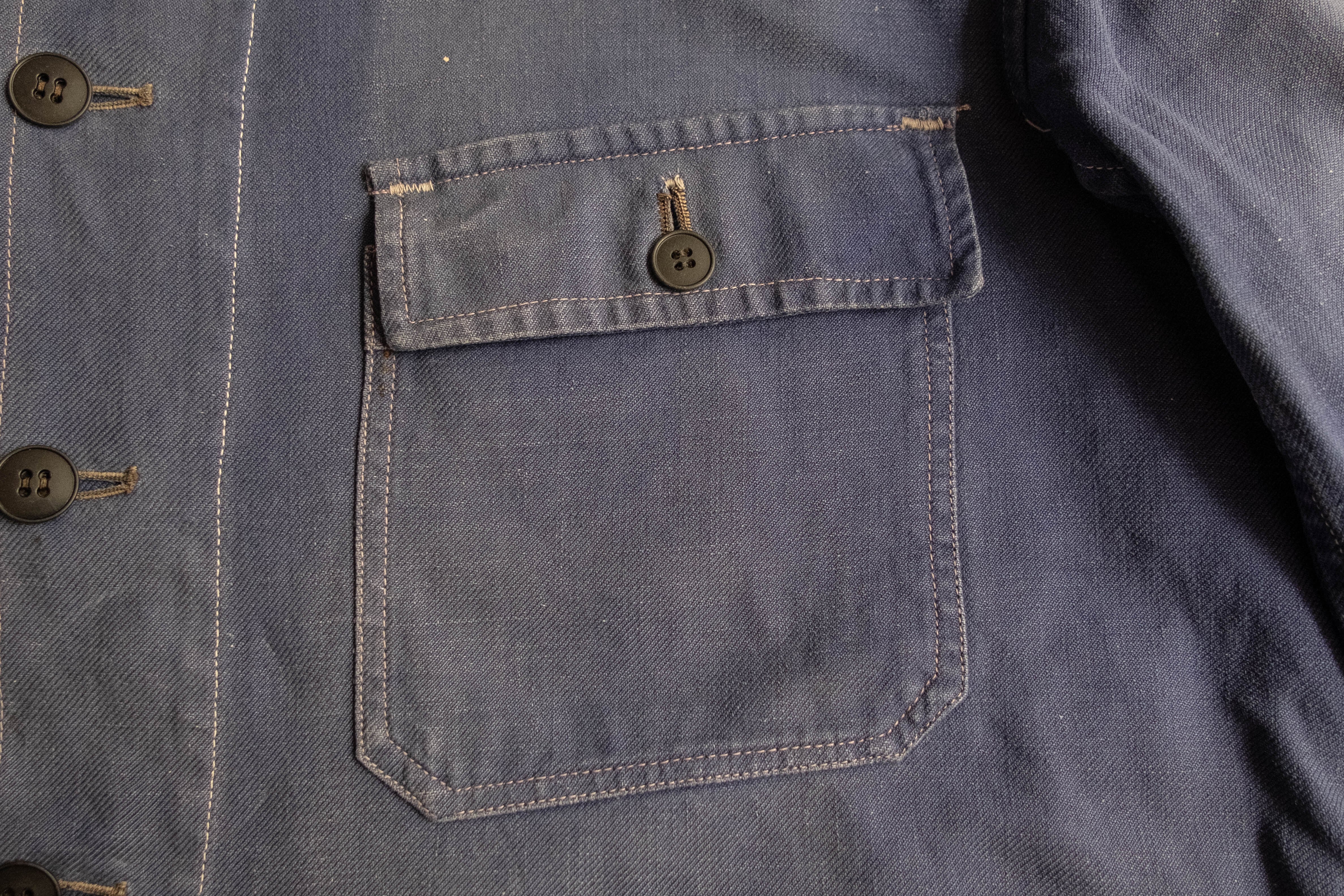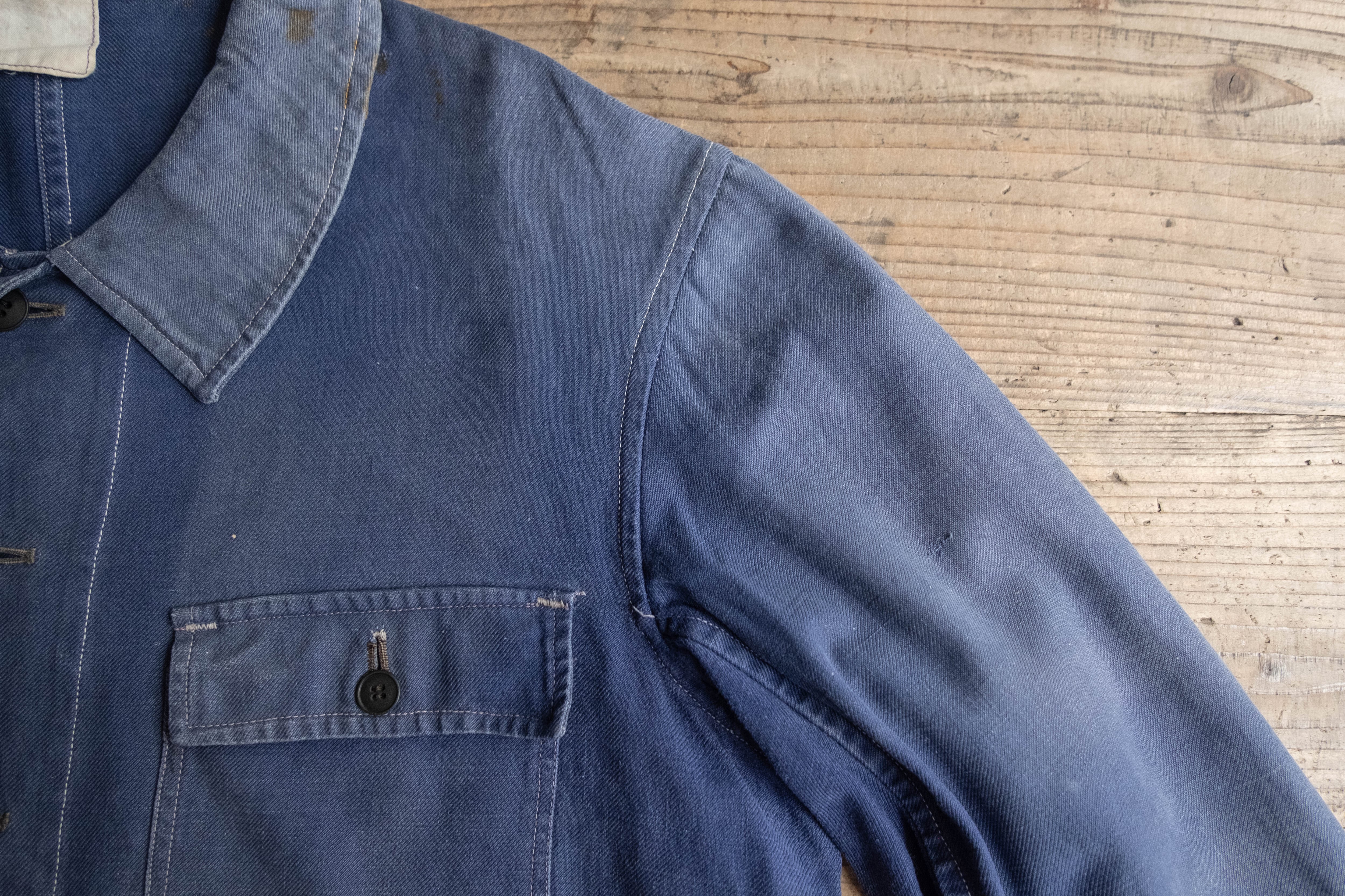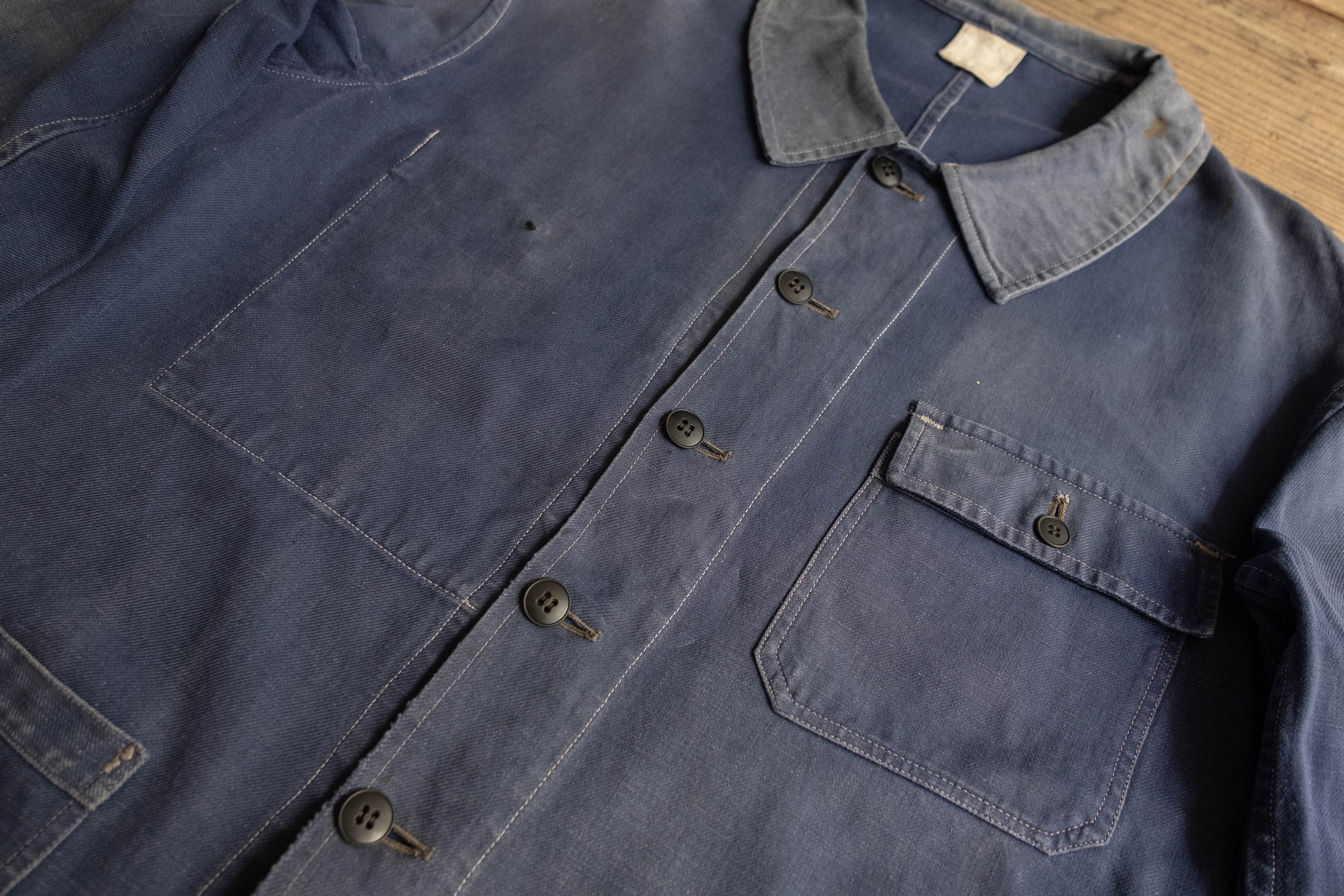 1940年代から1950年代のフランスのブルーコットンツイルワークジャケットです。