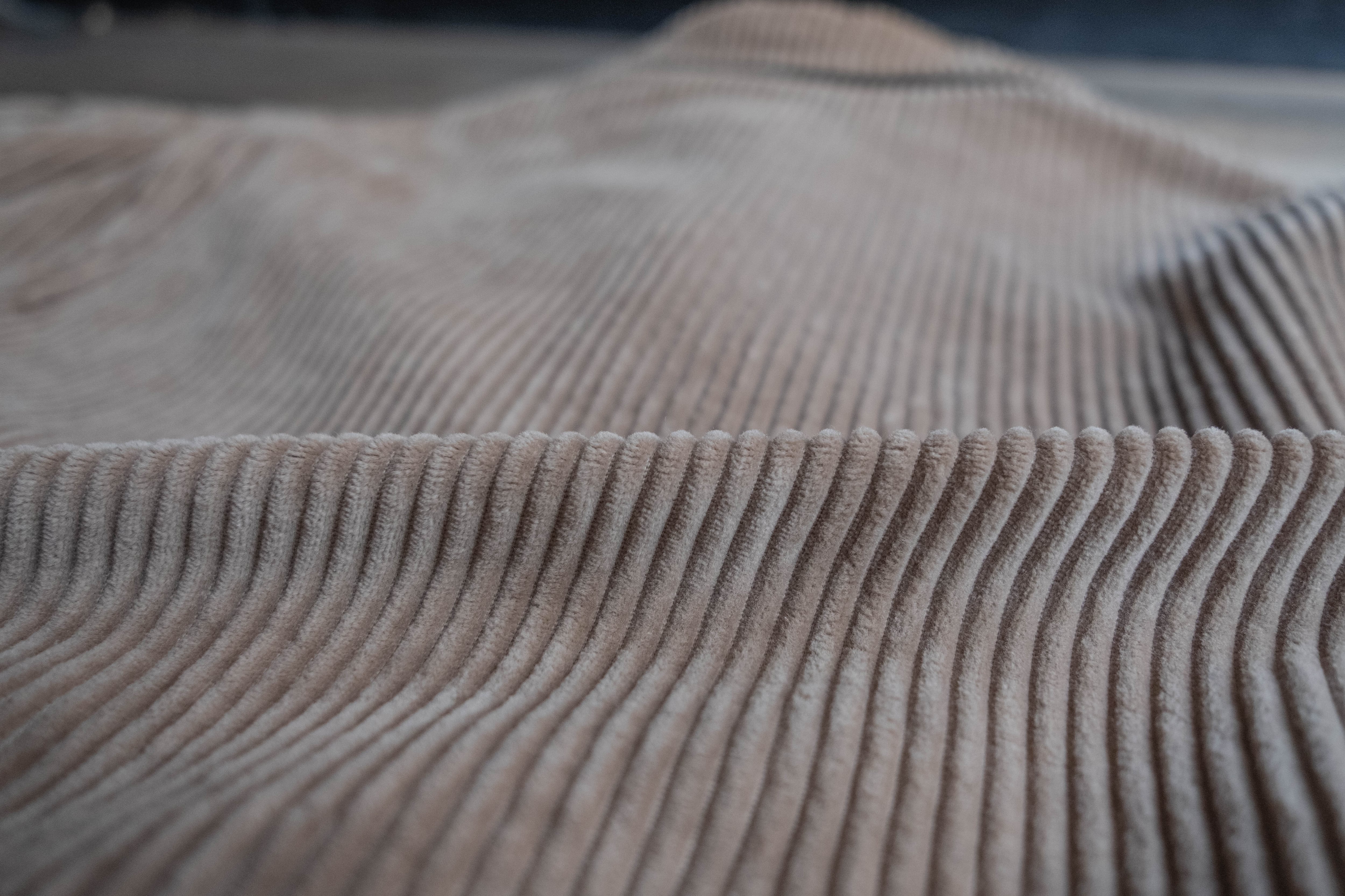A面はキャメルカラーのコーデュロイ、B面はホワイトベージュのツルツルとしたコットンツイル素材です。