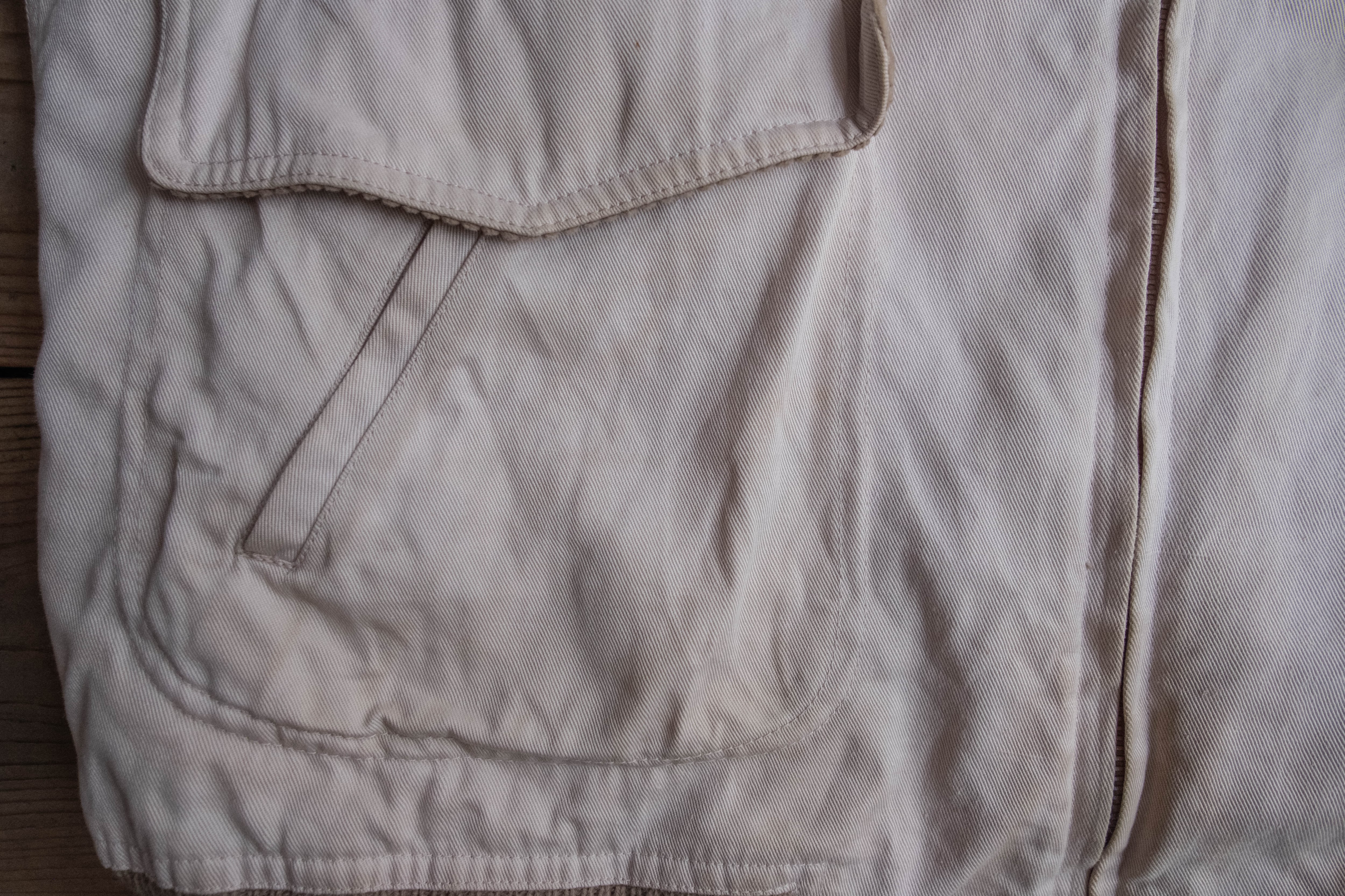 A面はG9ジャケットの様なポケットやくるみボタンがデザインのアクセントになっています。背面の腰部分に入る切り替えやプリーツなどのデザインも一癖あって面白いです。