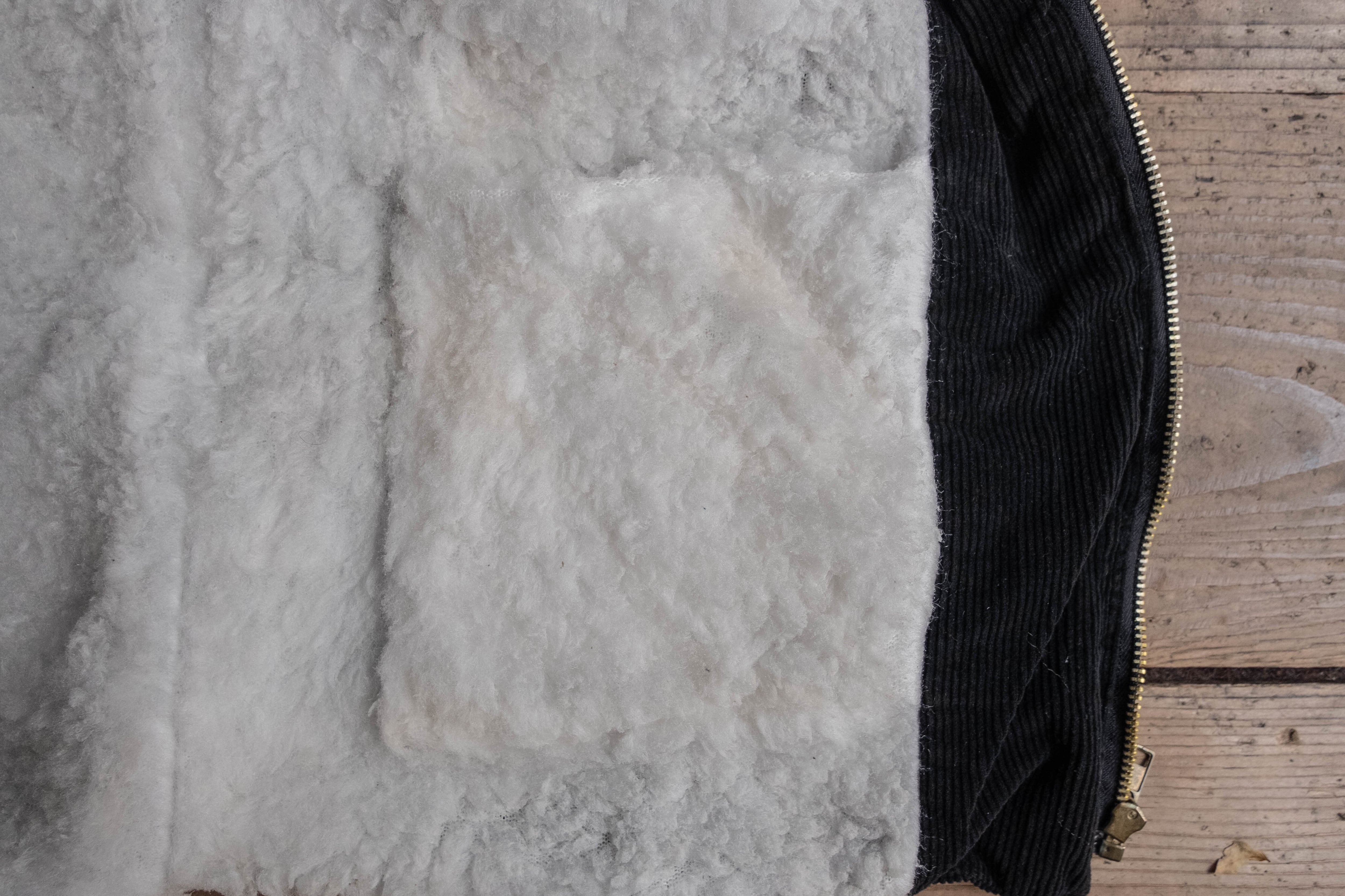 ワーカー用の防寒ベストで、動きやすいように身幅がたっぷりと広く、寒い場所でも温かいようにボアが付く仕様です。