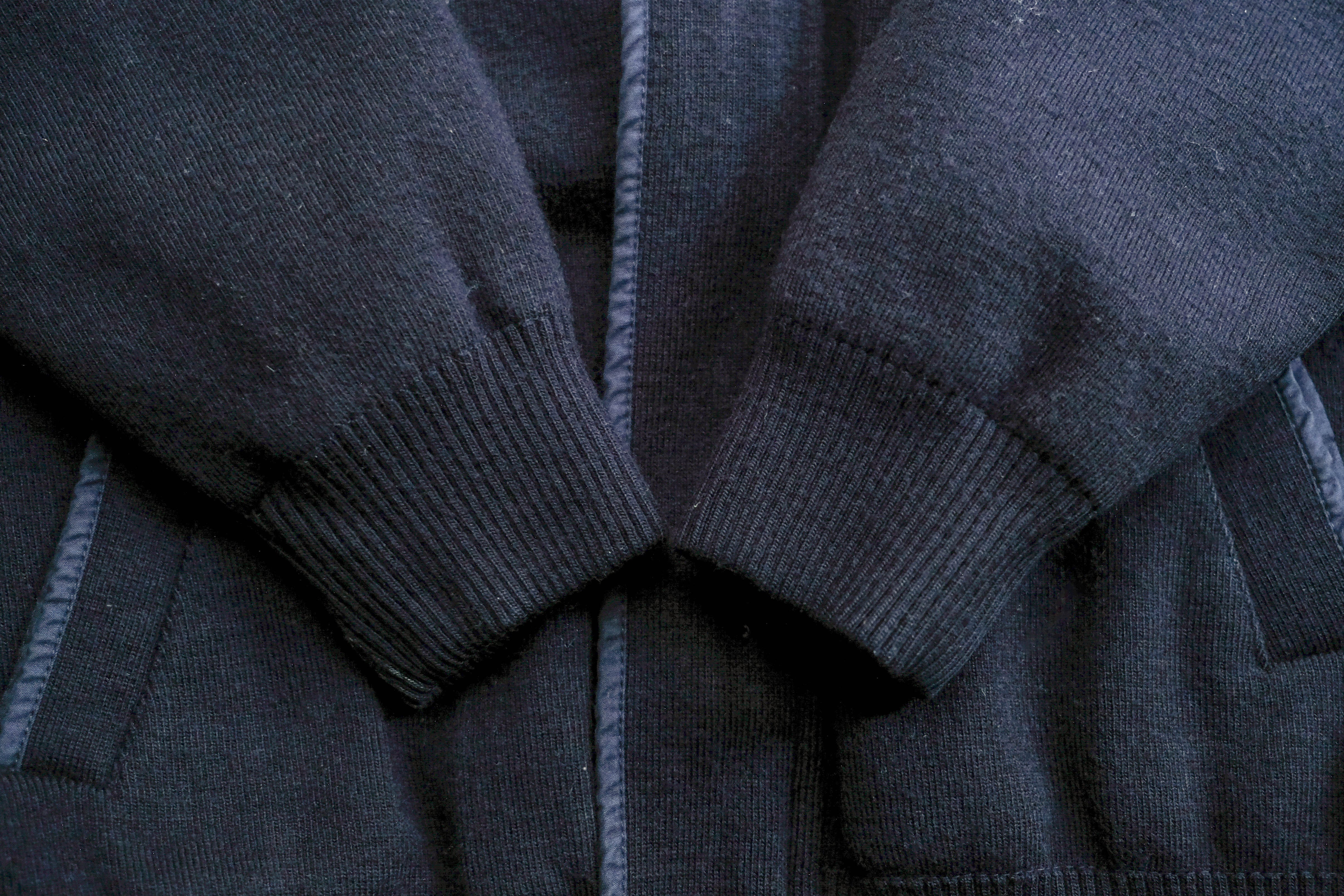 身幅と着丈は程よくありますが、裾のリブがしっかり効いているので腰元で綺麗に溜まります。