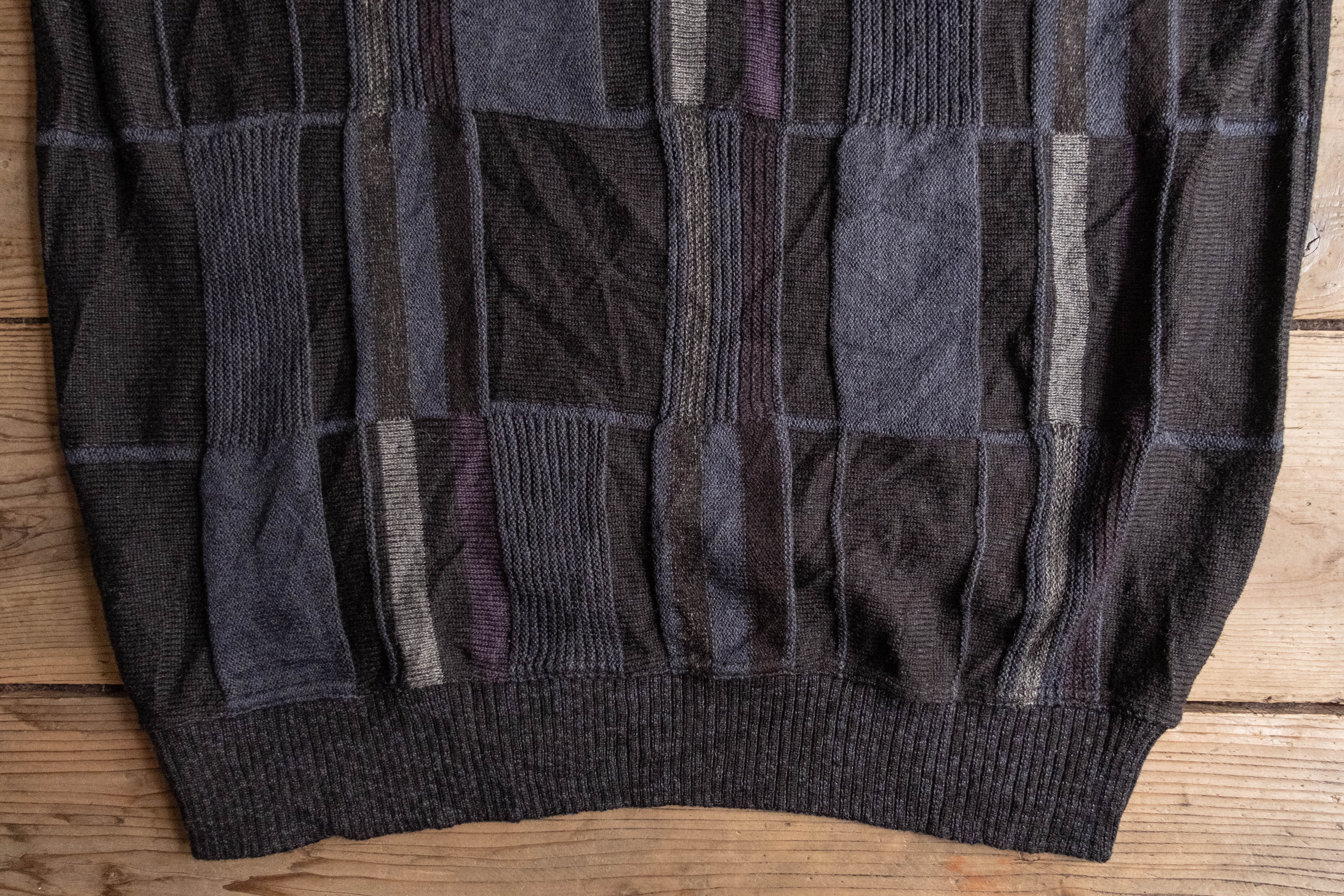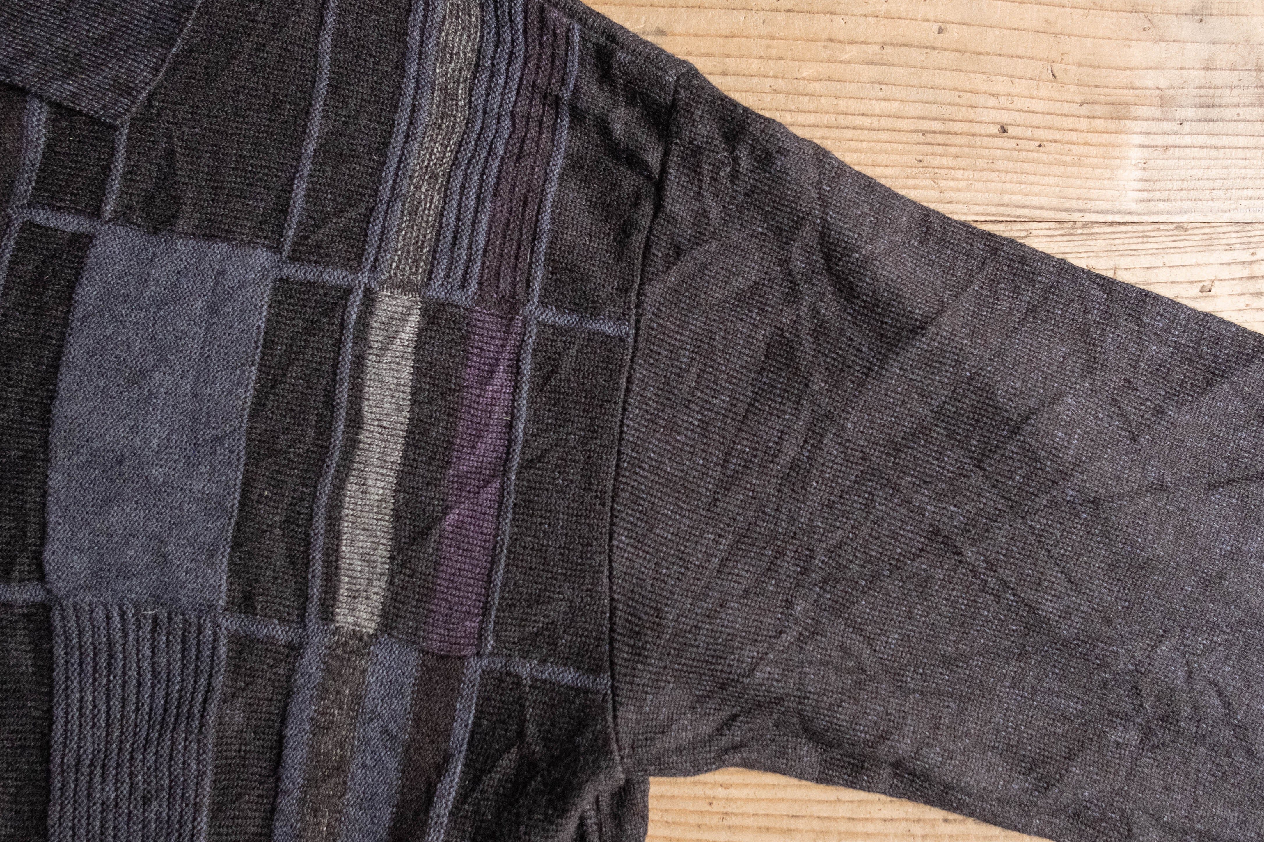 フロント部分のデザインは部分部分でカラーや編み方が異なっており立体感があります。