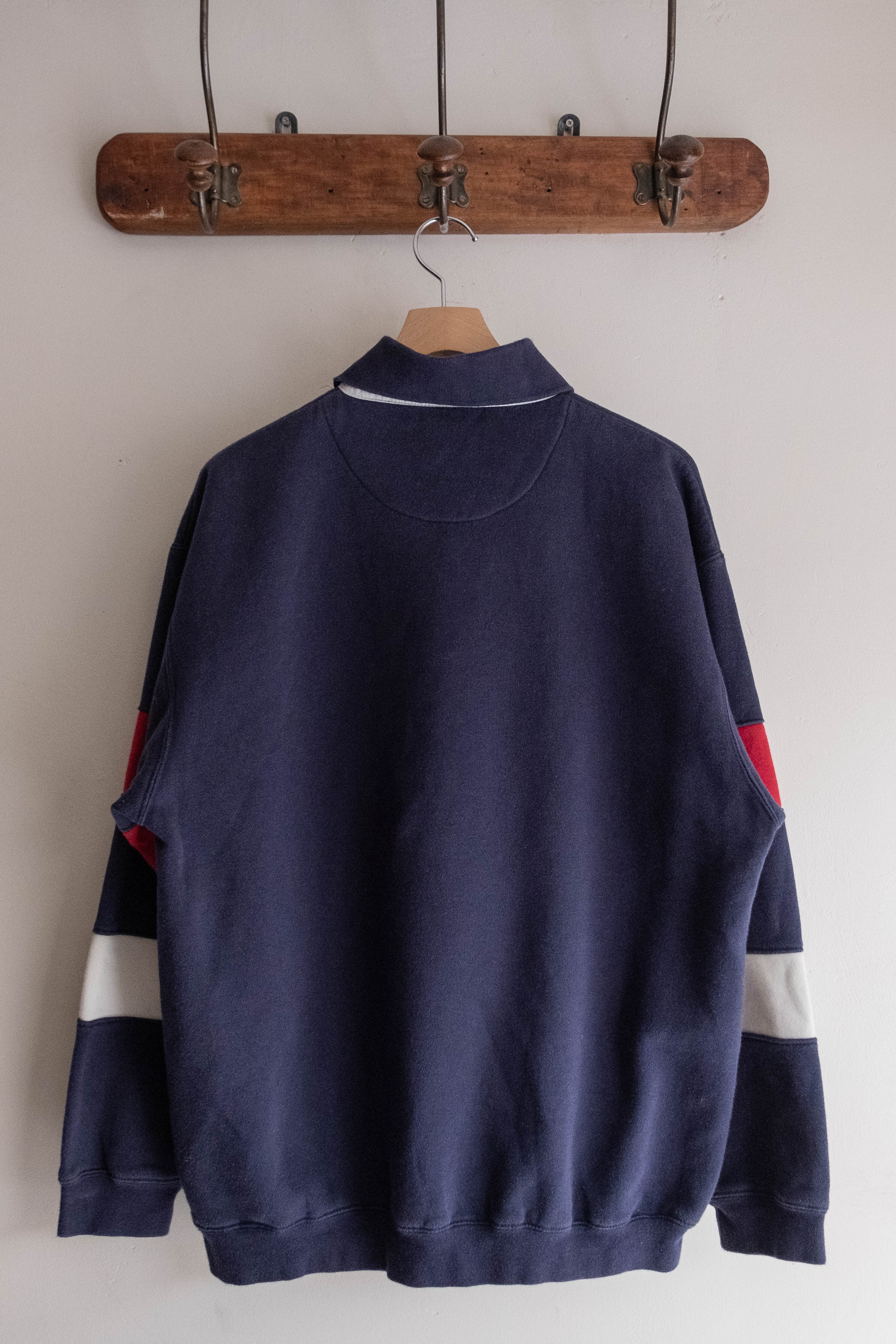 ネイビーベースにレッドとホワイトのラインが入ります。
