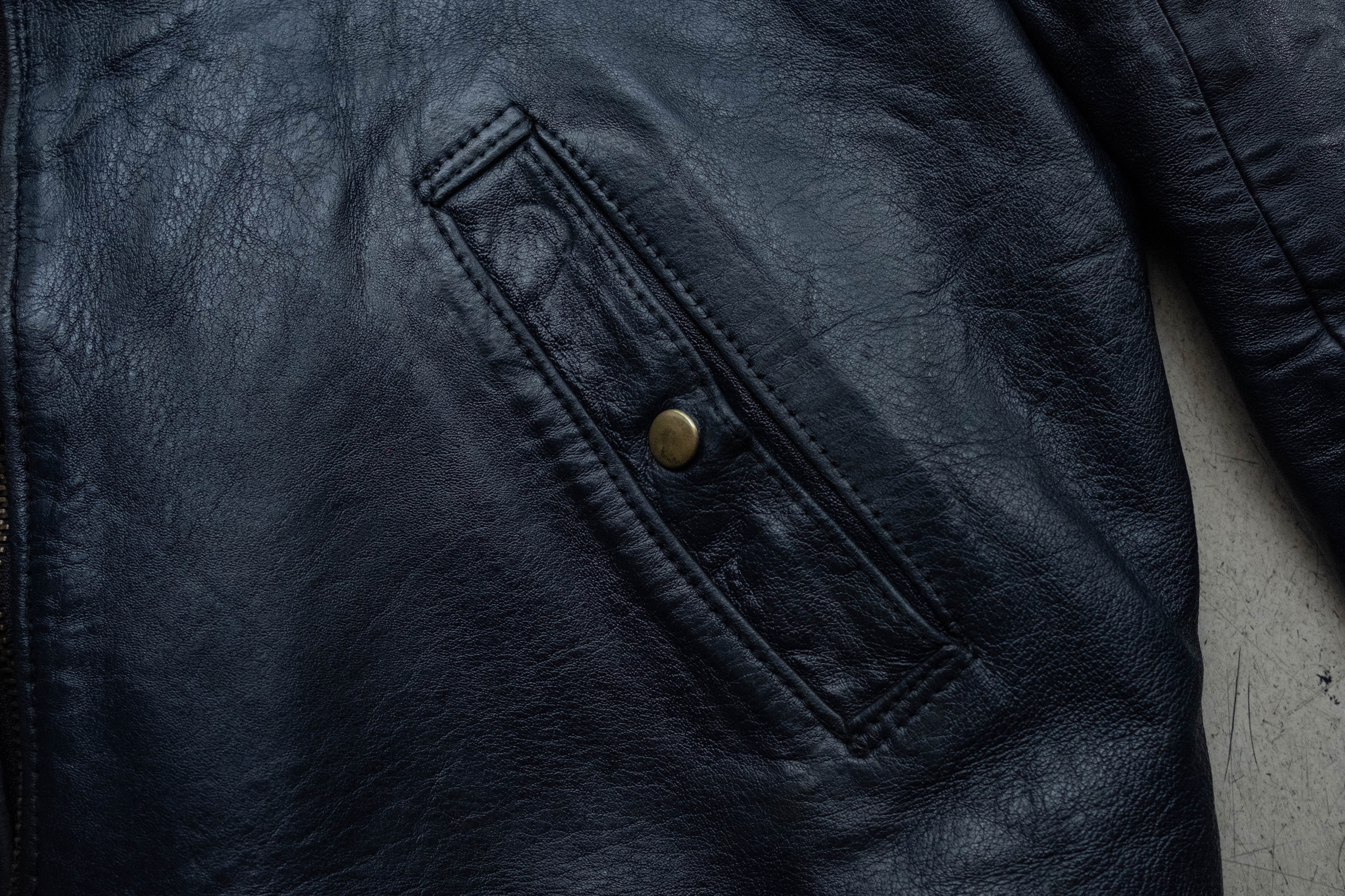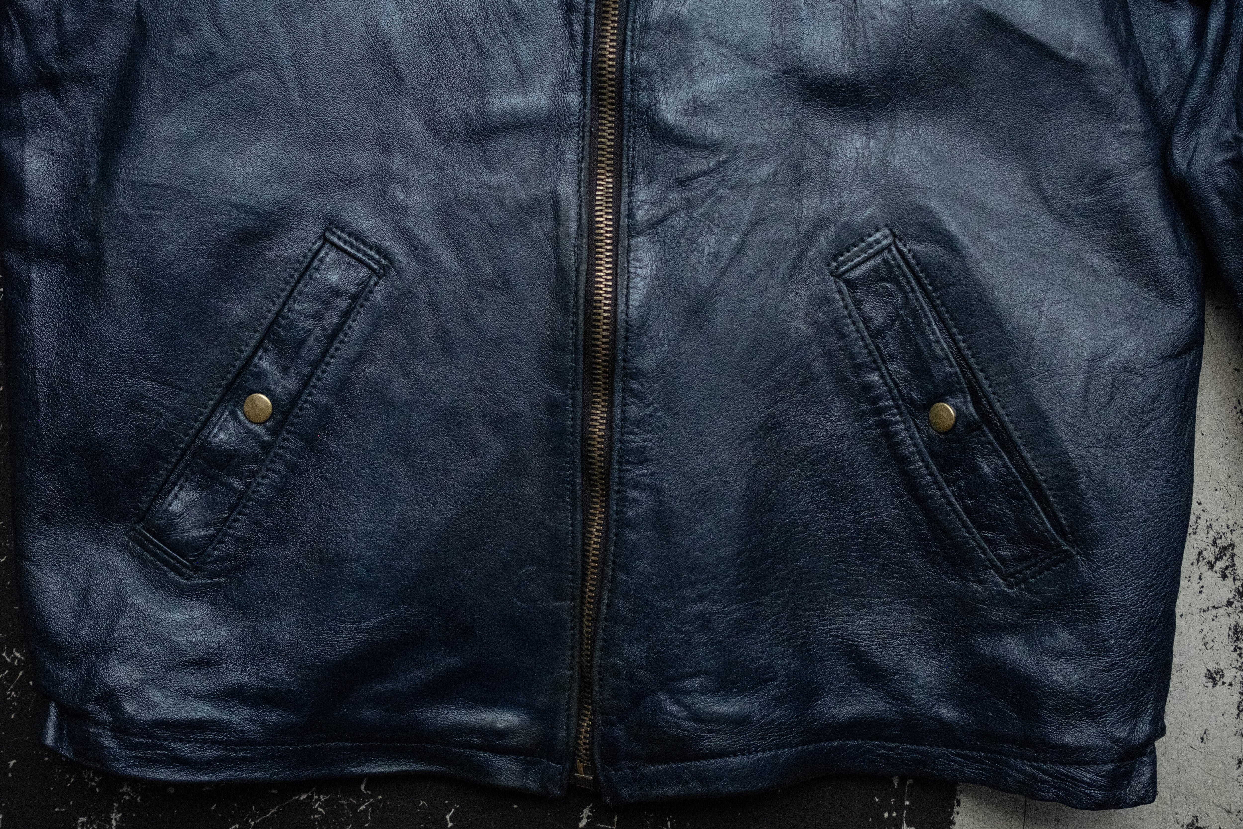 生地は肉厚なネイビーレザー。