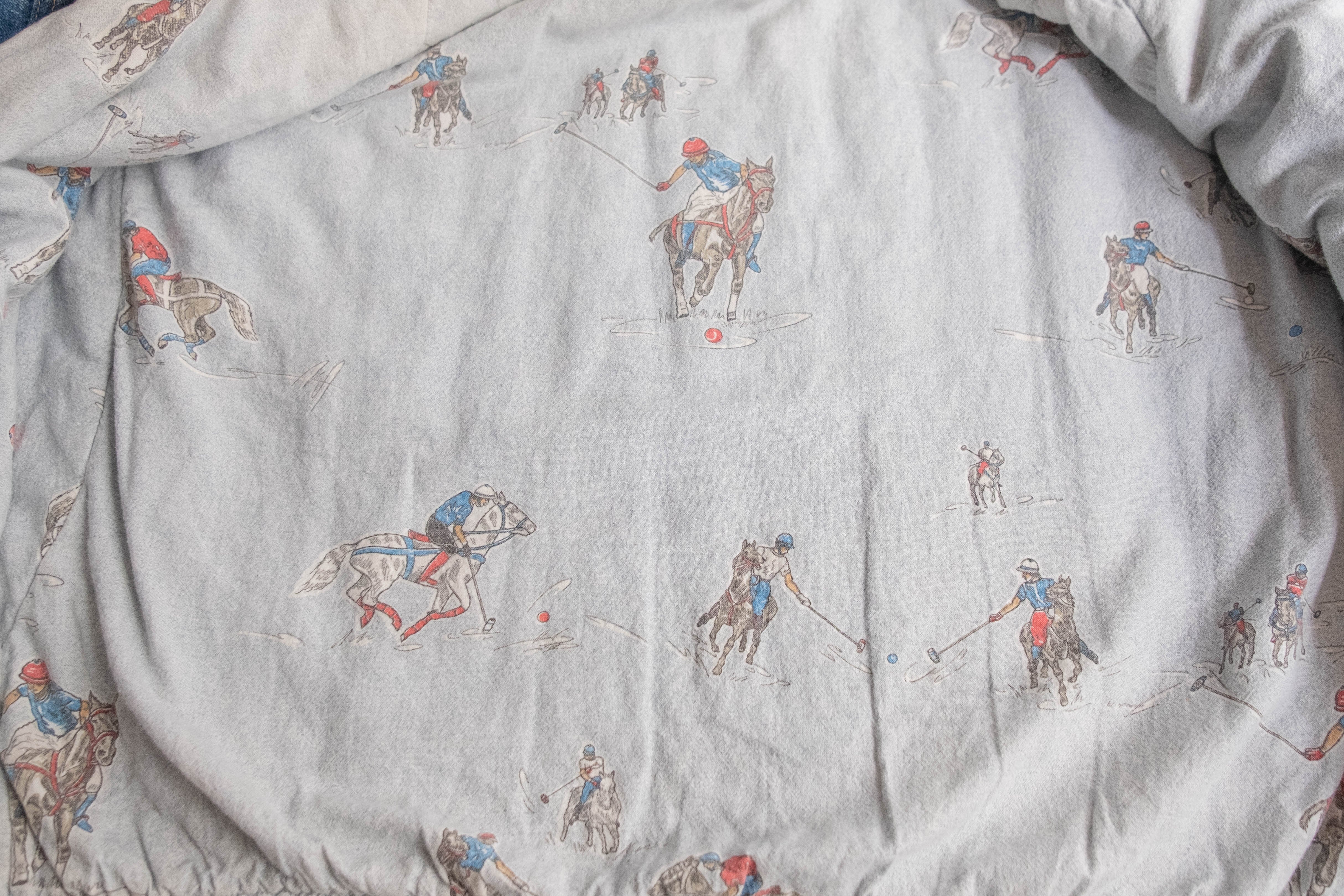 裏地には詳細不明ですが、馬に乗ってスポーツをしているようなプリントが施されています。