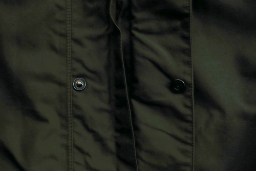 高めにとられた襟の中にはフードが収納されており、機能性も抜群です。
