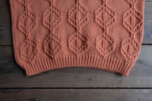 前面のみ鎖のような織柄が入っており、裏面はシンプルな編みになっています。