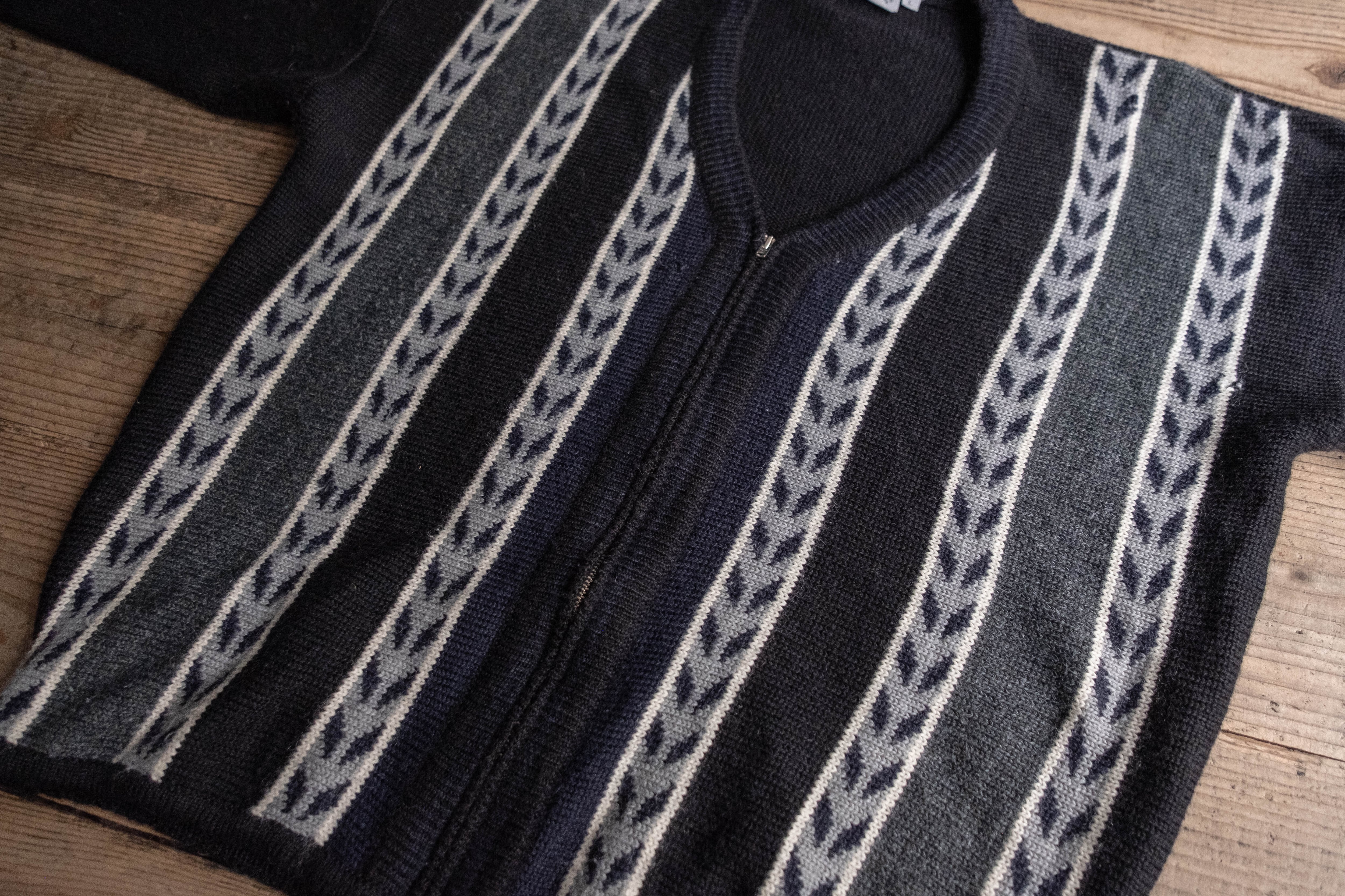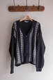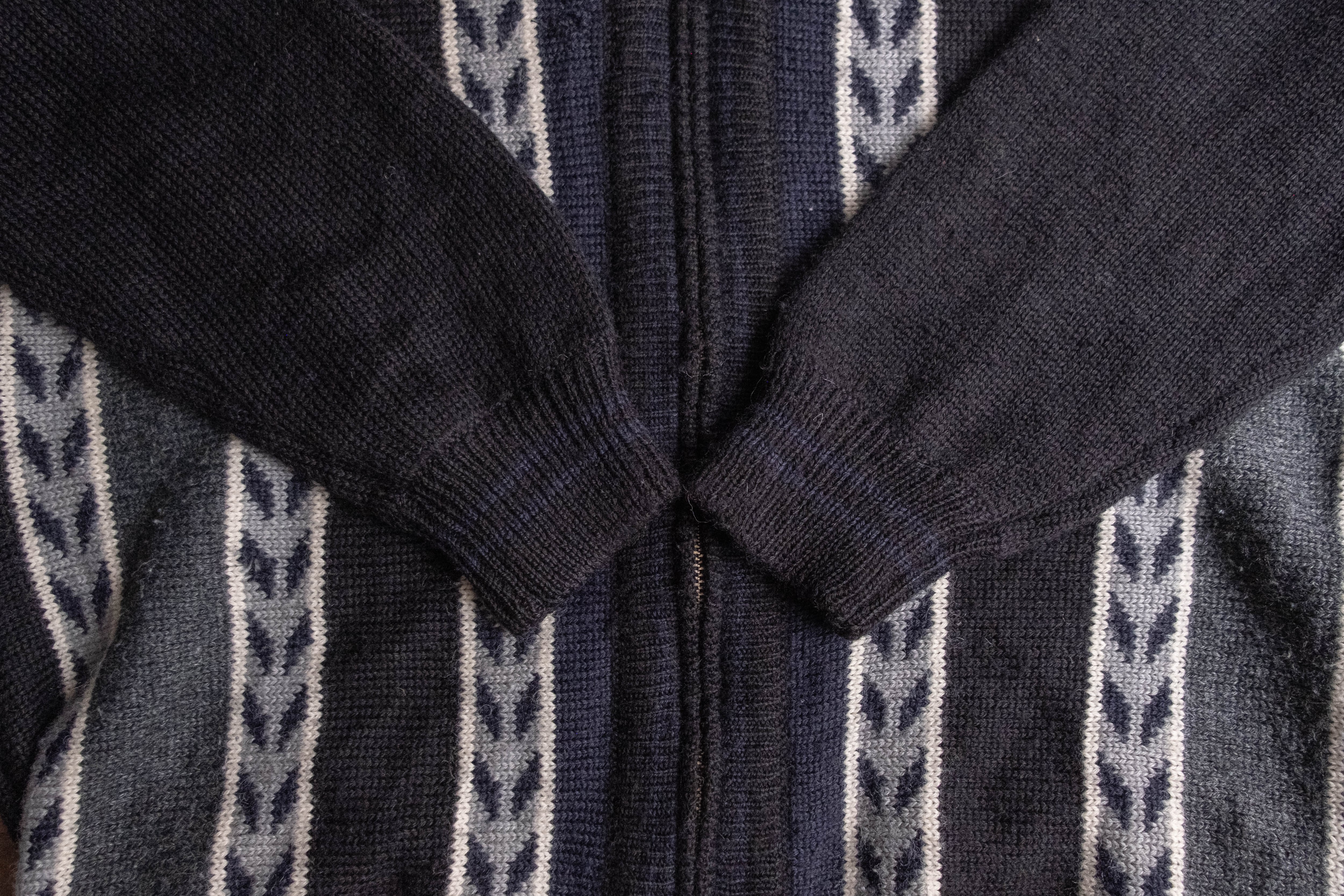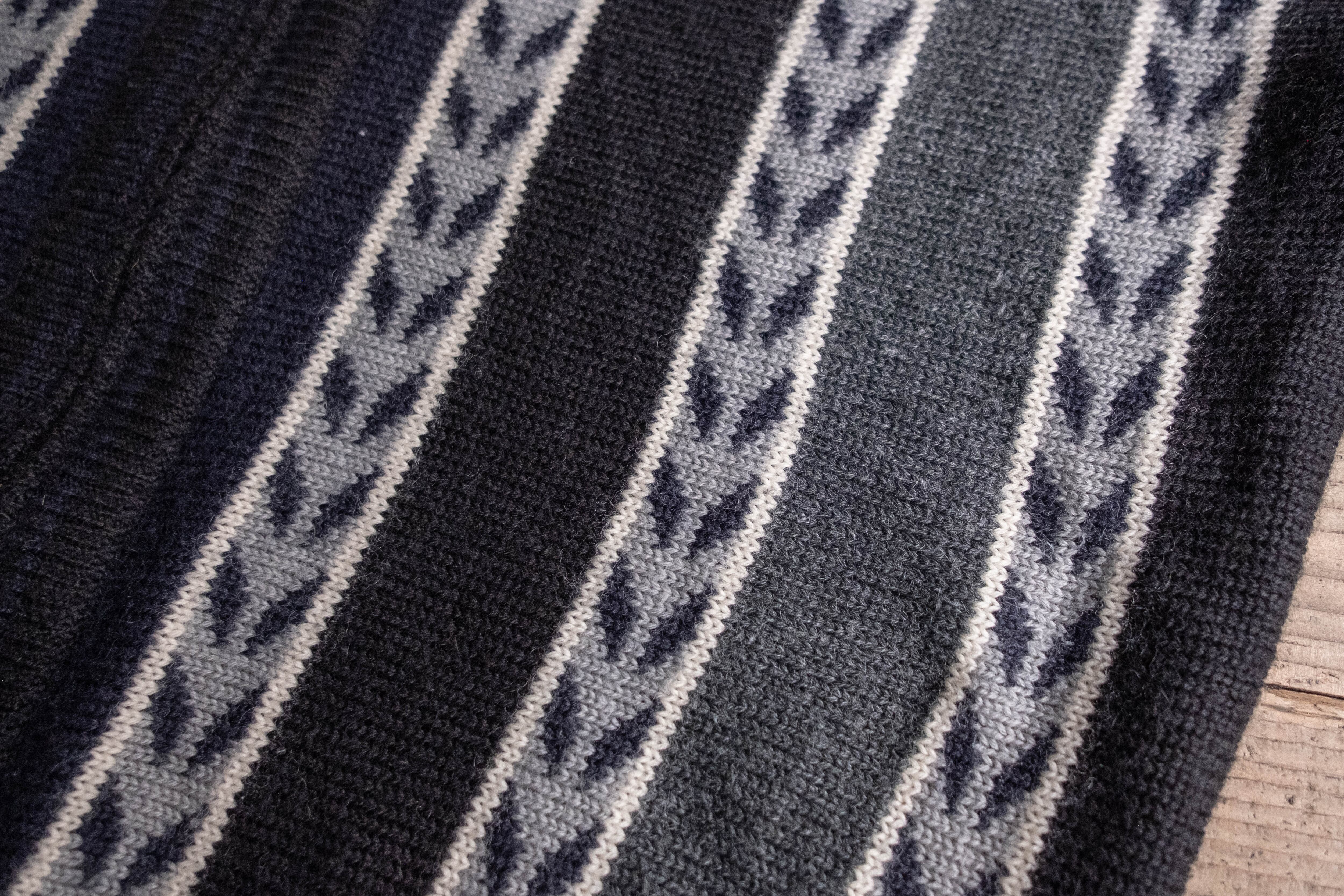 ブラックをベースに、ネイビーやダークグレー、ライトブルーなどといった糸が使われています。