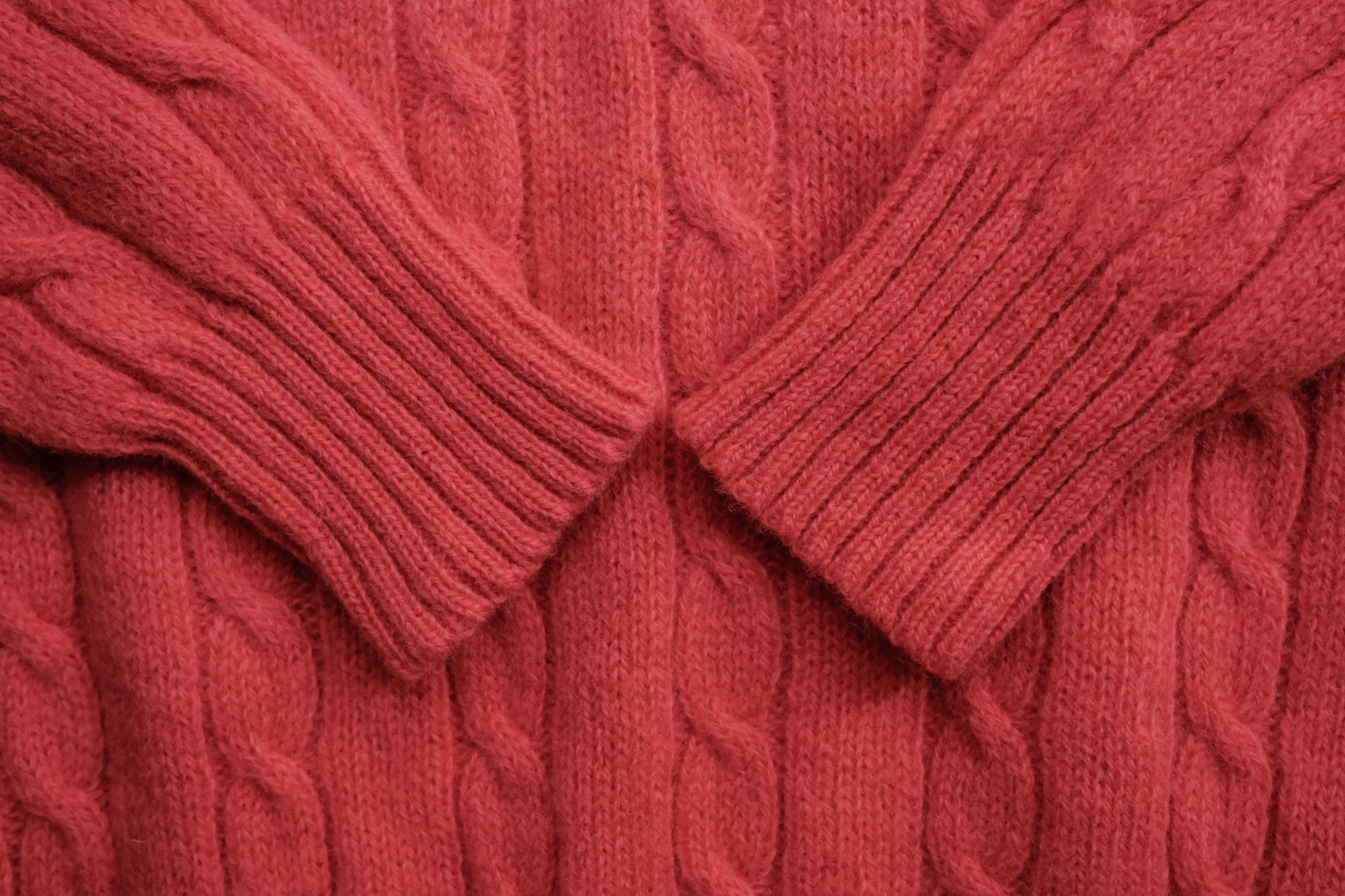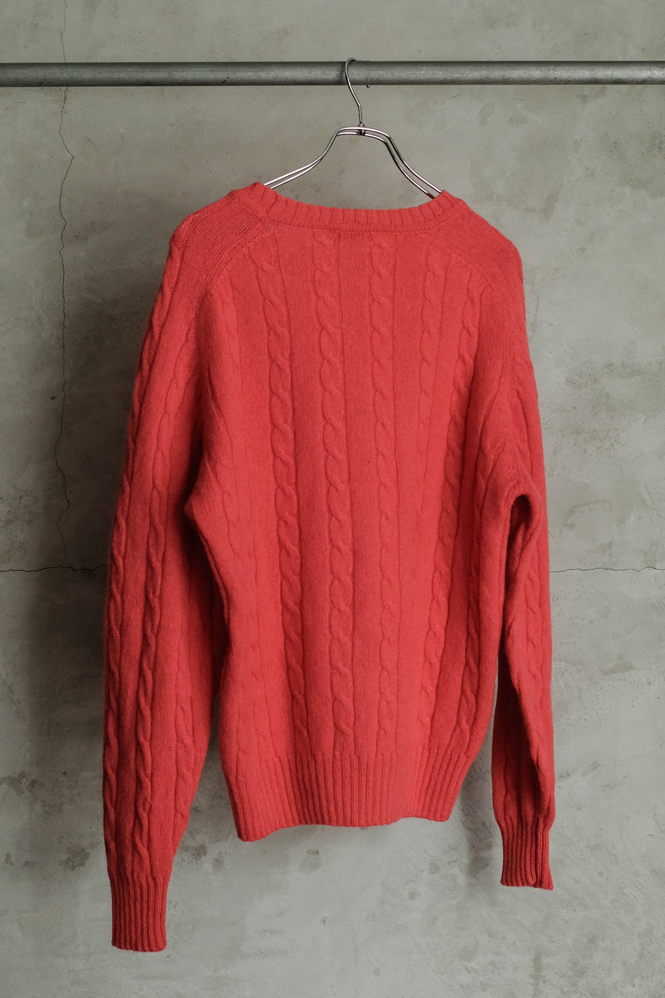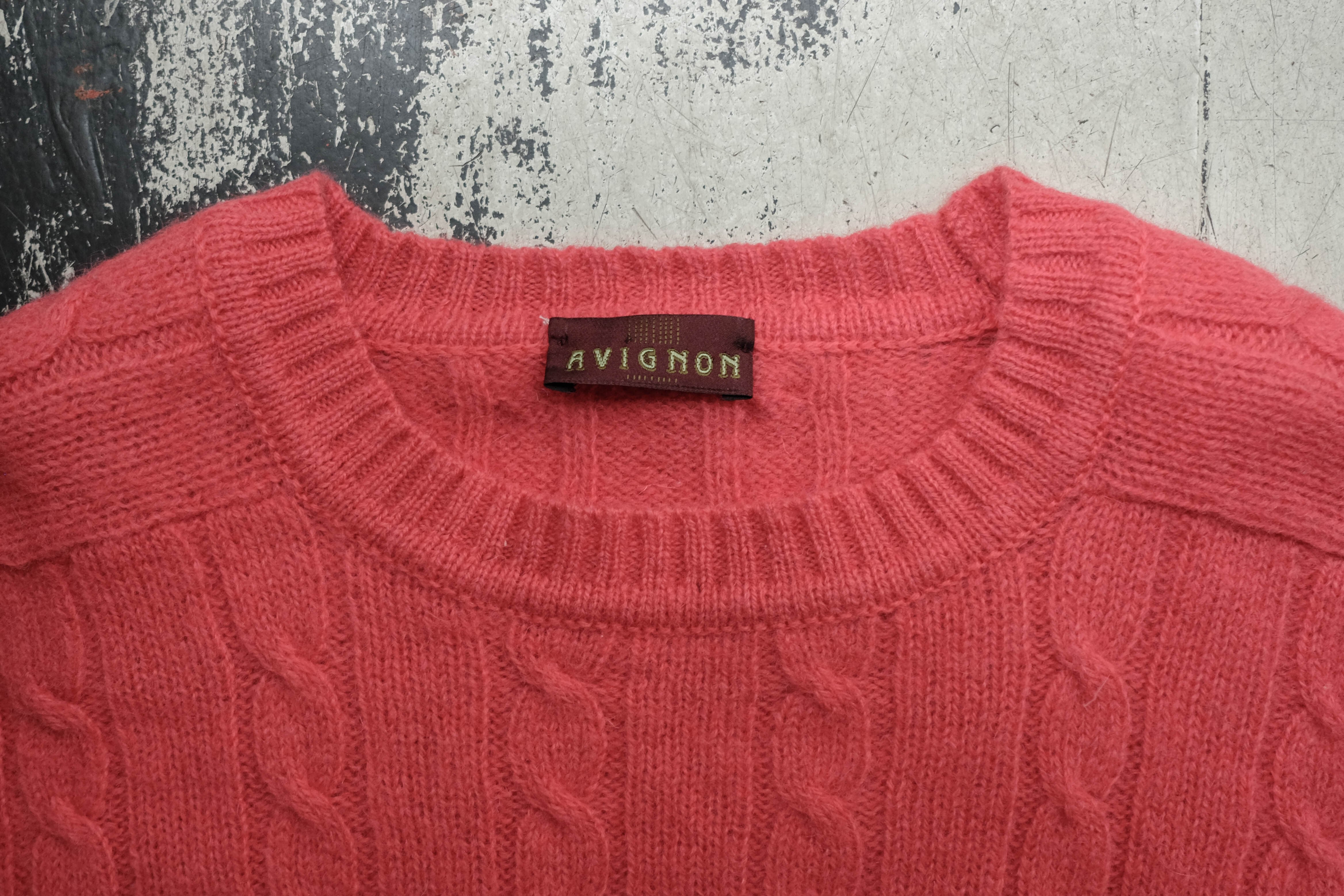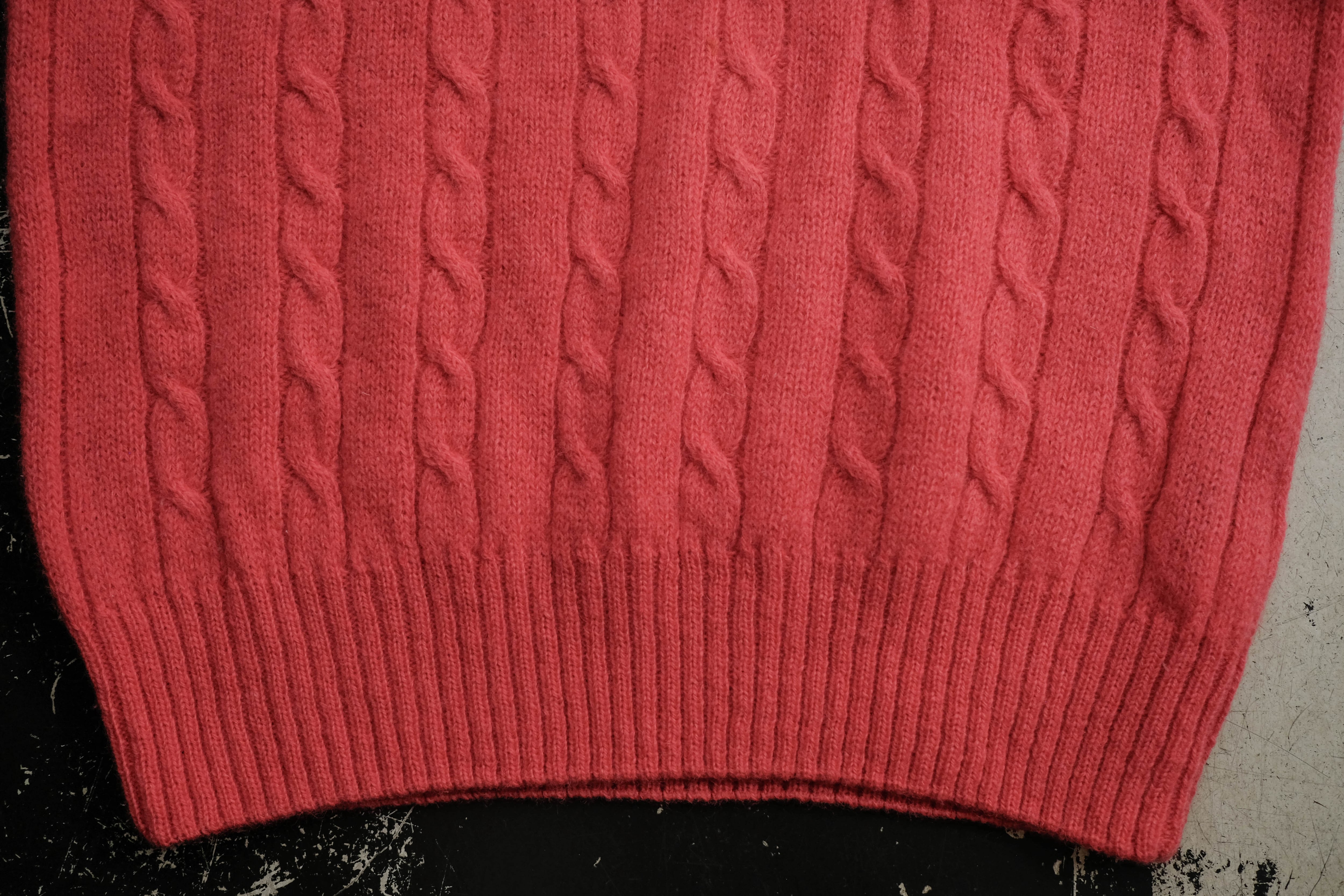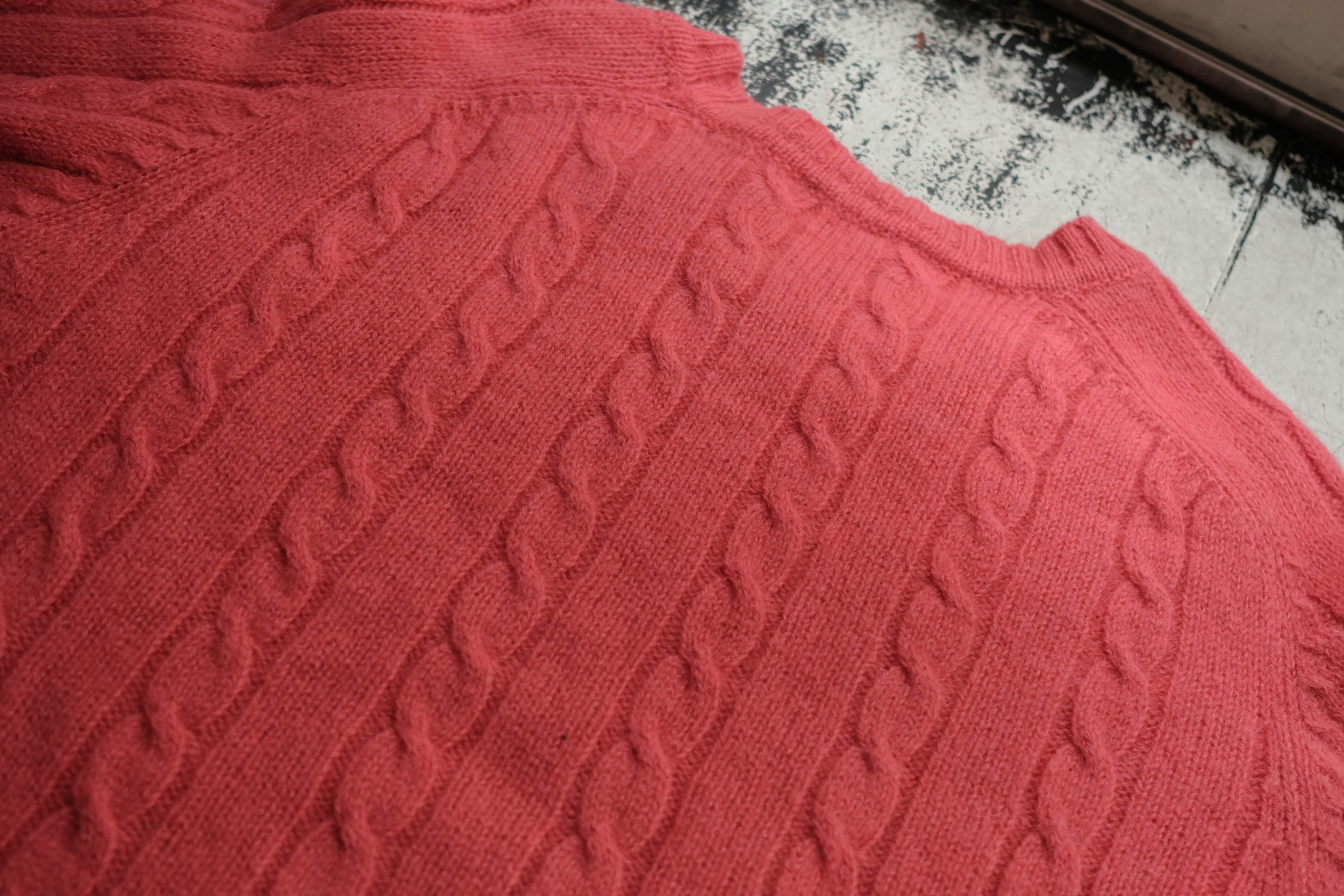 多色の糸が使われがちな古着のニットですが、こちらはピンクのような赤のような、絶妙なカラーの糸一色で編まれています。