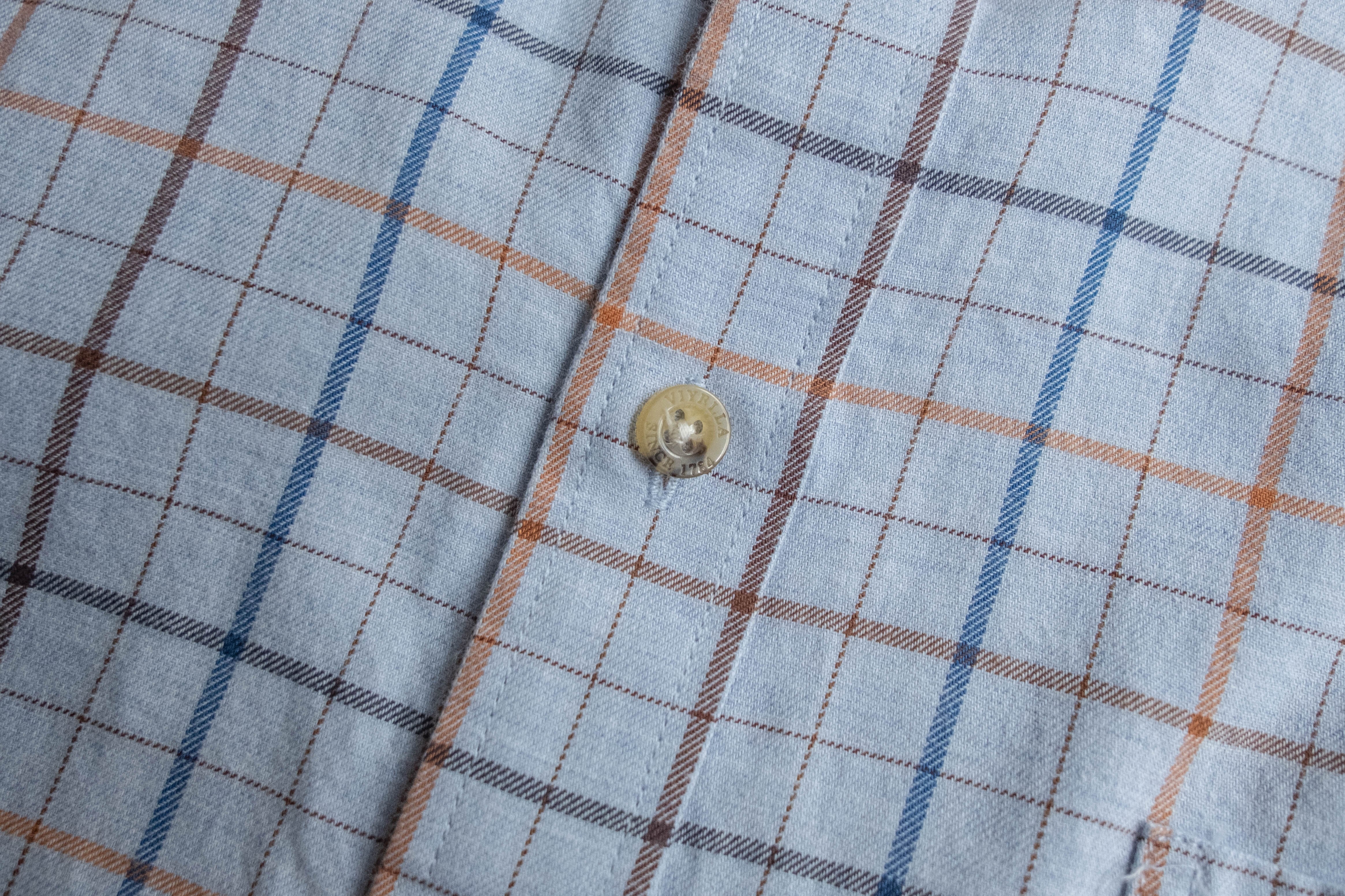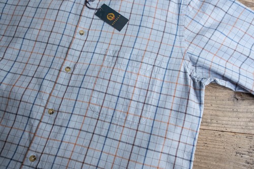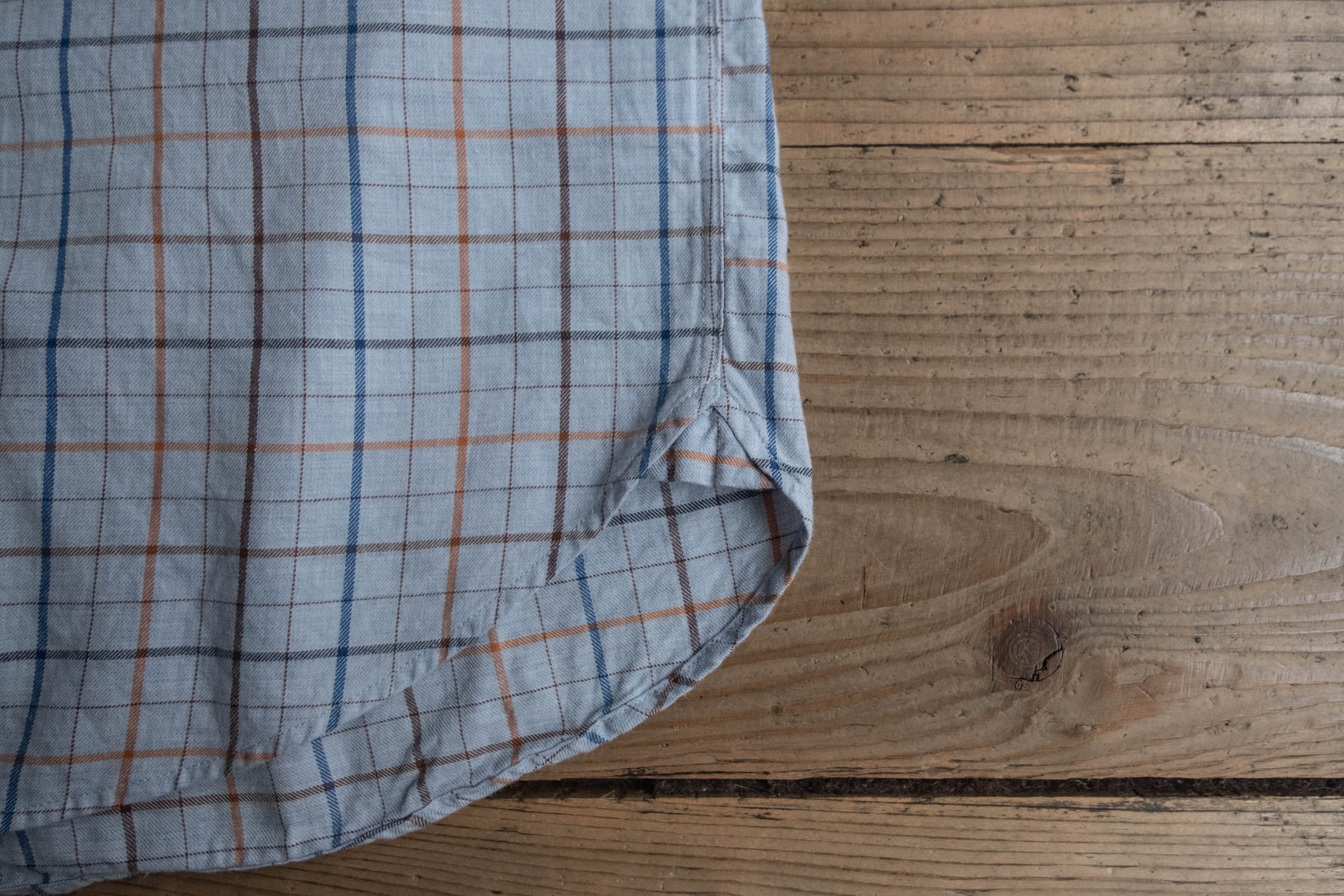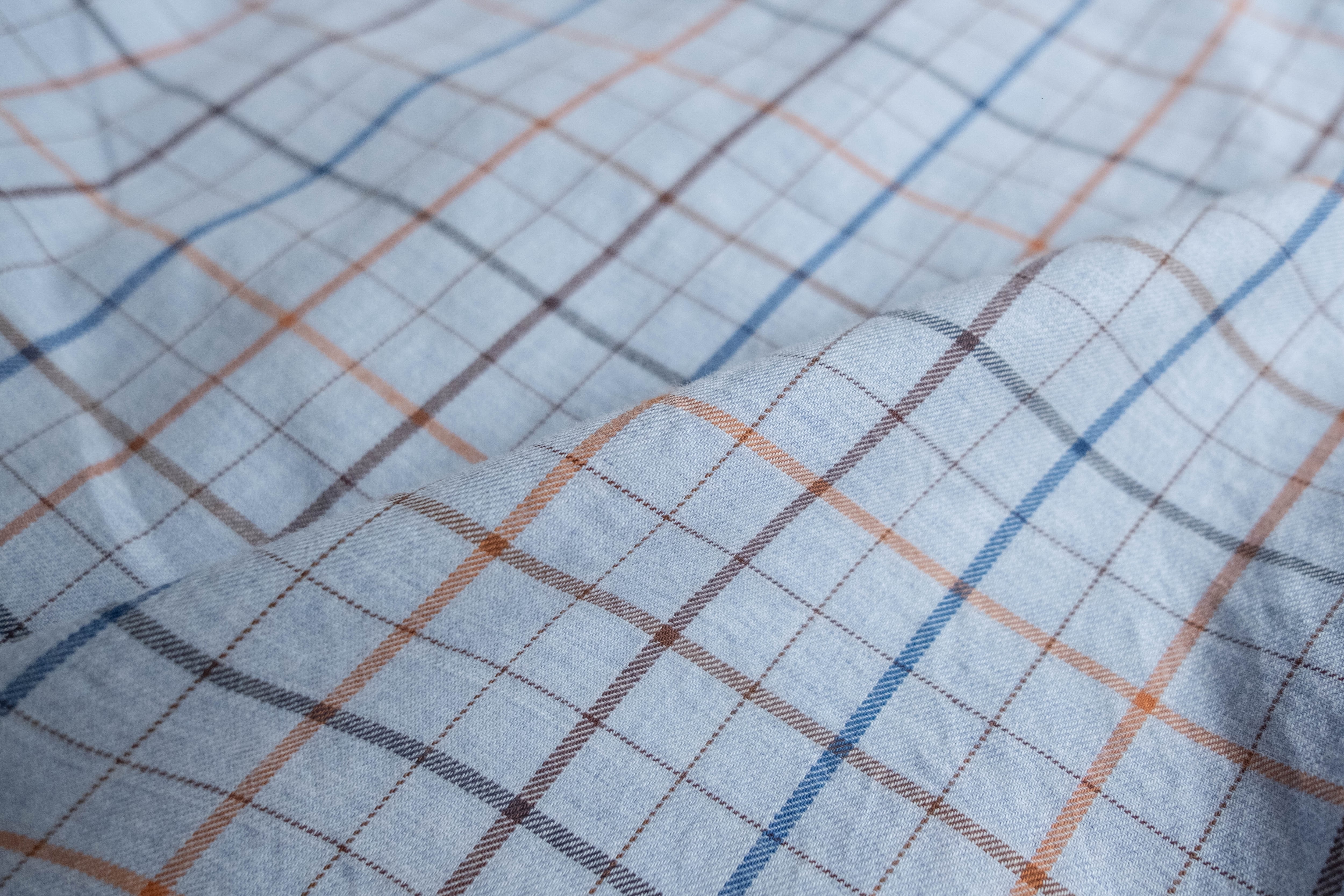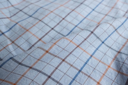 カラーはブルーベースにオレンジ、ブラウンのチェック柄が入ります。