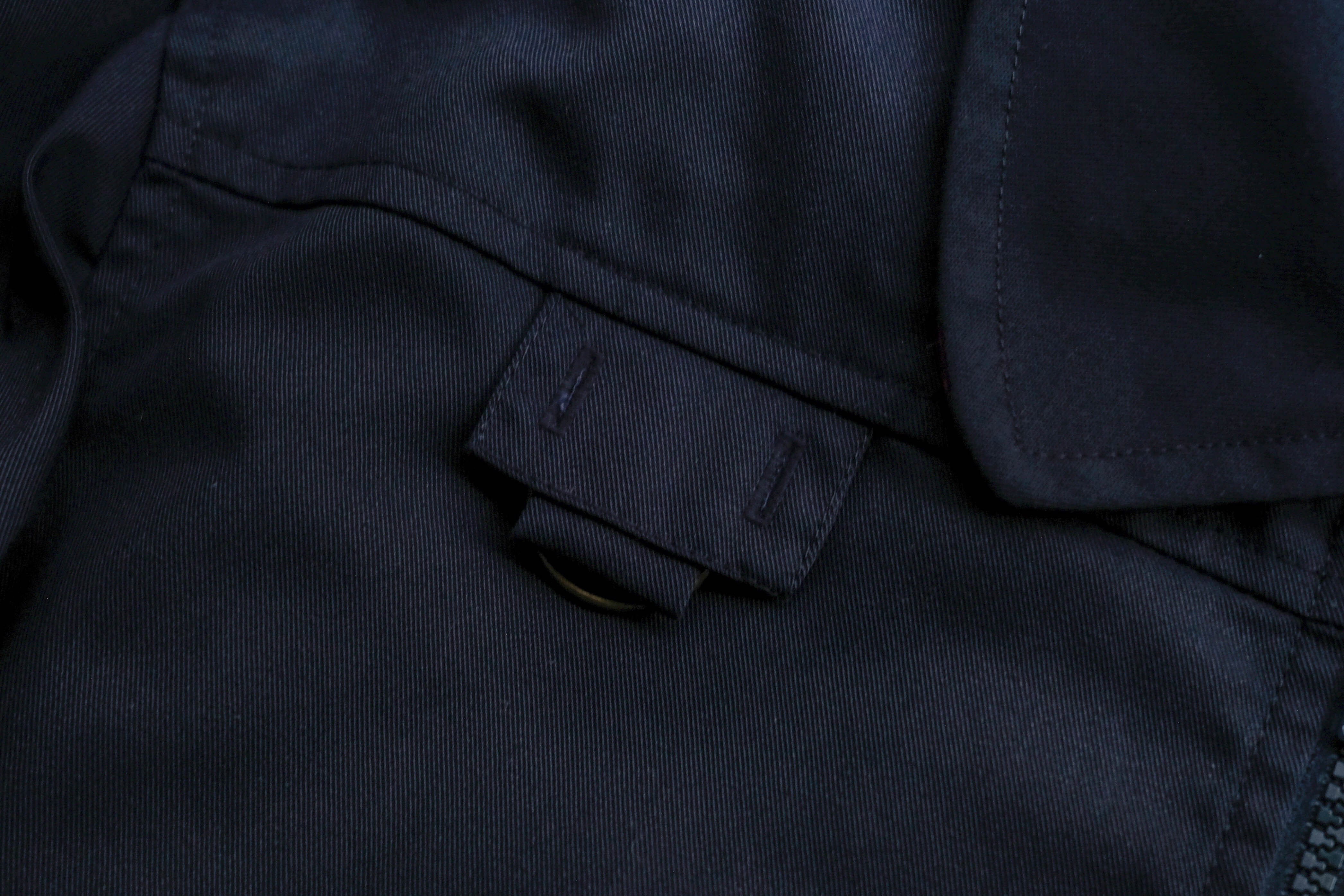 背中にはアクションプリーツが入り、肩周りの窮屈さは緩和されています。