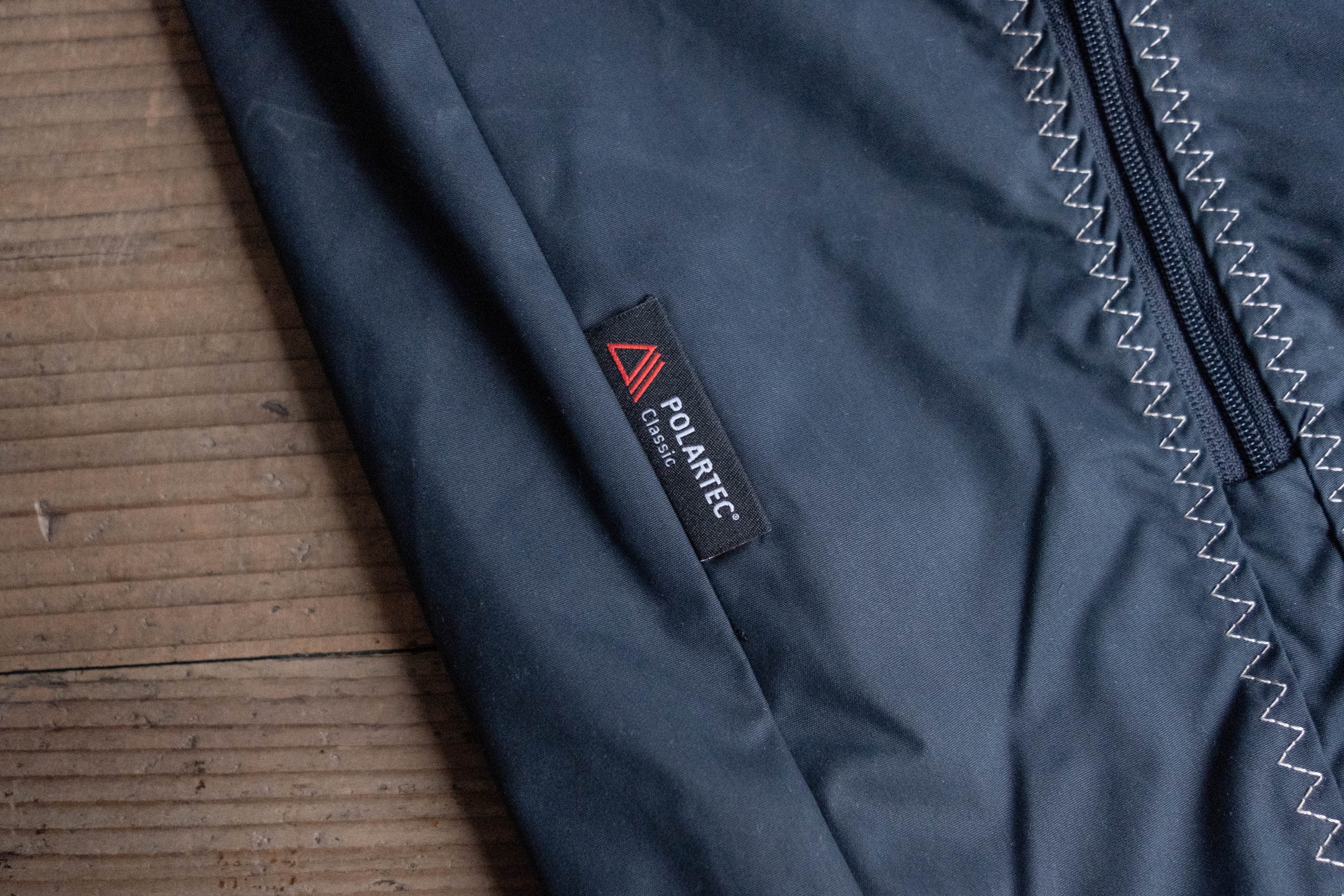 裏地にはポーラテック社が開発したリサイクル素材のフリース生地が貼られており、防寒性もバッチリです。