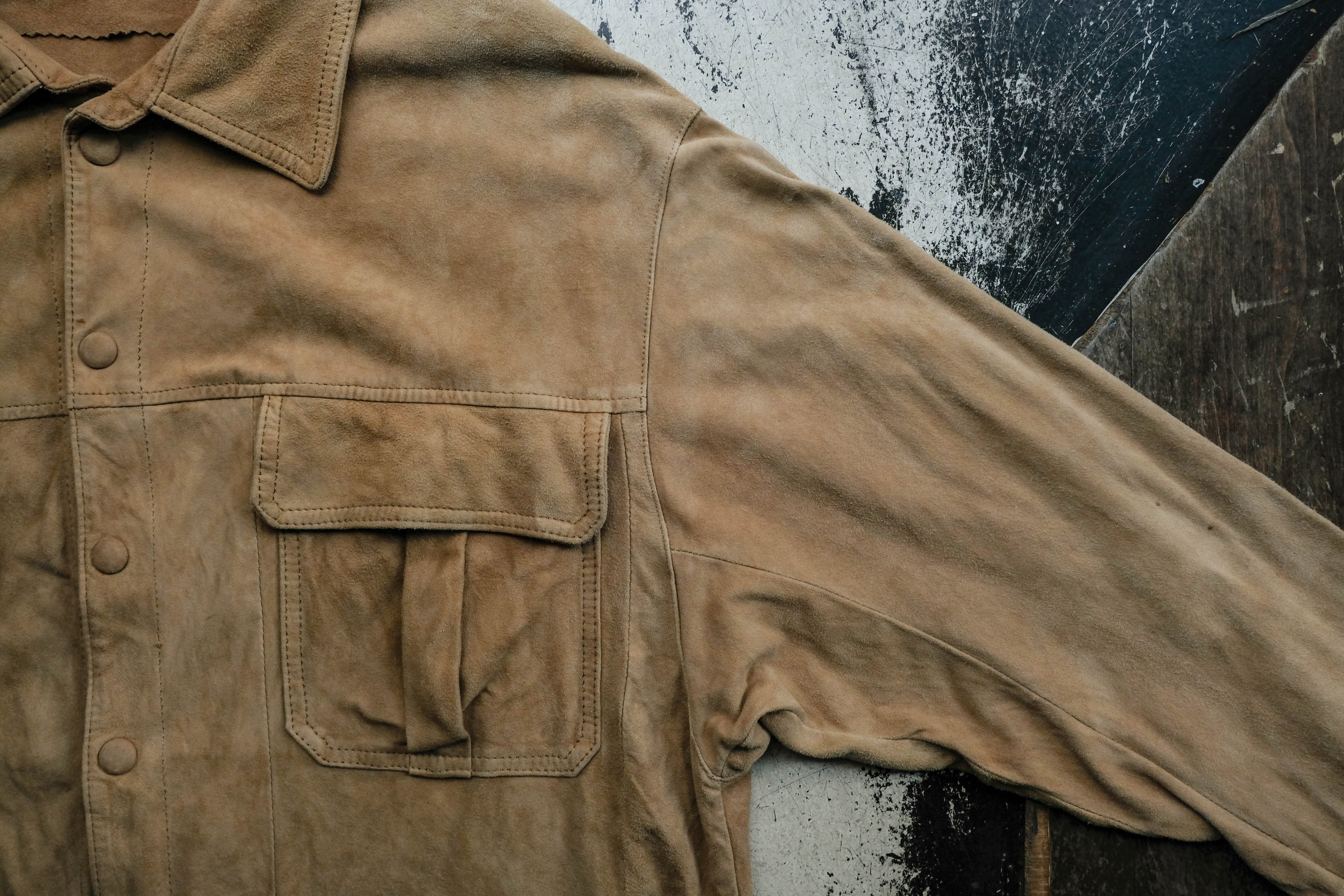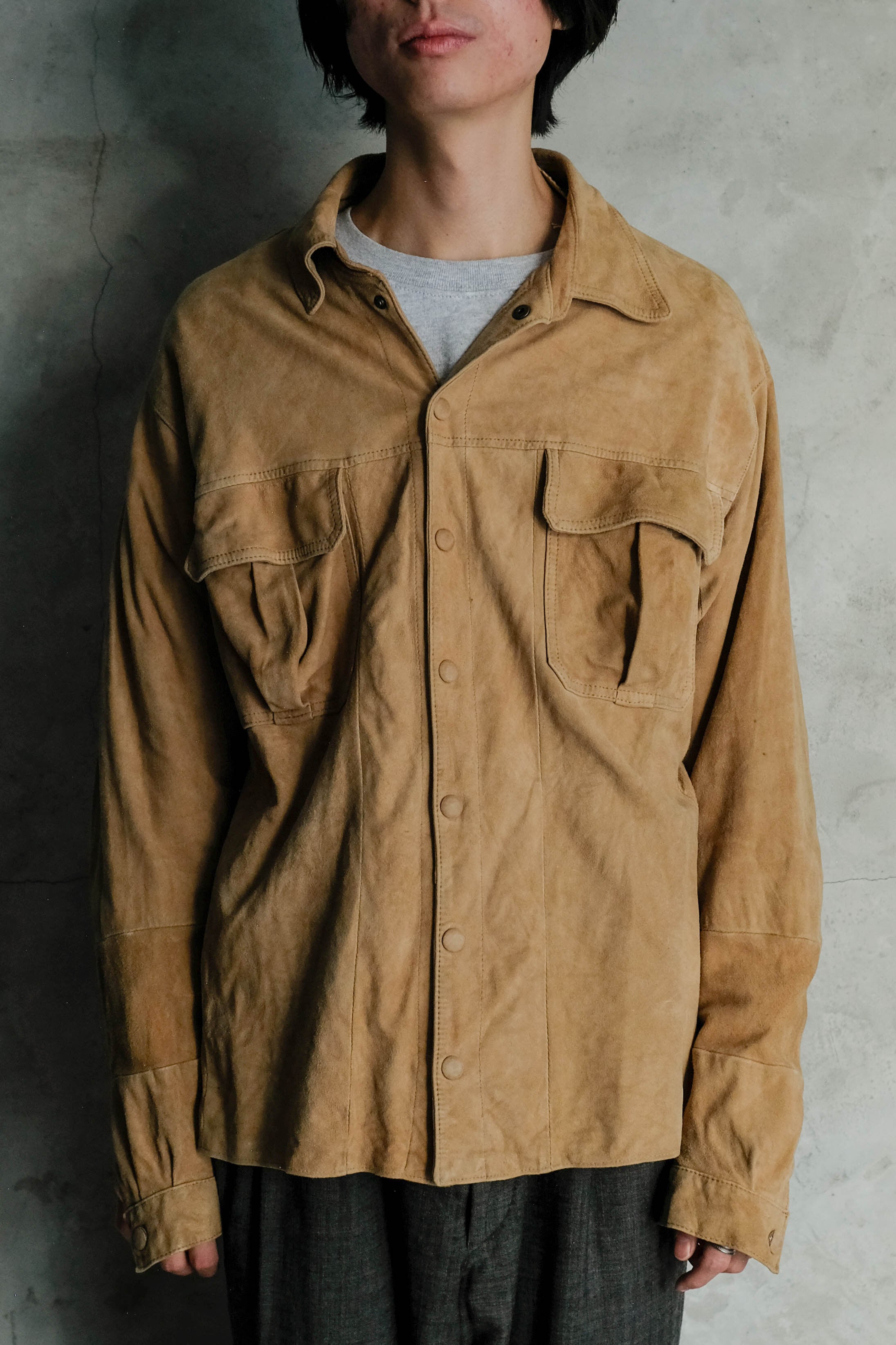 ①のスエードシャツよりも柔らかく、着用した瞬間に体に馴染むしなやかさです。