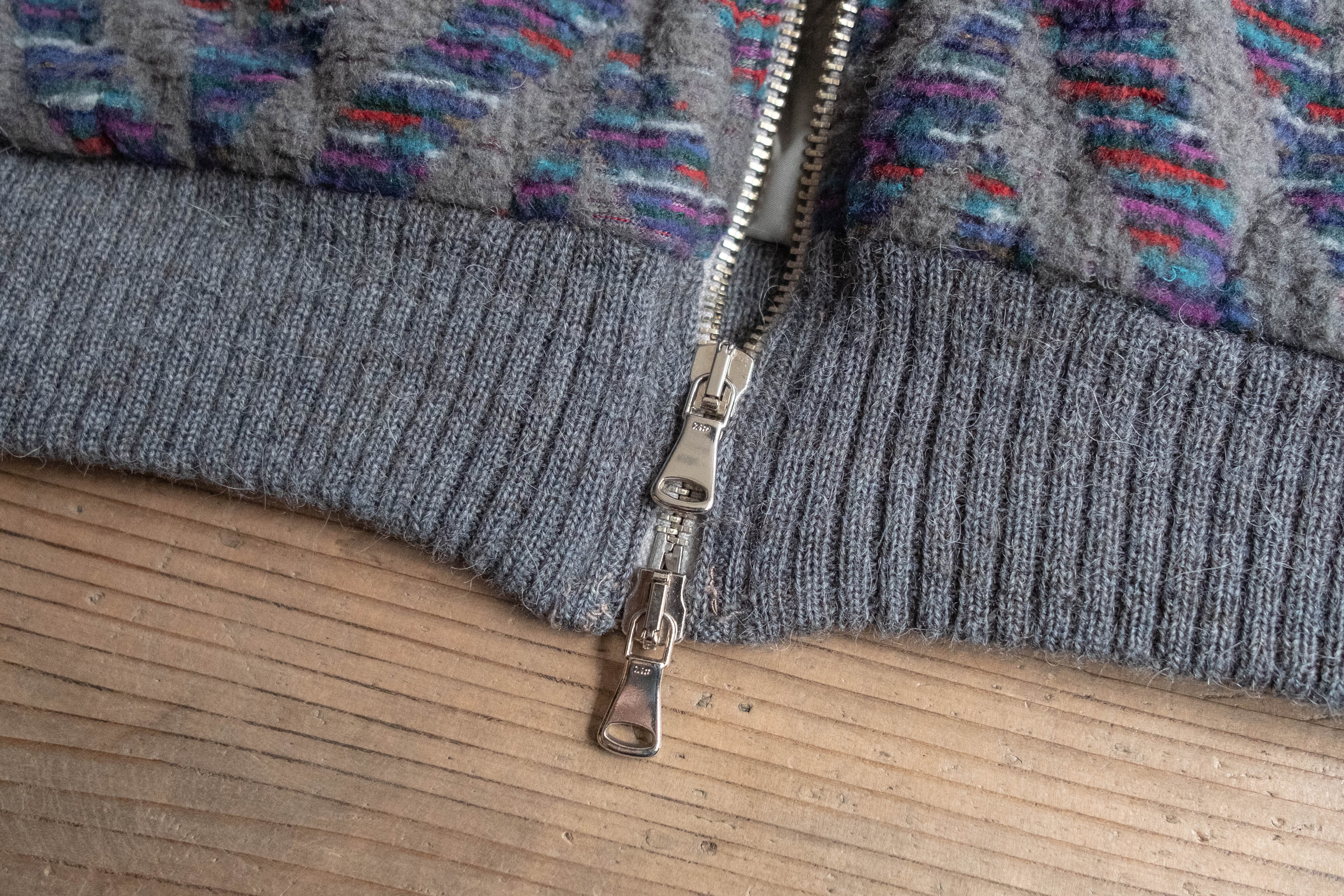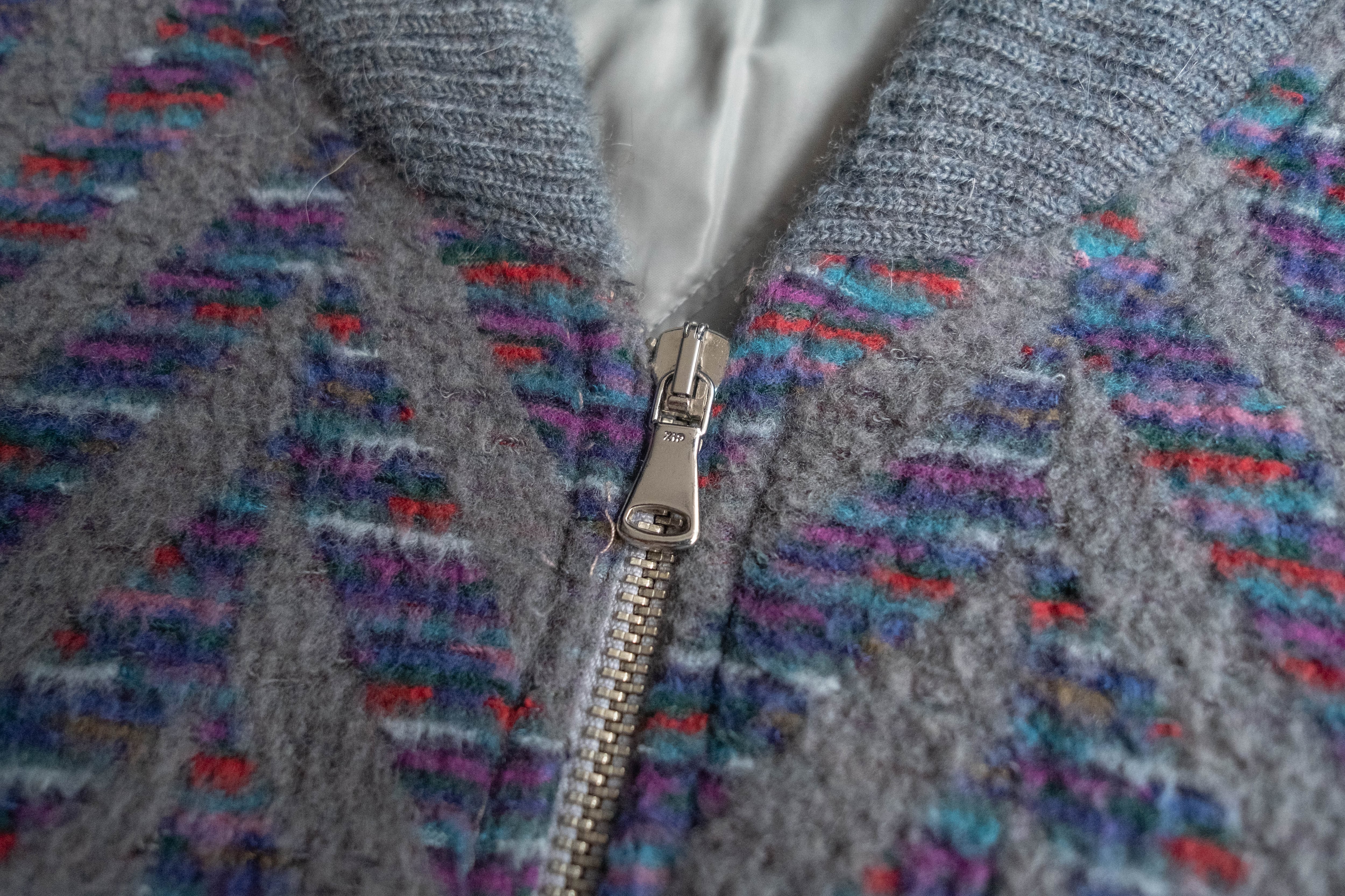 ボタンでの開閉のものが多い印象ですが、こちらはジップアップの仕様。