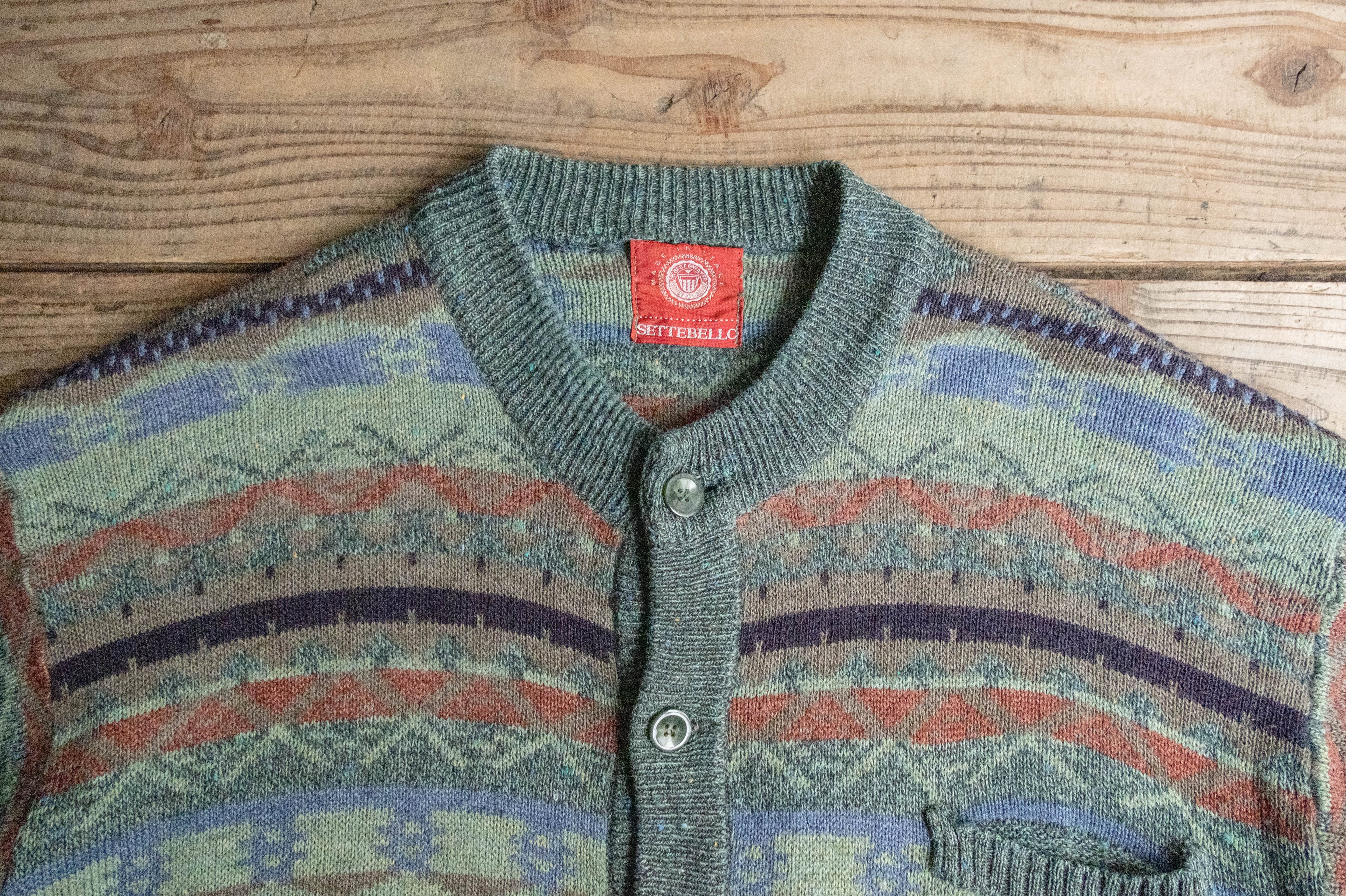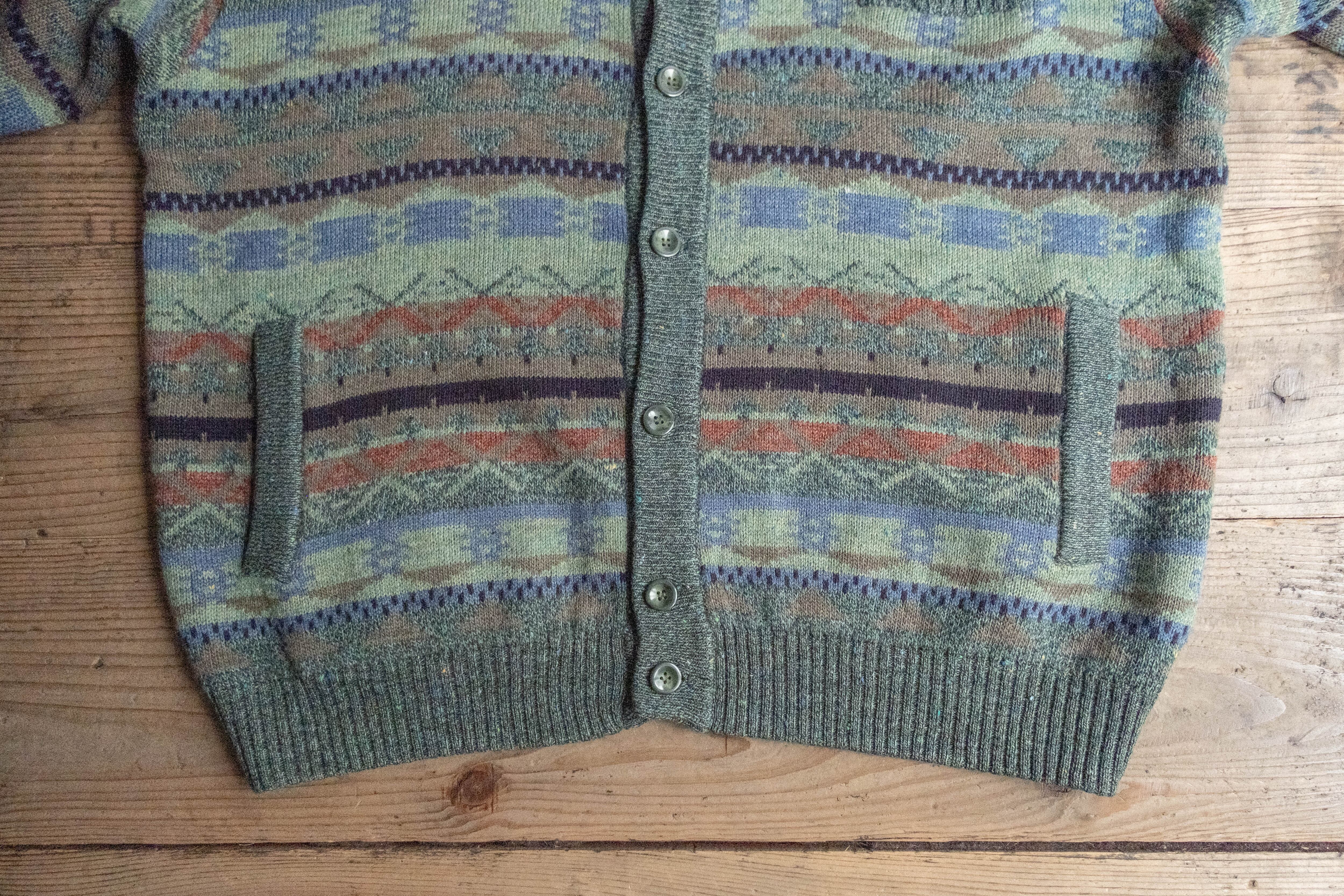 1980〜90年代にヨーロッパでジェントルマンの実用服として一般的だったニットカーディガンジャケット。様々なブランドがこの形で作っていました。
